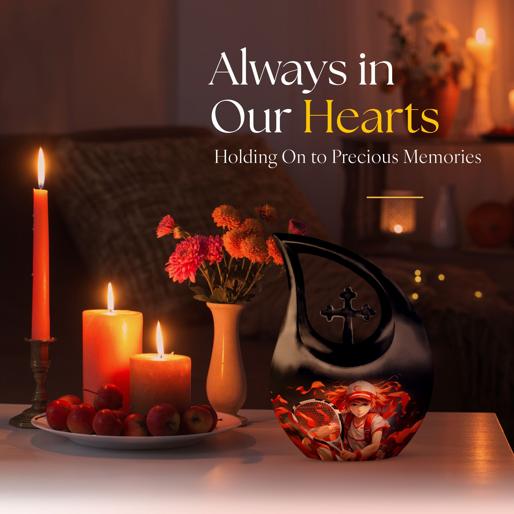 This Anime Style Memorial Urn for Ashes offers a heartfelt and artistic way to honor a loved one who cherished tennis, creativity, and individuality. Blending expressive anime-inspired artwork with a gentle tribute theme, it provides comfort and meaning for families seeking cremation urns for human ashes or ash urns for humans keepsake options. Its vibrant yet respectful design celebrates personality, passion, and cherished memories.
