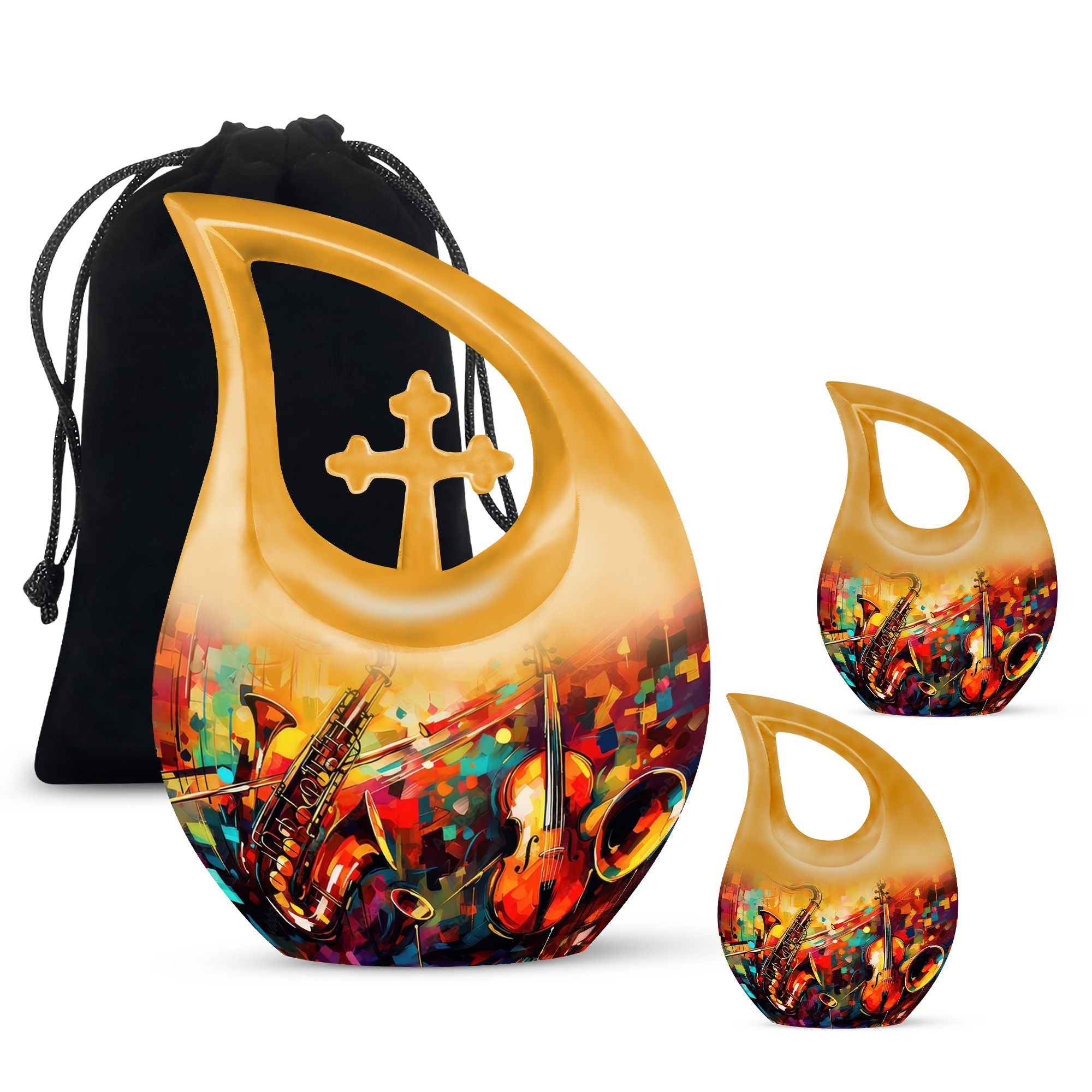 This urn may be complemented with a cremation keepsake or mini urn, allowing additional family members to hold a small portion of ashes in a meaningful, artistic tribute. Its musical design brings comfort, symbolizing harmony, emotion, and a life that continues to inspire.