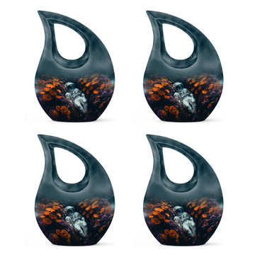 The Space Exploration Cremation Urn for Human Ashes honors the boundless spirit of those who dreamed beyond the horizon. This touching tribute reflects a soul’s eternal journey among the stars, making it a meaningful choice for families seeking an urn for ashes for women or a large urn for a beloved mom. Its celestial design and deep tones evoke the mystery and beauty of the night sky — a comforting reminder that love knows no boundaries.