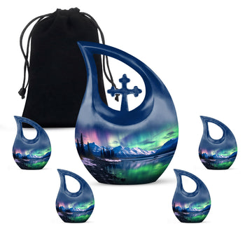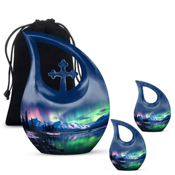 Crafted from premium aluminum, this cremation urn for ashes combines strength with breathtaking artistry. Its luminous teardrop silhouette features swirling tones of green, blue, and violet that mimic the dancing lights of the northern sky. Ideal for cremation urn human ashes or small cremation urn, it serves as both a heartfelt tribute and an elegant keepsake. Families may also select mini cremation urns for human ashes or small urn for cremation human ashes to share among loved ones.