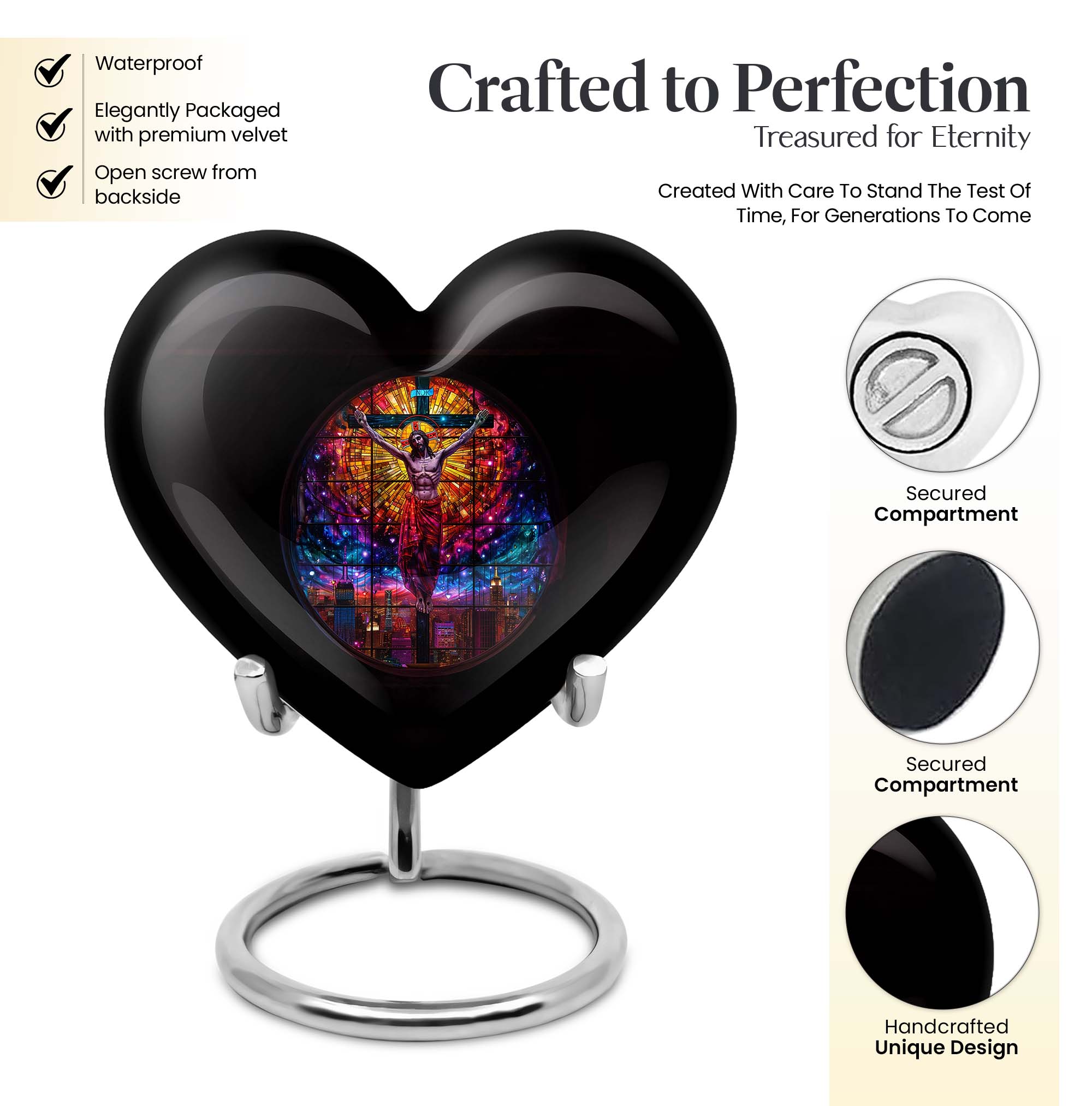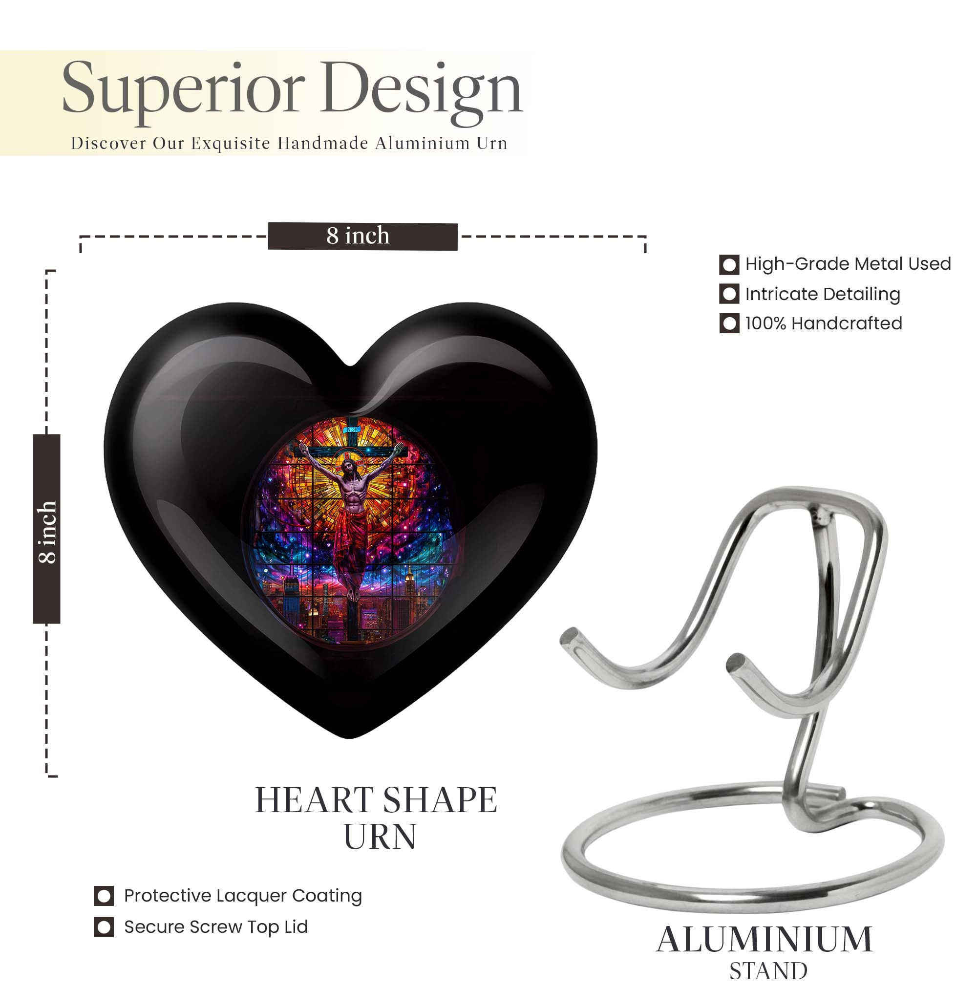 Handcrafted to encapsulate the essence of reverence, this 10-inch tall Heart Urn, a beautifully designed keepsake crosses the line between a mere urn to a revered piece of memorial artwork. Meticulously constructed from robust aluminium, this memorial urn for male adults manages to merge durability and elegance together. Its unique Gramophone theme makes a fitting tribute for a life lived with passion, and its weighty feel at 3.3 pounds only amplifies its significance. Perfectly suitable as a Companion Urn for Two Adults, it can easily hold up to 200 cubic inches of ashes — a sizeable capacity that does not compromise its visual presence. The urn comes with a velvet pouch, ensuring you can securely contain your loved one's ashes. Personalize this large metal urn for ashes with engraved names, making it a one-of-a-kind tribute. This piece is not merely a 'female urn' or a 'cross urn'; it’s a personal memory frozen in time, a testament to holding onto what was so dear.