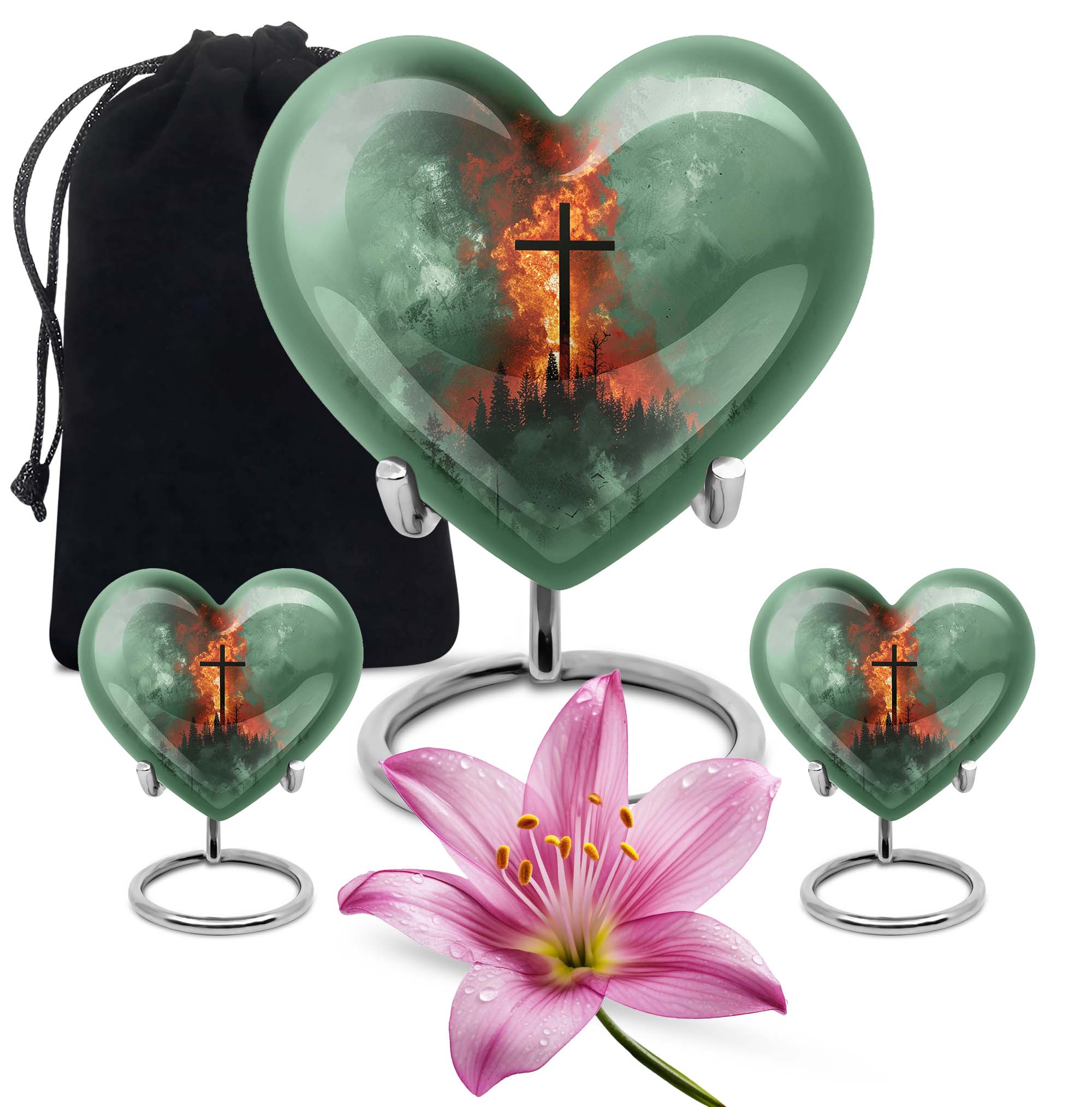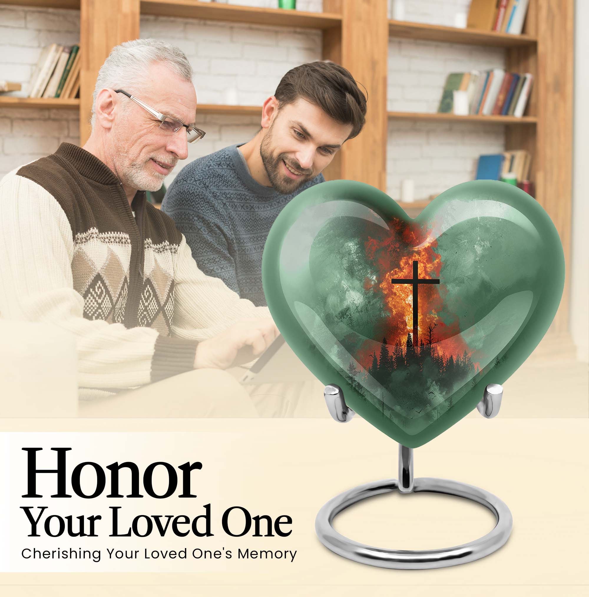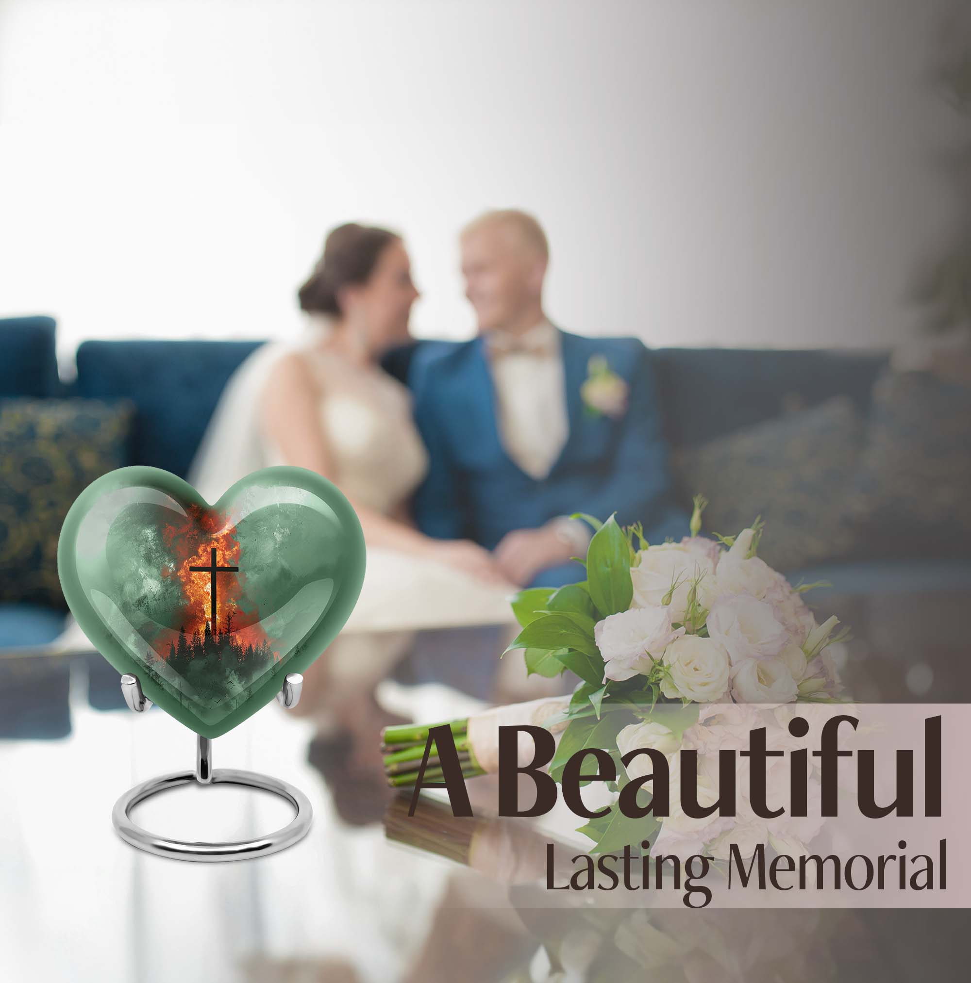 Discover the perfect final resting place for your loved ones with our unique Heart Urn. With its strong and sturdy Aluminum structure, this cremation urn radiates peace, serenity, and love. Its comprehensive weight of 3.3 pounds and substantial dimensions of 10 inches in height assure the urn's enduring durability and integrity. This large Aluminum urn possesses the capacity to accommodate 200 cubic inches of ashes and includes a velvet pouch for secure containment. Customize this 10 Inch cross urn with engraved names; create an everlasting tribute that echoes love and remembrance. This Heart Urn champions a warm-hearted Gramophone motif that evokes elegant sentimentality. Our product is a distinguished choice among urns for female adults or dual urns for adult males and females, making it a versatile metal burial urn for ground ceremonies. Capable of meeting your sensitive needs, this cremation urn ensures a treasured place in your heart and home as a beautiful memorial memento.