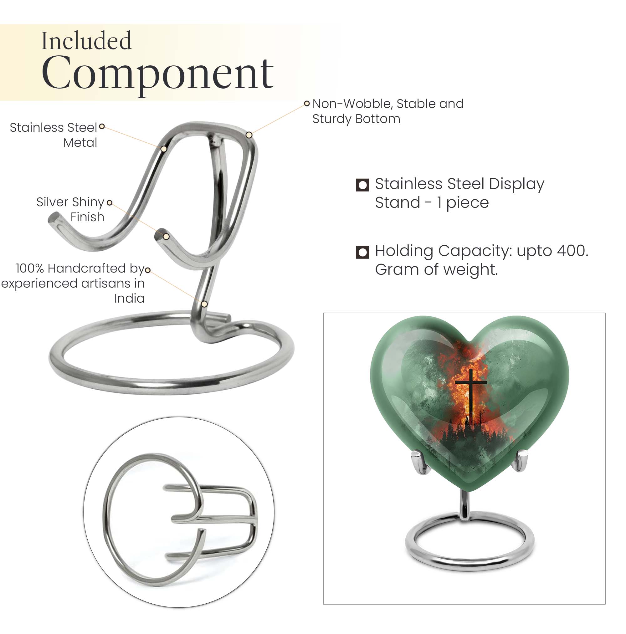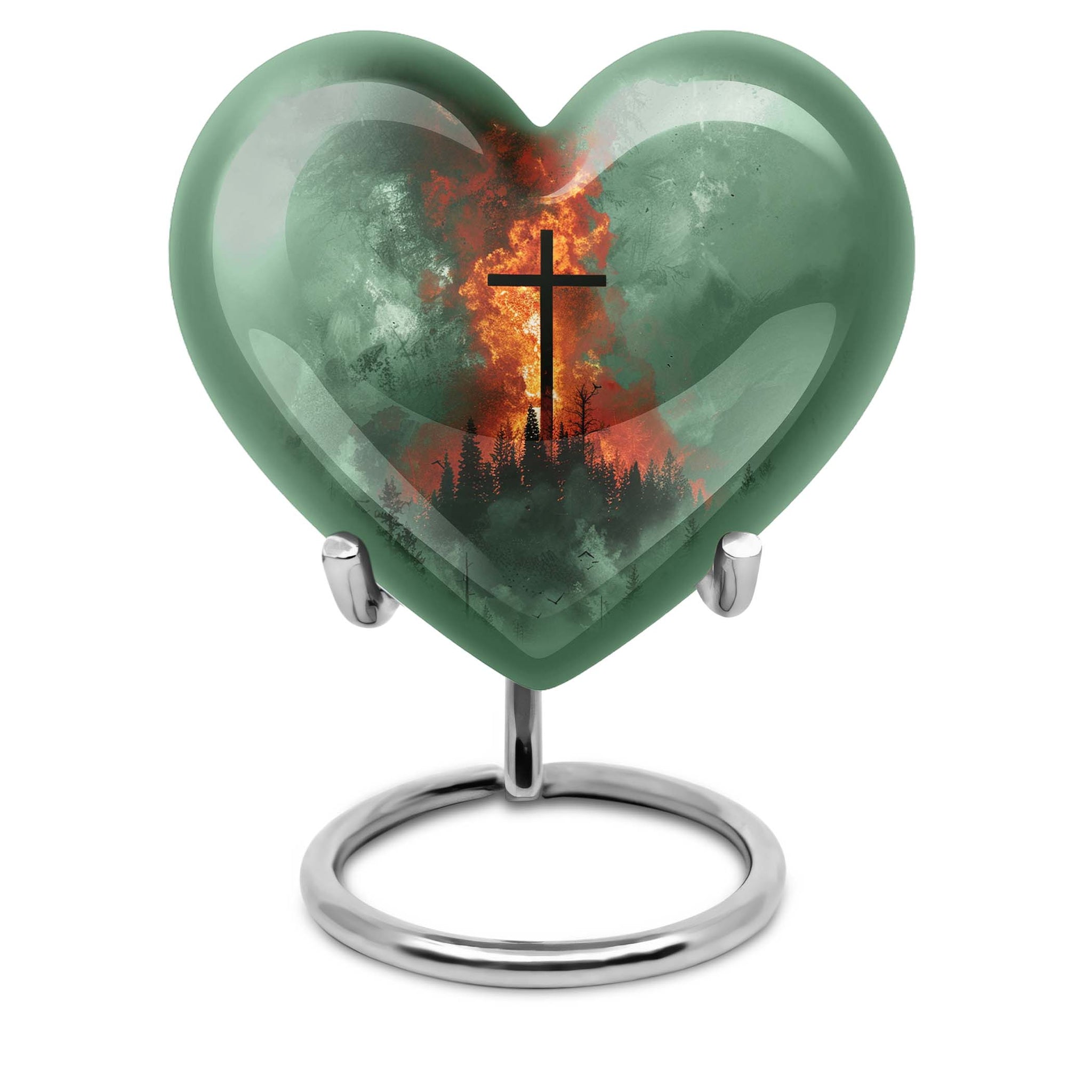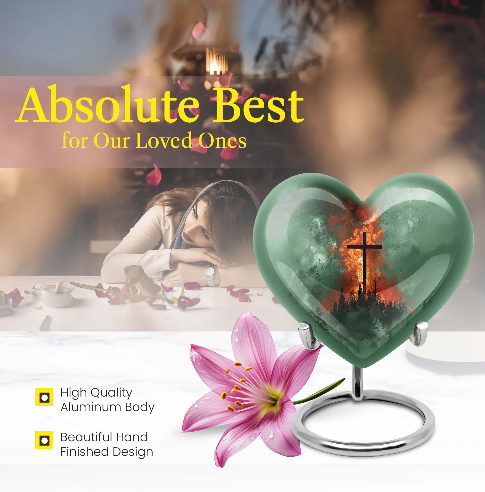 Discover the perfect final resting place for your loved ones with our unique Heart Urn. With its strong and sturdy Aluminum structure, this cremation urn radiates peace, serenity, and love. Its comprehensive weight of 3.3 pounds and substantial dimensions of 10 inches in height assure the urn's enduring durability and integrity. This large Aluminum urn possesses the capacity to accommodate 200 cubic inches of ashes and includes a velvet pouch for secure containment. Customize this 10 Inch cross urn with engraved names; create an everlasting tribute that echoes love and remembrance. This Heart Urn champions a warm-hearted Gramophone motif that evokes elegant sentimentality. Our product is a distinguished choice among urns for female adults or dual urns for adult males and females, making it a versatile metal burial urn for ground ceremonies. Capable of meeting your sensitive needs, this cremation urn ensures a treasured place in your heart and home as a beautiful memorial memento.