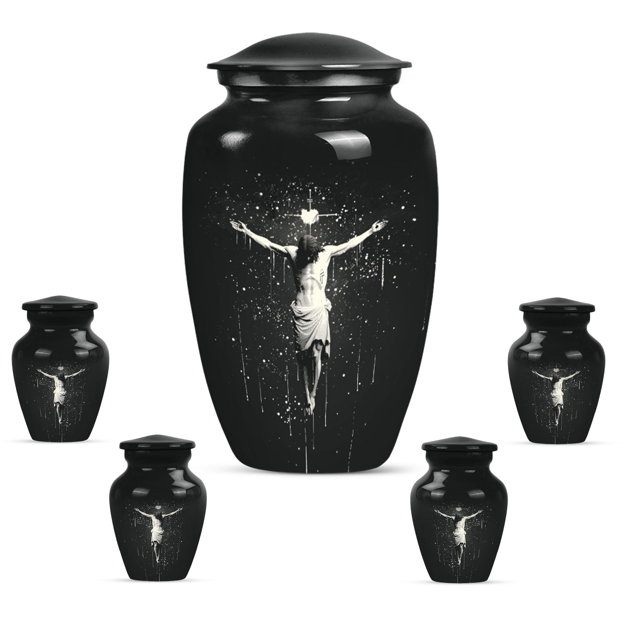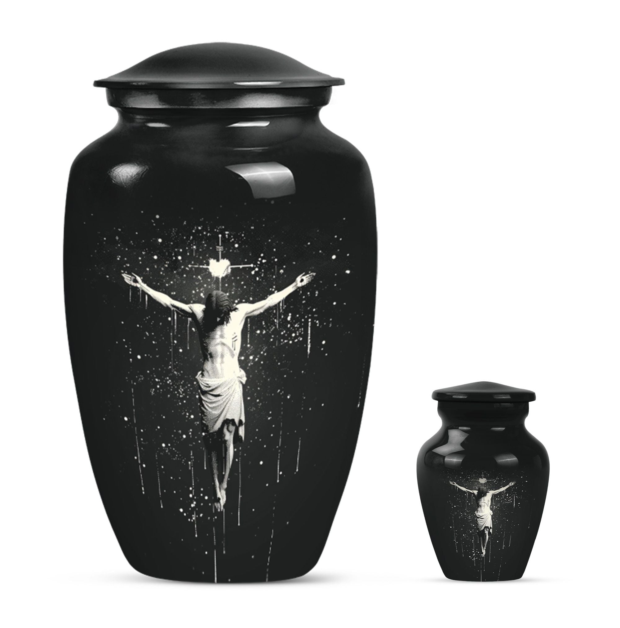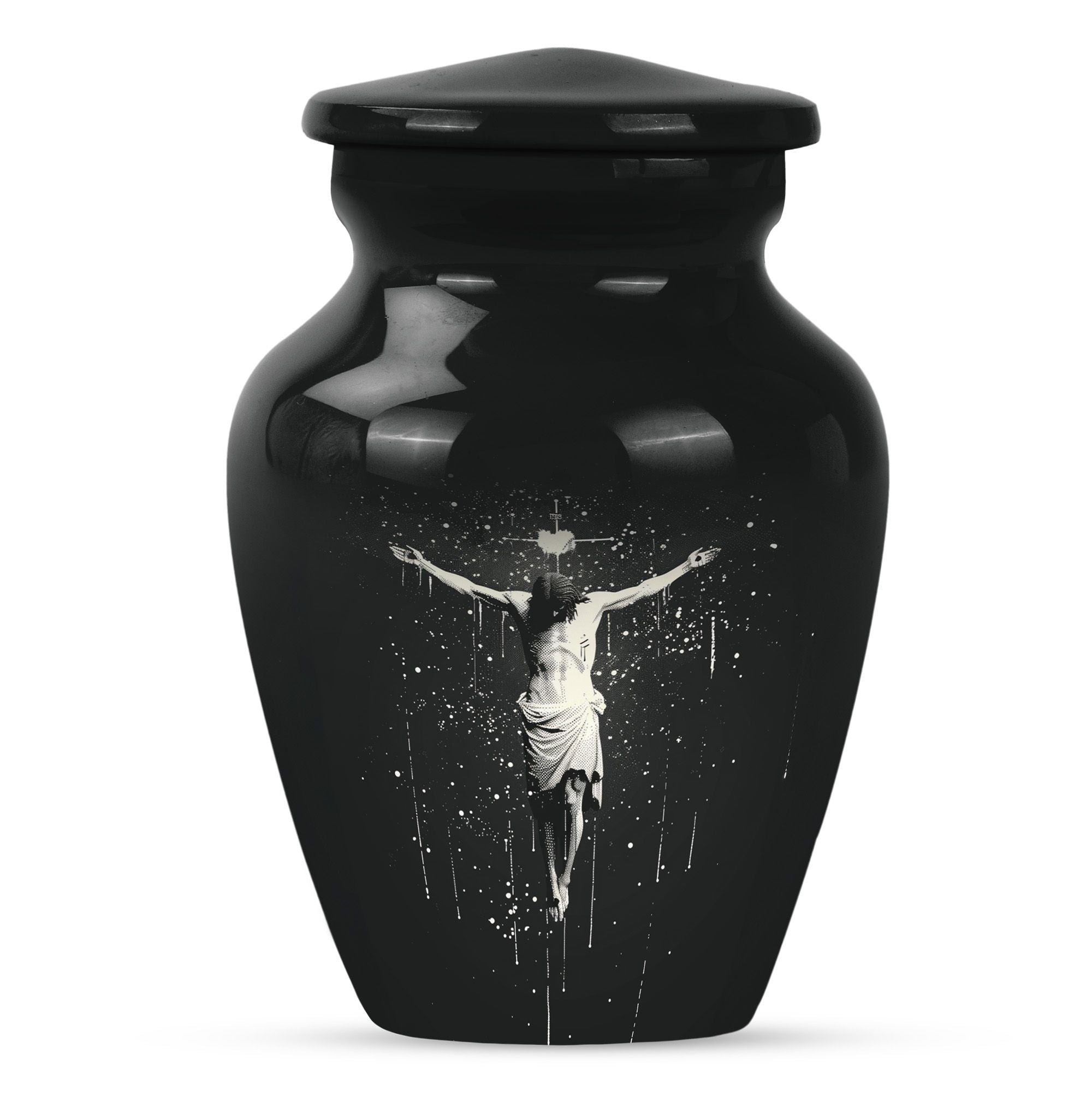 Revere the memory of a cherished person in an extraordinary and compelling way with our 10-inch classic cross urn, an exquisite part of our ceremonial supplies collection. Made from high-quality aluminium, this large urn weighs 3.3 pounds and has a generously spacious capacity of 200 cubic inches. It comes with a velvet pouch for securing the ashes, adding a touch of elegance and respect. This funeral urn for ashes for women or an adult male captures the essence of the past while promising solace for those left behind. With options to personalize through engraved names, this urn becomes a thoughtful and enduring testament to a lifetime of unforgettable memories. This memorial urn, embodying a gramophone theme, showcases a timeless tribute that can be passed down through generations. Whether you're finding burial urns or a box to hold precious stories, discover the unique alternative in our impressive, tastefully designed cross urn.