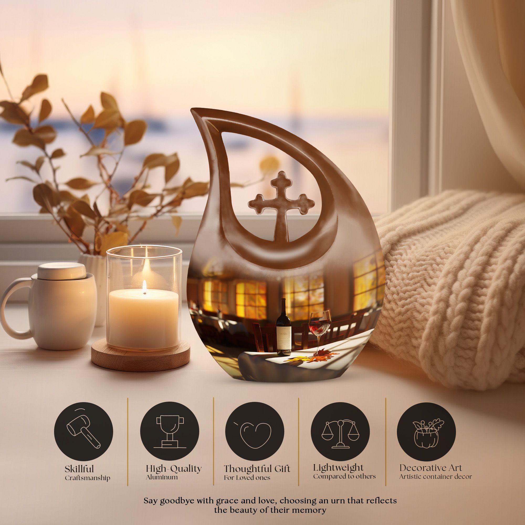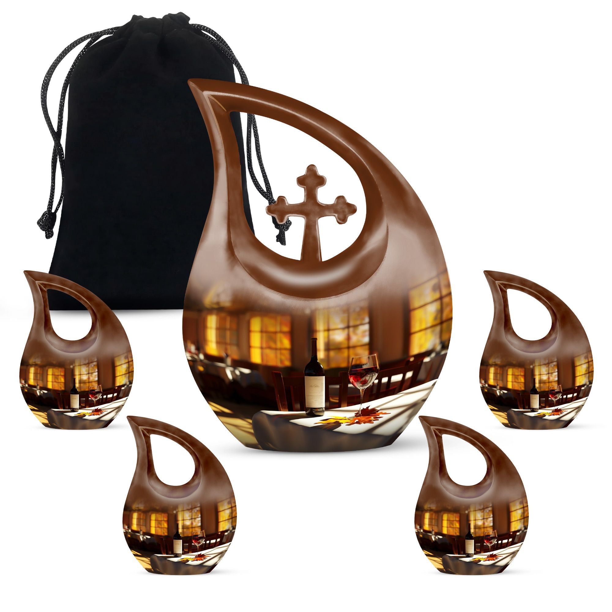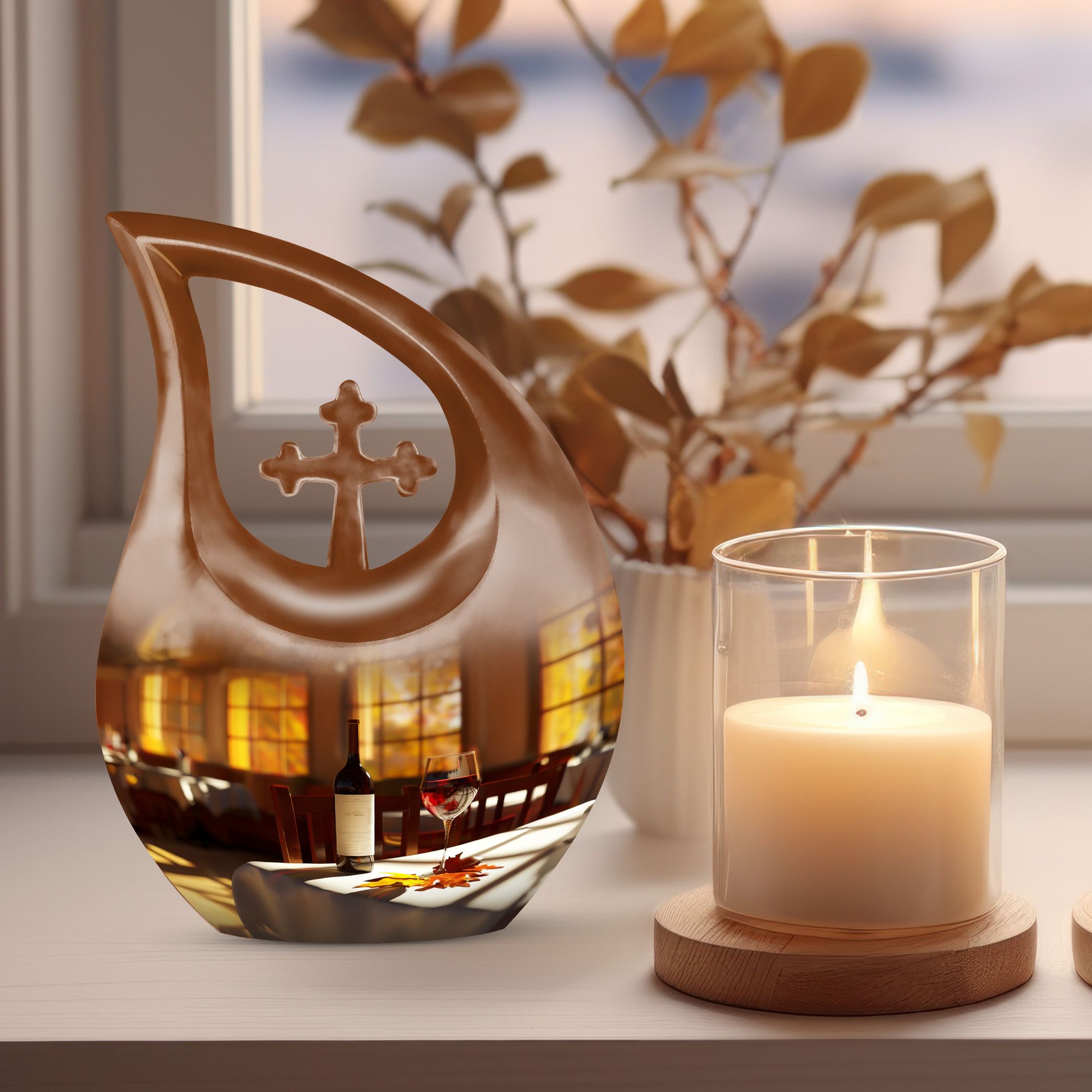 Experience a renewed sense of comfort and peace with our premium, 10-inch 'Cross Drop' Wine Urn. Crafted meticulously with high-quality aluminium, this large urn weighs a modest 3.3 pounds, ensuring stability and durability. It exhibits a capacity of 200 cubic inches to safely hold the ashes of your loved ones. Dressed in a rich wine theme, this urn transcends conventional designs with its unique 'Cross Drop' pattern. Each purchase includes an elegant velvet pouch intended to contain the ashes discreetly. Catering to your individual needs, this affordable cremation urn allows personalization - you can engrave names to imbibe a touch of love and personal touch. Whether you're looking for funeral urns for sale or small urns for ashes, this piece serves as a fitting homage to departed souls. Purchase it today, as memorial urns and cheap funeral urns of such high-grade material and artistry are rare to find.