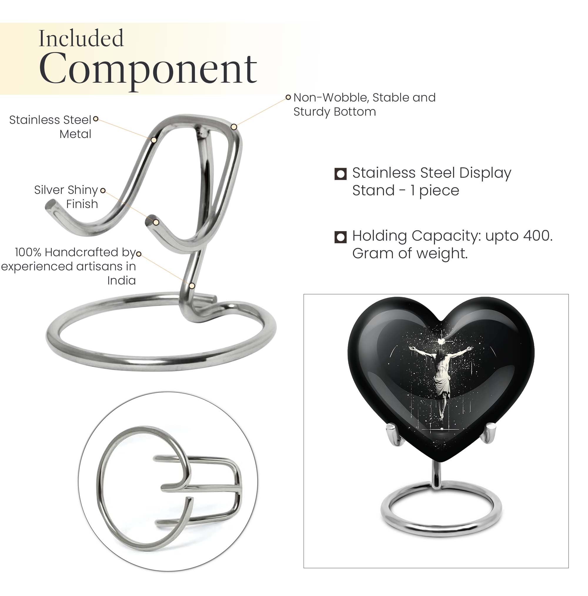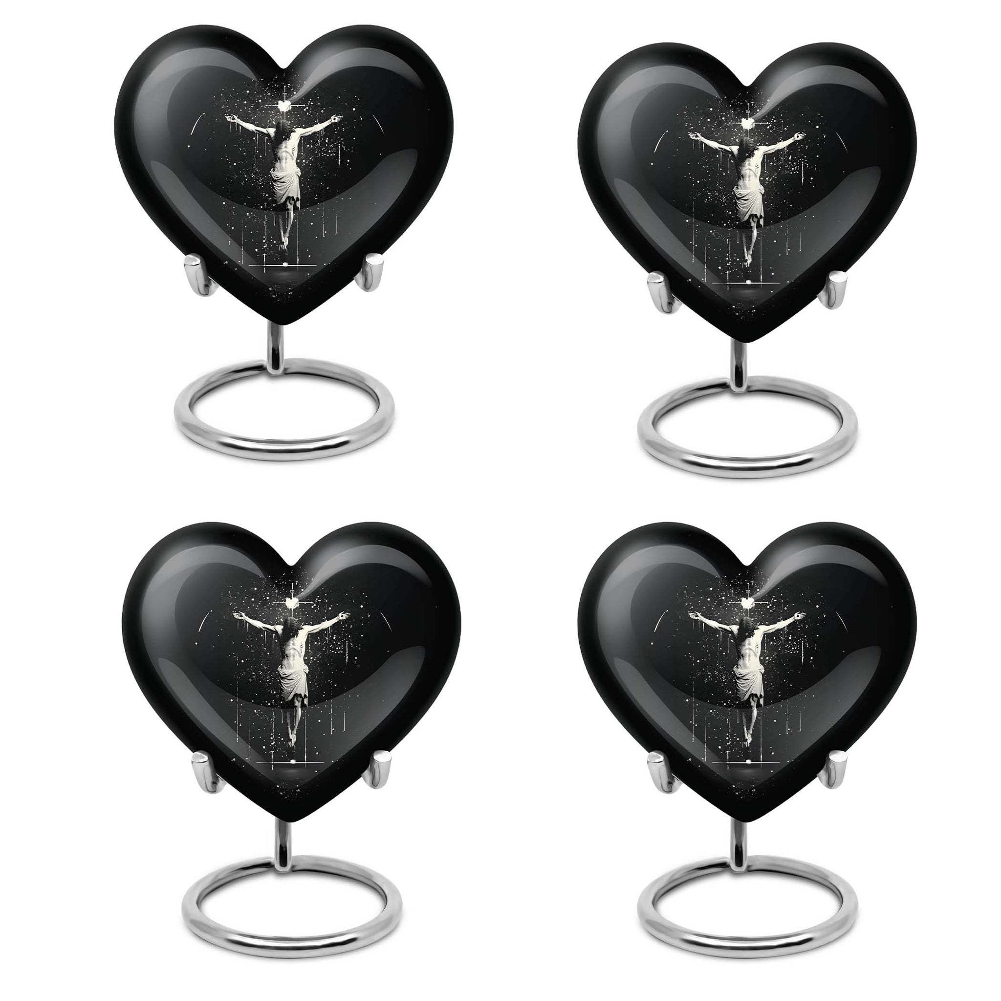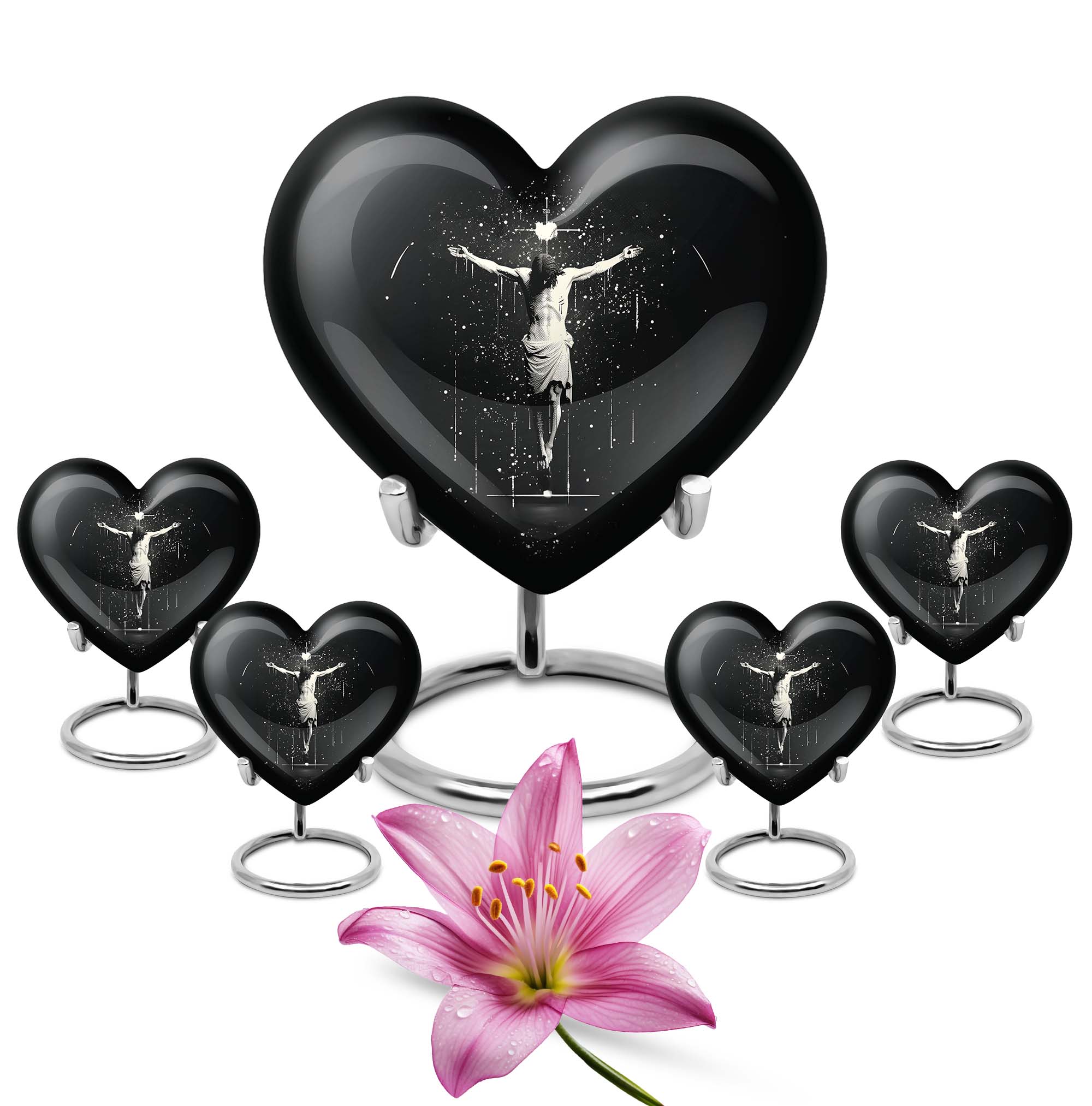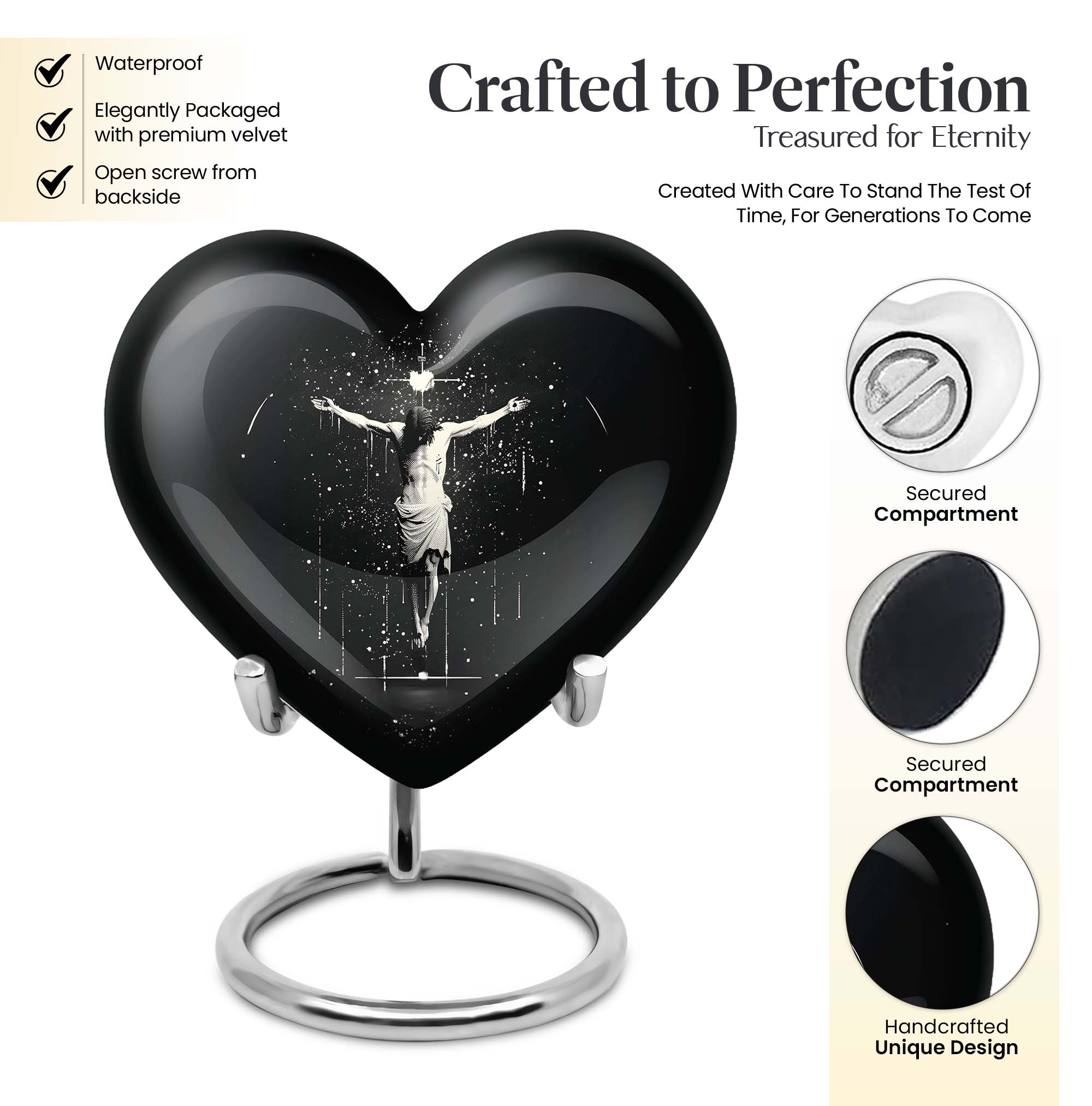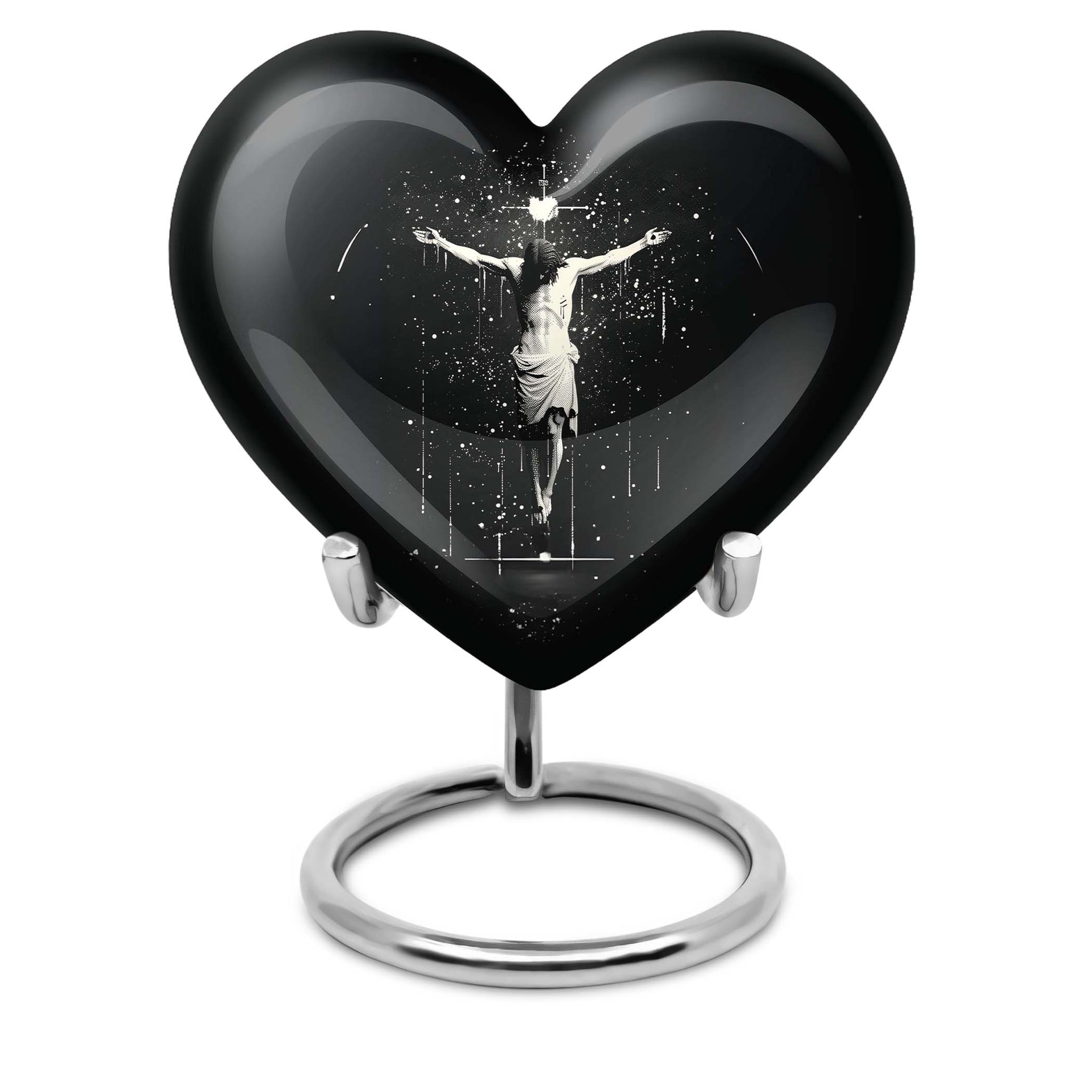 Preserve your loved ones' memories with our uniquely crafted, heart-shaped memorial urn for ashes. Crafted from durable yet lightweight aluminium, tailor this large urn to make it truly unique with our customization options. Personalize it with engraved names making it a truly unique and thoughtful tribute. Measuring 10 inches in height, the urn offers a generous interior space of 200 cubic inches, suitable for an adult male or female. The urn weighs 3.3 pounds, allowing for easy placement and transport. Our heart urn comes with a complementary velvet pouch, providing a respectful containment for the ashes. Bring a touch of class to any memorial ceremony with this urn that elegantly displays a vintage gramophone theme. Remember your beloved ones in a meaningful way with a unique, lovingly-crafted cross urn designed for enduring respect and remembrance. Ideal for phrases related to 'urn for mom', 'funeral urn for ashes for women', 'burial urns', 'cross Urn', and more. NOTE: Design is excluded as per instructions.