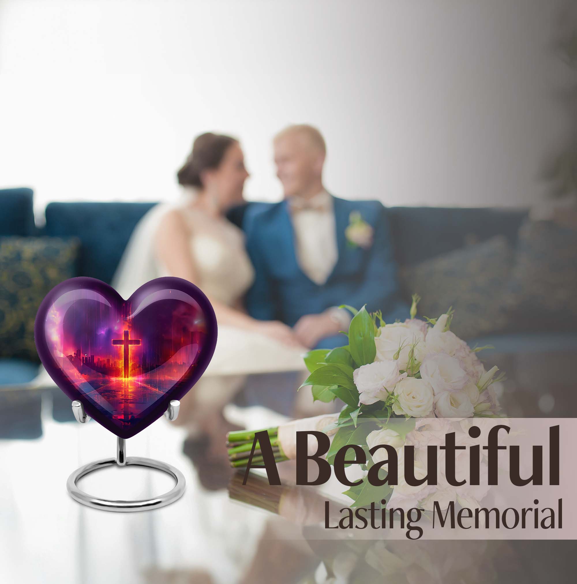 Embrace the sublime beauty of the Aurora Borealis with our large, 10-inch cross urn. This cremation urn, finely crafted from Aluminium, stands as an enduring memory of your loved one. Not just an urn for burial in ground, it commands a weight of 3.3 pounds and capacity of 200 cubic inches, making it apt for holding the cherished ashes of adult men and women. The package comes inclusive of a delicate velvet pouch, guarding your treasured namesake with utmost reverence. Moreover, our urn permits personalization; you can engrave names, thus lending a profound personal touch to this memento. This cremation urn not only safeguards your precious remembrances, but it also stands as a replication of the majestic Northern Lights, a comforting symbol in the landscape of mourning. As such, it allows you to pay heartfelt tribute while merging seamlessly with your religious and ceremonial needs.