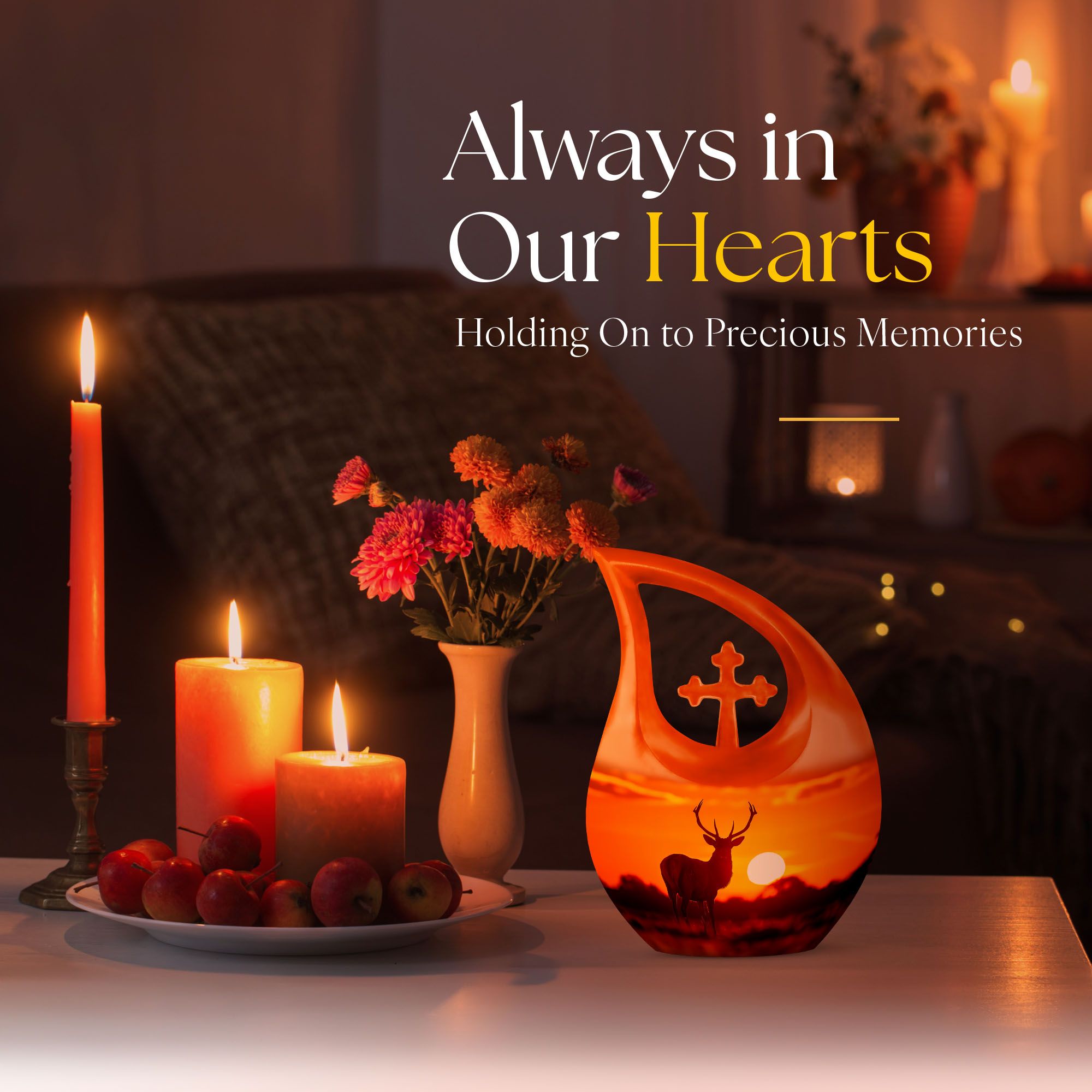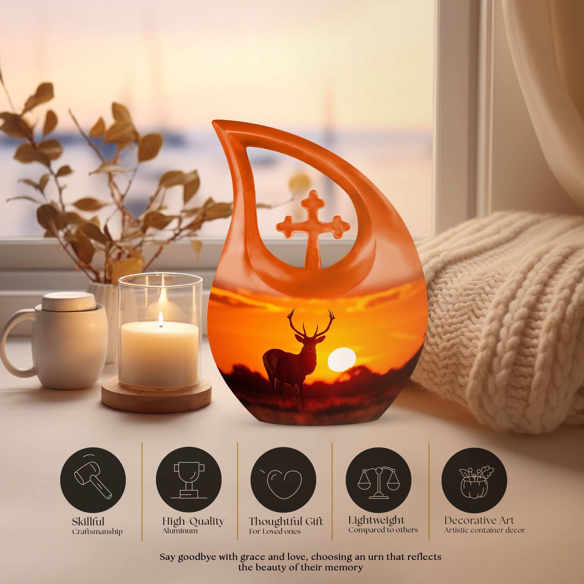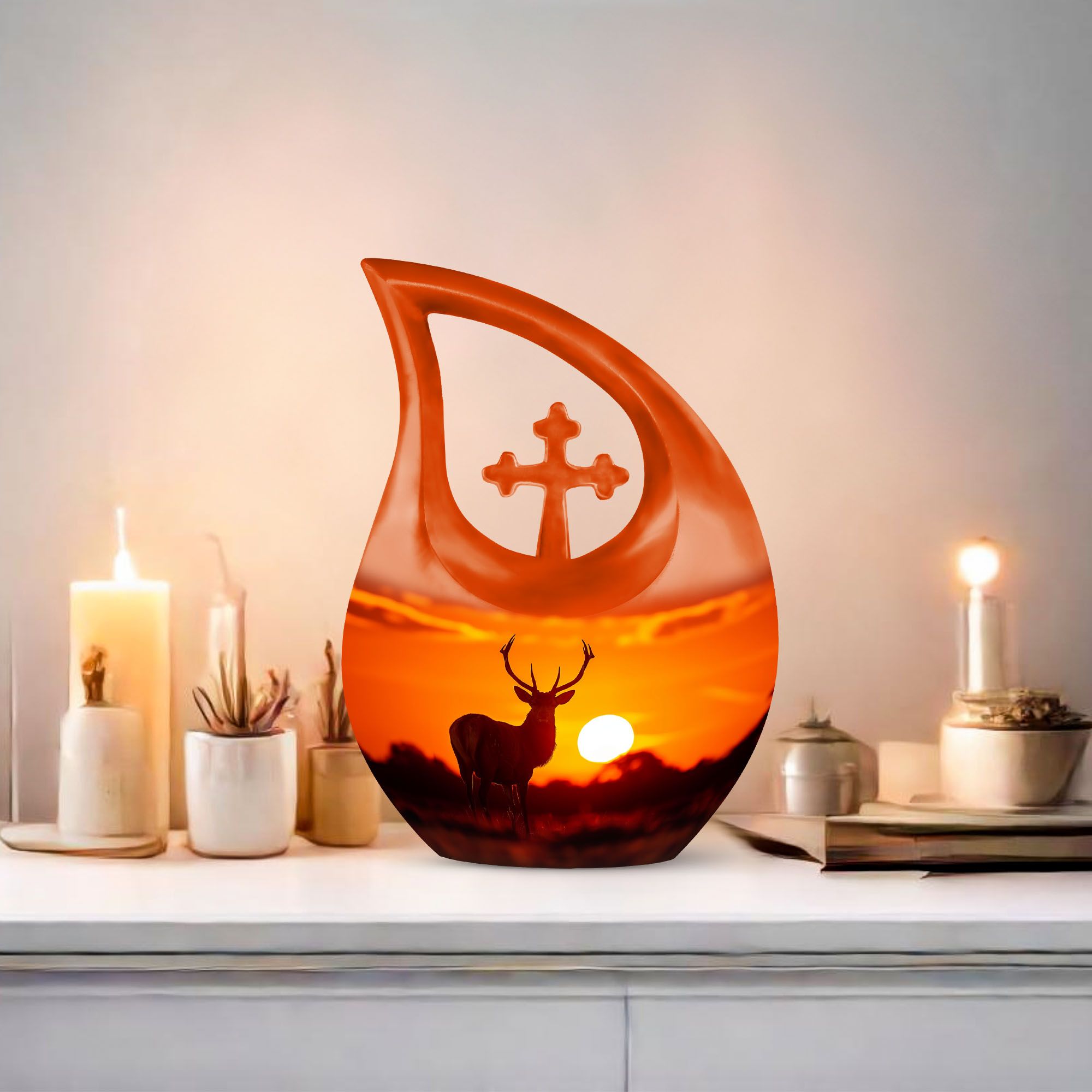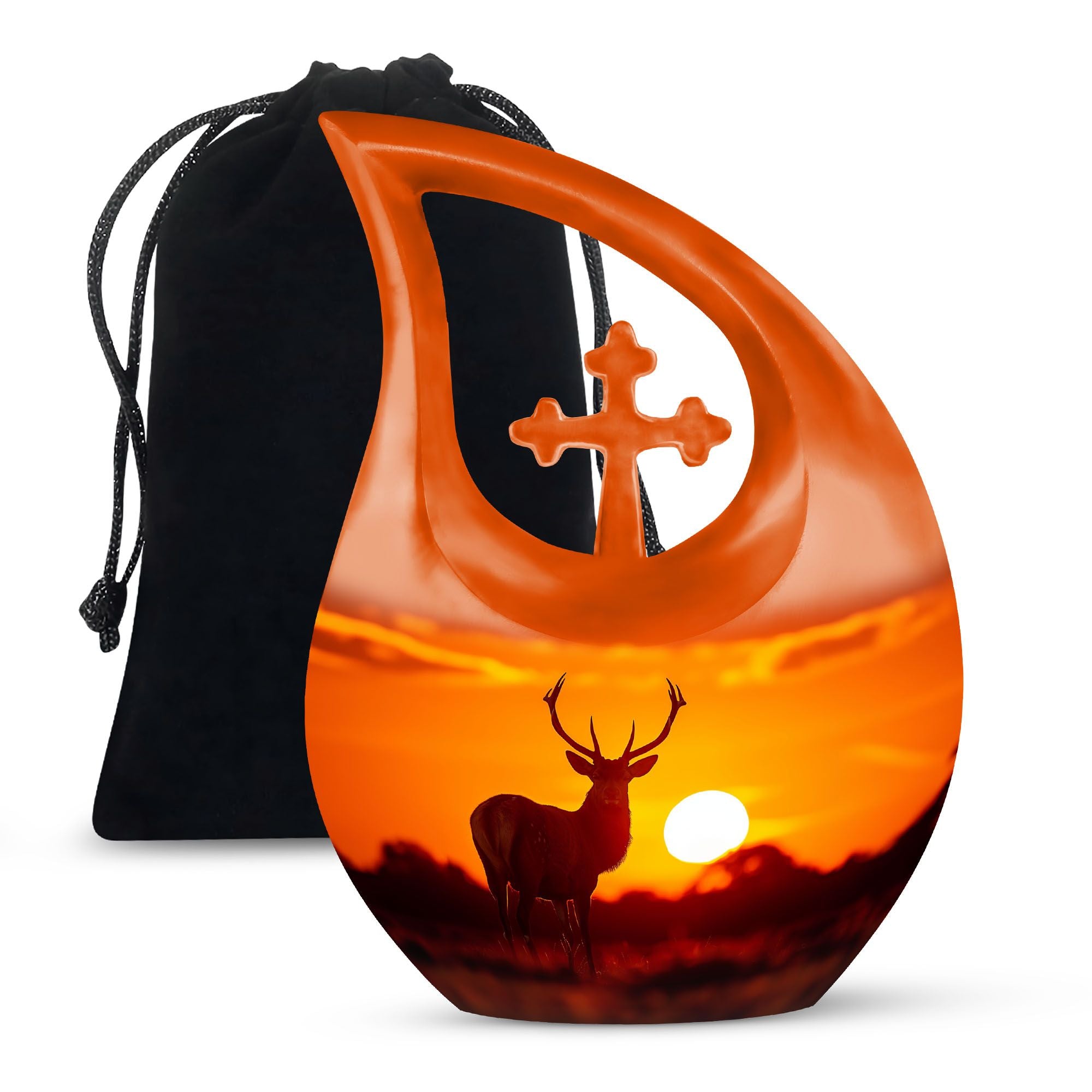 Large Deer Memorial Cross Drop urn for ashes for adults