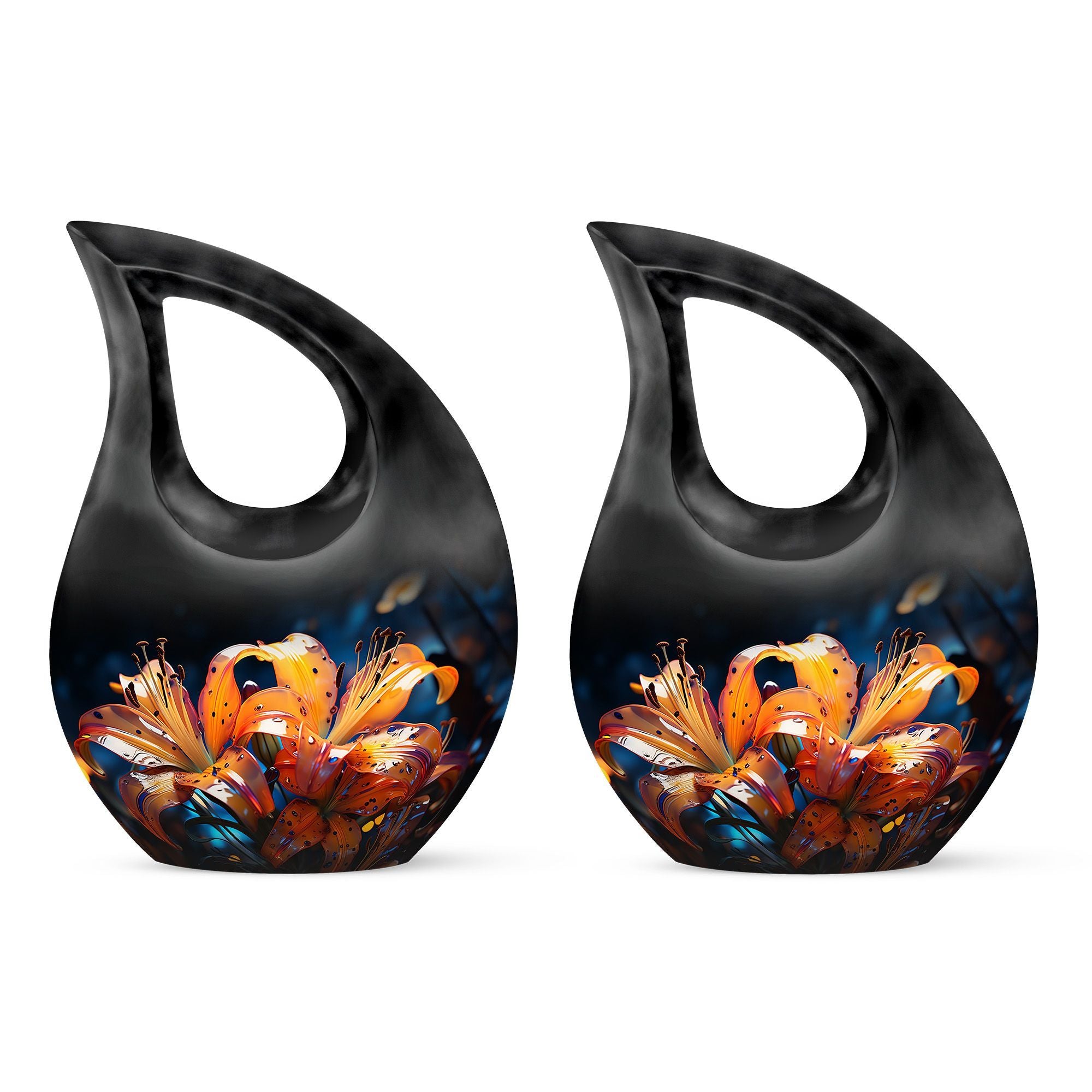 Celebrate a life of courage and beauty with our Black Teardrop Funeral Urn, adorned with an Orange Tiger Lily and Cross design. This elegant cremation urn embodies the perfect balance of strength, grace, and faith — offering families a timeless tribute to their loved one. Whether chosen as a large urn human ashes memorial or a keepsake urn for women, it represents the radiant spirit of eternal love.