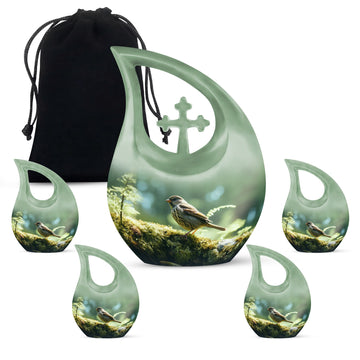 Celebrate the life of your loved one with the Small Finch Cremation Urn for Human Ashes, a heartfelt symbol of hope, serenity, and remembrance. The soft light green teardrop design, accented with a delicate finch motif, embodies renewal and tranquility — a fitting tribute for urns for human ashes adult male dad or urns for human ashes adult female mom. This elegant piece offers a meaningful way to preserve cherished memories in a graceful, comforting form.