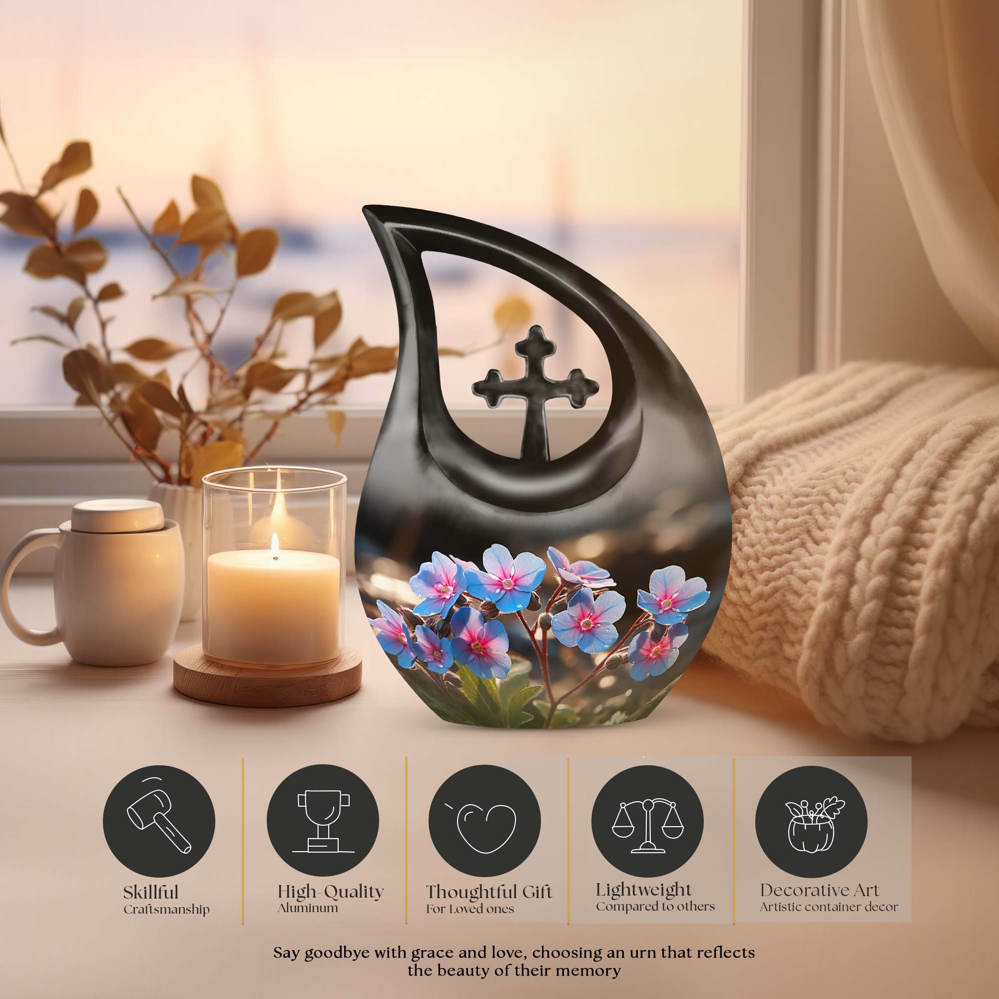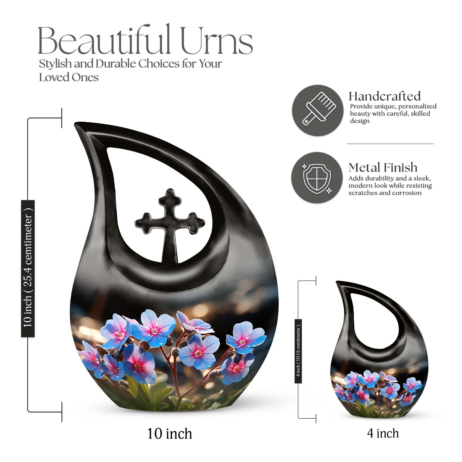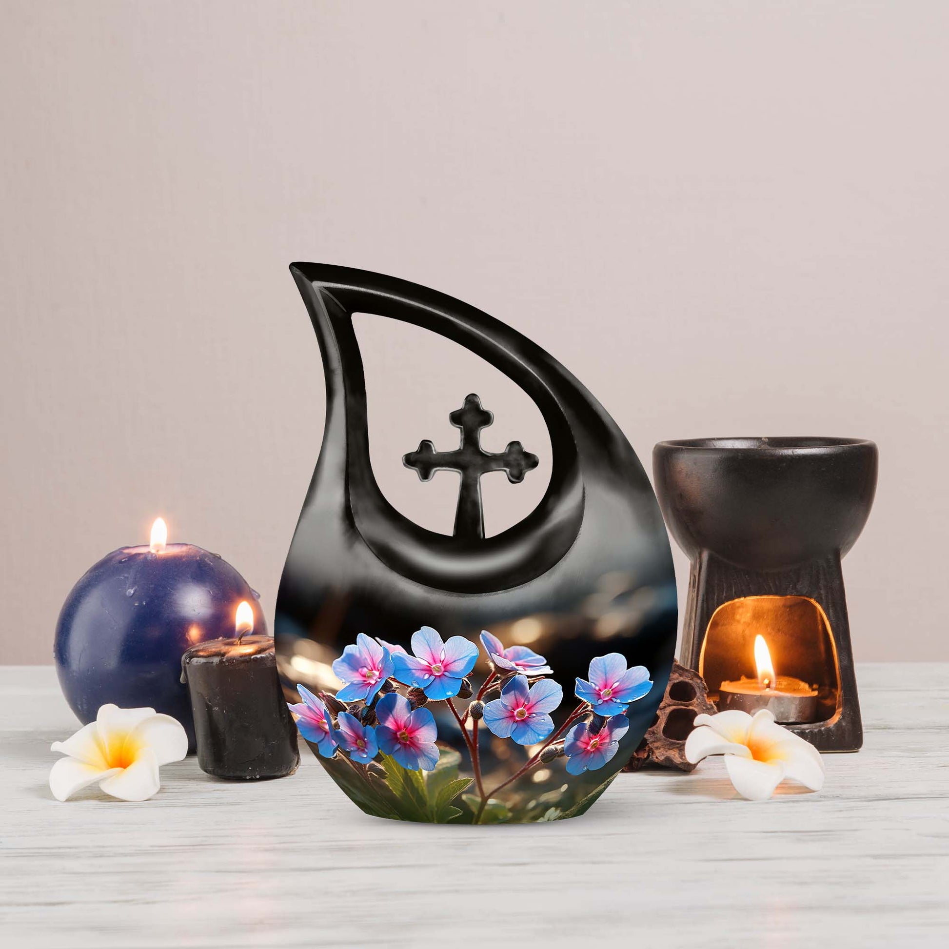 Celebrate timeless love and remembrance with the Blue Blossoms Urn Combo, an exquisite large and keepsake urn set designed to bring peace and comfort to families. The soft blue floral motif symbolizes serenity and eternal connection, making this set ideal as an urn for women ashes or a dignified urn for men & women memorial choice.