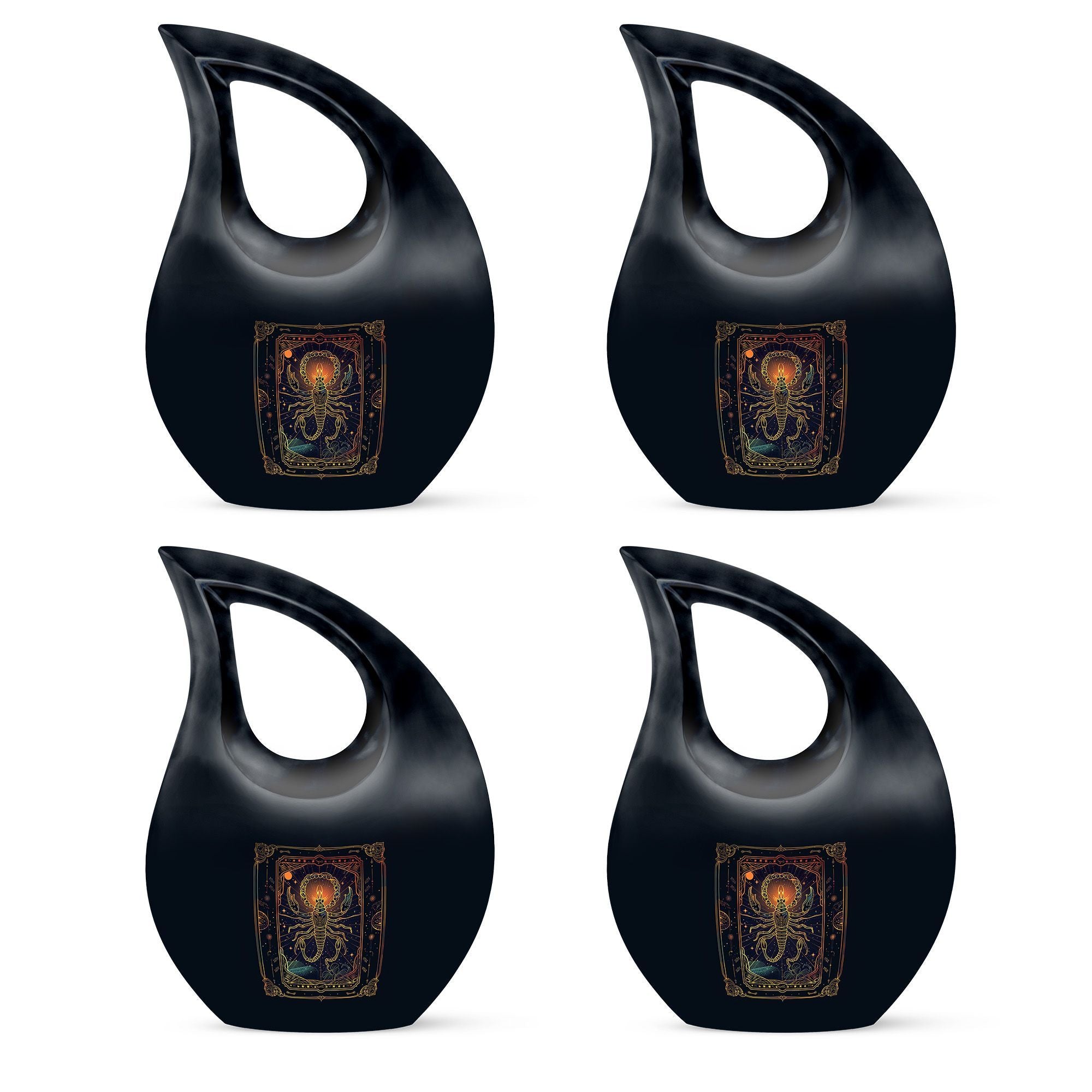 Discover an exquisite way to treasure the cherished memories of a departed soul with our Zodiac large urn, crafted from durable aluminum. Standing at a meaningful height of 10 inches and bearing a weight of 3.3 pounds, this funeral urn signifies the importance of preserving precious remembrances. Encompassing a style that resonates with the zodiac theme, our memorial urn showcases an impressive 'Cross Drop' pattern. It is capacious enough to hold up to 200 cubic inches of ashes, thereby keeping the essence of the loved one intact. Moreover, we extend an option for you to personalize this keepsake urn with engraved names, adding an intimate touch to the urn. With your purchase, you will also receive a velvet pouch for respectful containment of ashes. This funeral urn is not just a symbol of remembering a life lived, but an embodiment of serenity and peace. Our zodiac urn is pocket-friendly, making it a viable choice for those seeking affordable cremation urns. Treasure the celestial connection with your loved one with our zodiac-themed urn.