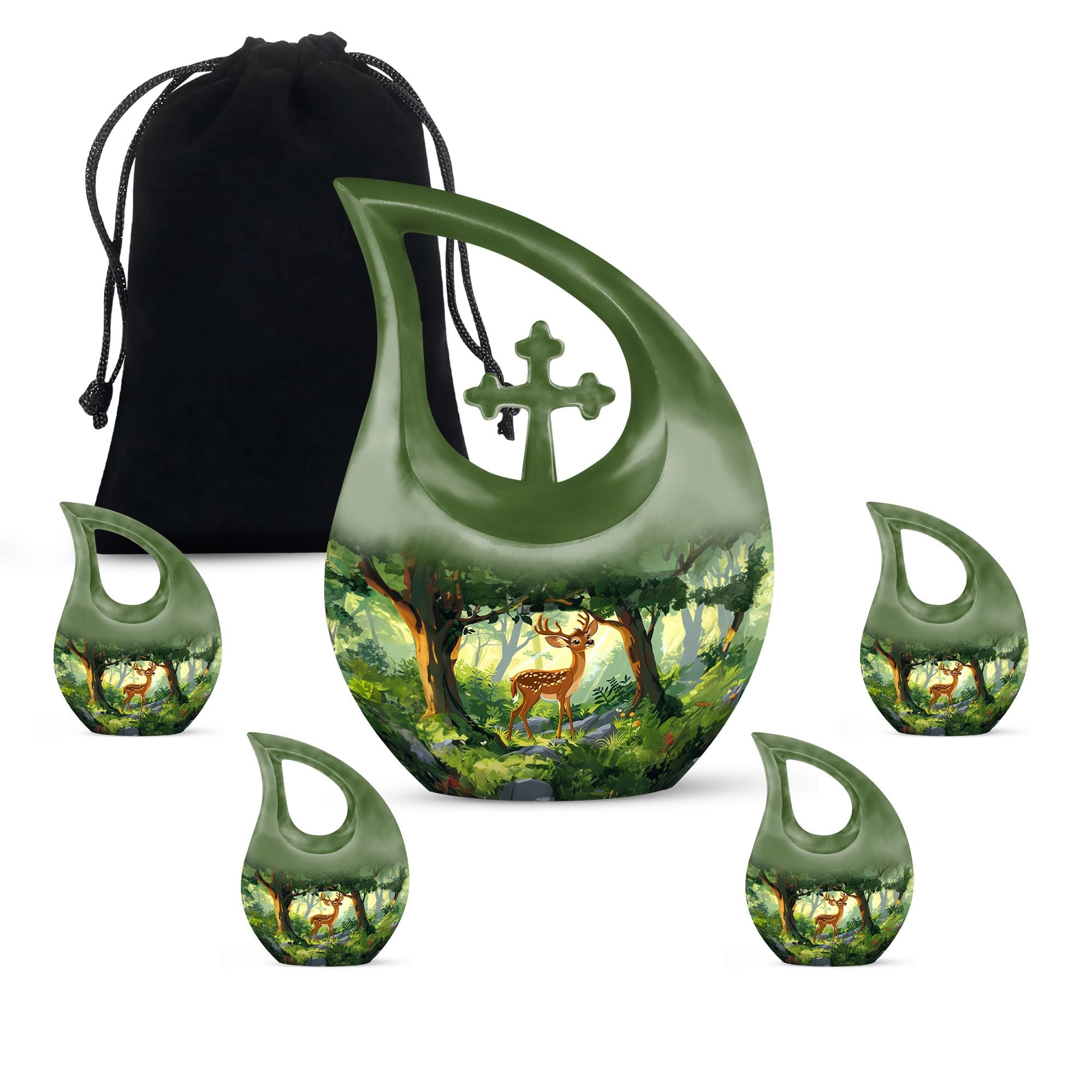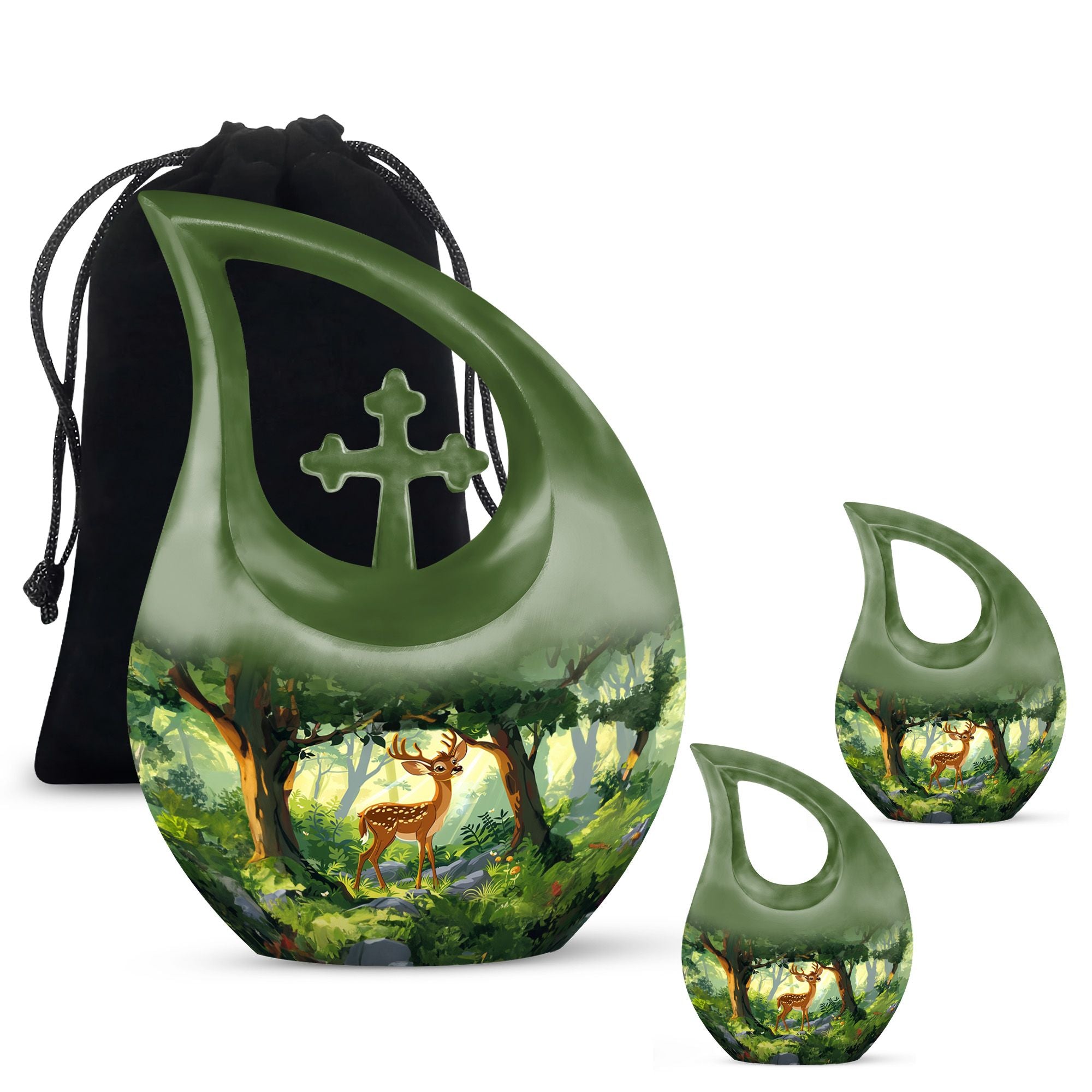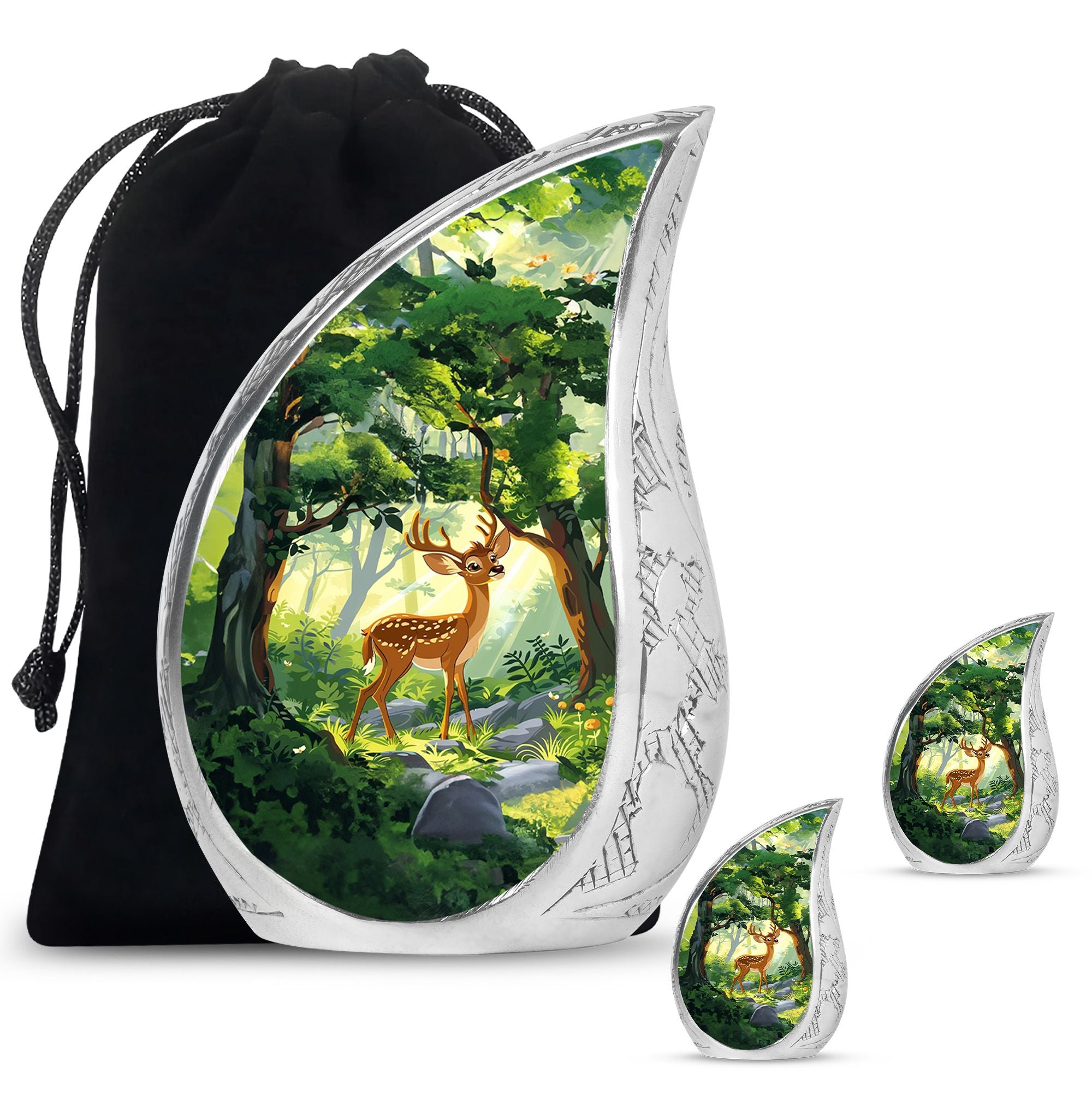 This urn is an ideal choice for those searching for large cremation urns for human ashes, offering generous capacity and a peaceful woodland theme. The serene deer design symbolizes strength, grace, and spiritual connection, making it a meaningful resting place for a beloved soul.