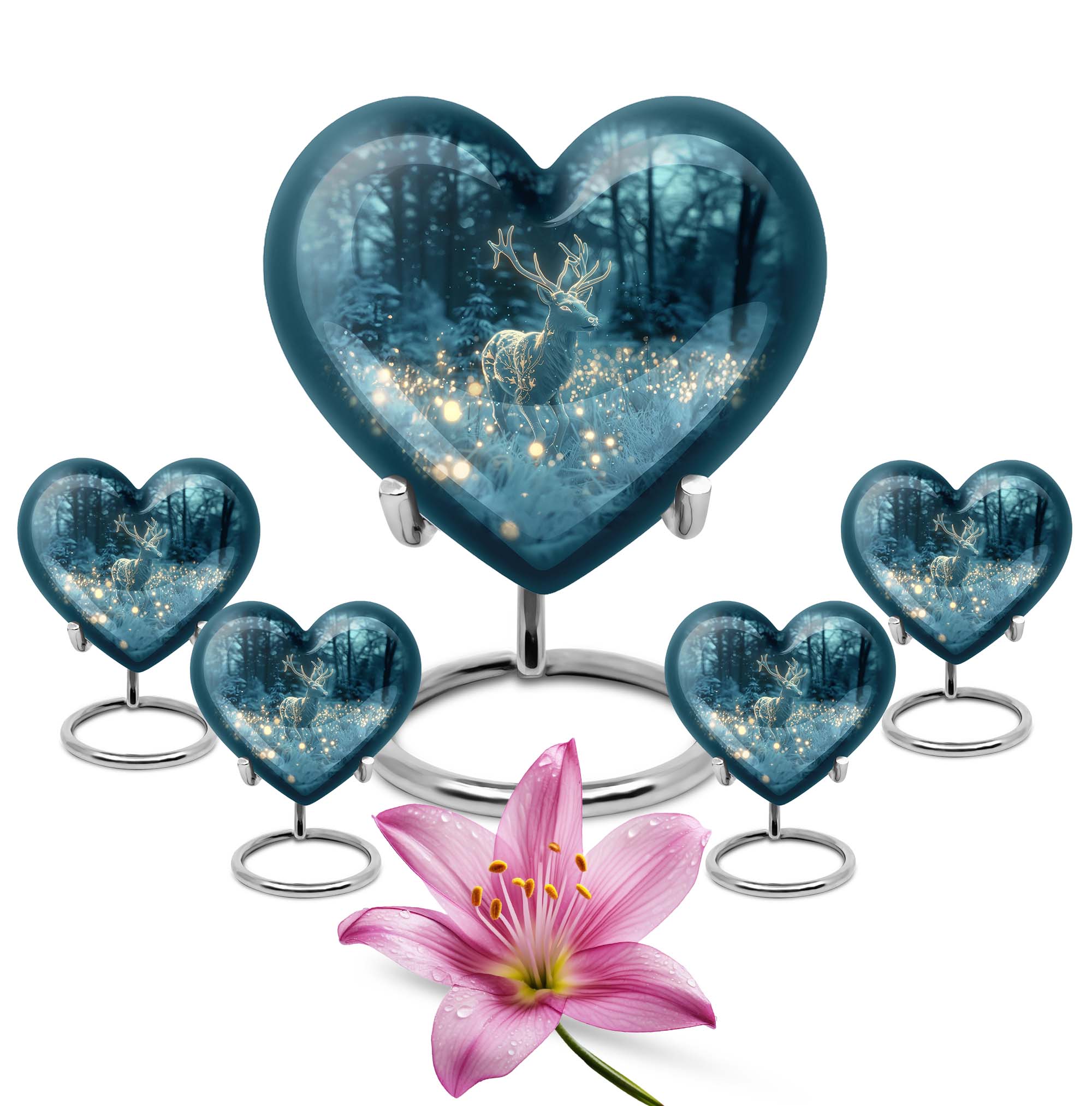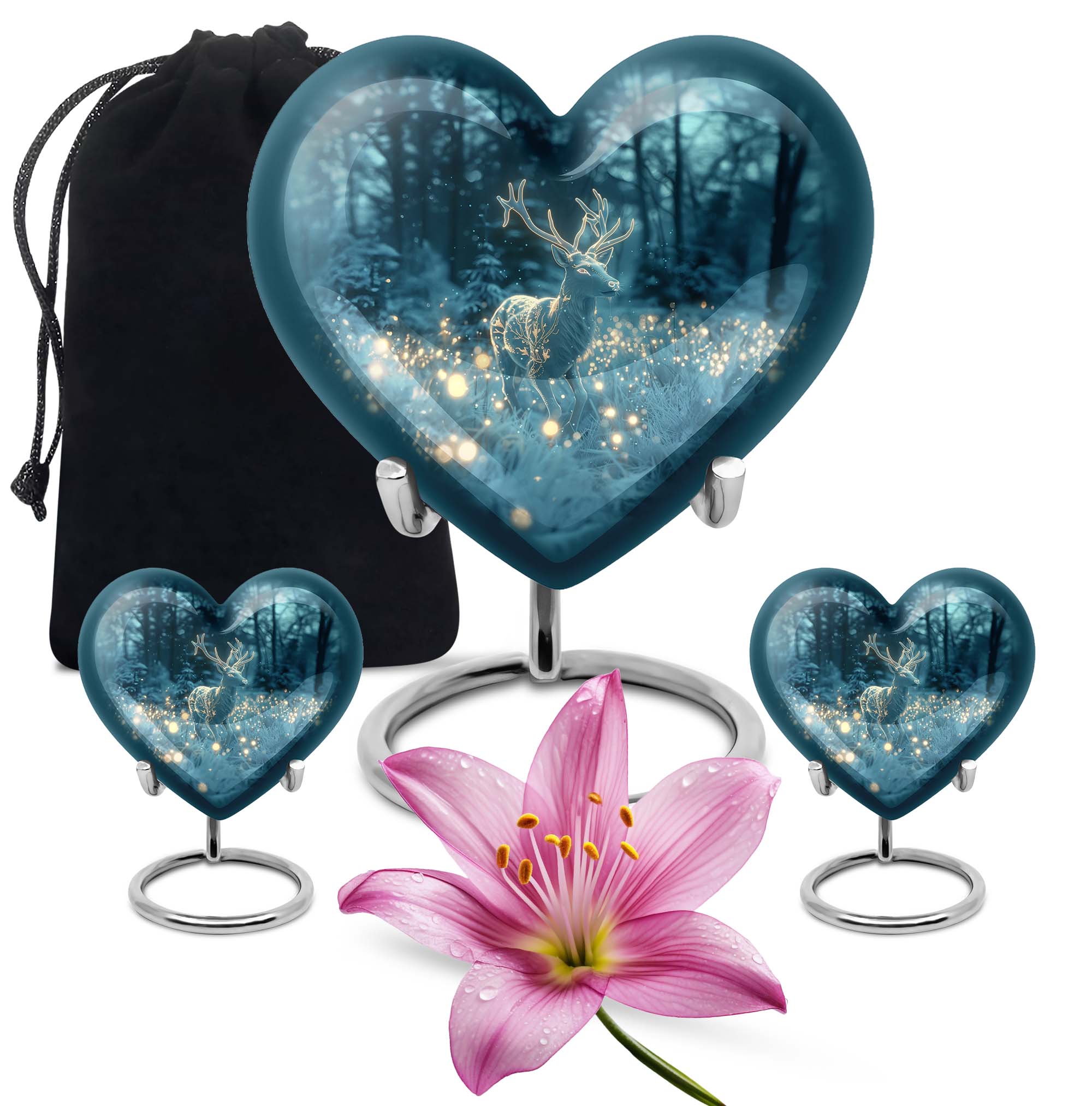 Honor the memories of your cherished ones with our exclusive 10-inch 'Deer Urn'. It falls under the unique category of 'Large Urns' for ashes, weighing just 3.3 pounds, making it a comfortable option to manage. The heart-shaped urn is designed, keeping artistic souls in mind, fashioned from high-quality 'Aluminium' to ensure long-lasting durability. The 'Gramophone' theme adds a classic touch, reflecting an eternal farewell song. The urn provides a capacity of '200 cubic inches', near about suitable for adults. To add a personal touch, there's an option for customization, you can engrave names of your loved ones. The package comes with a luxurious velvet pouch ensuring safe containment of ashes. This is not just a cremation urn, it's a tangible piece of art to remember your loved one. It's ideal as 'funeral urn for women's ashes' or essentially, for anyone bearing a soulful connection with music. Handcrafted with love, our 'memorial large urns for ashes' are a fitting tribute, designed for remembrance.