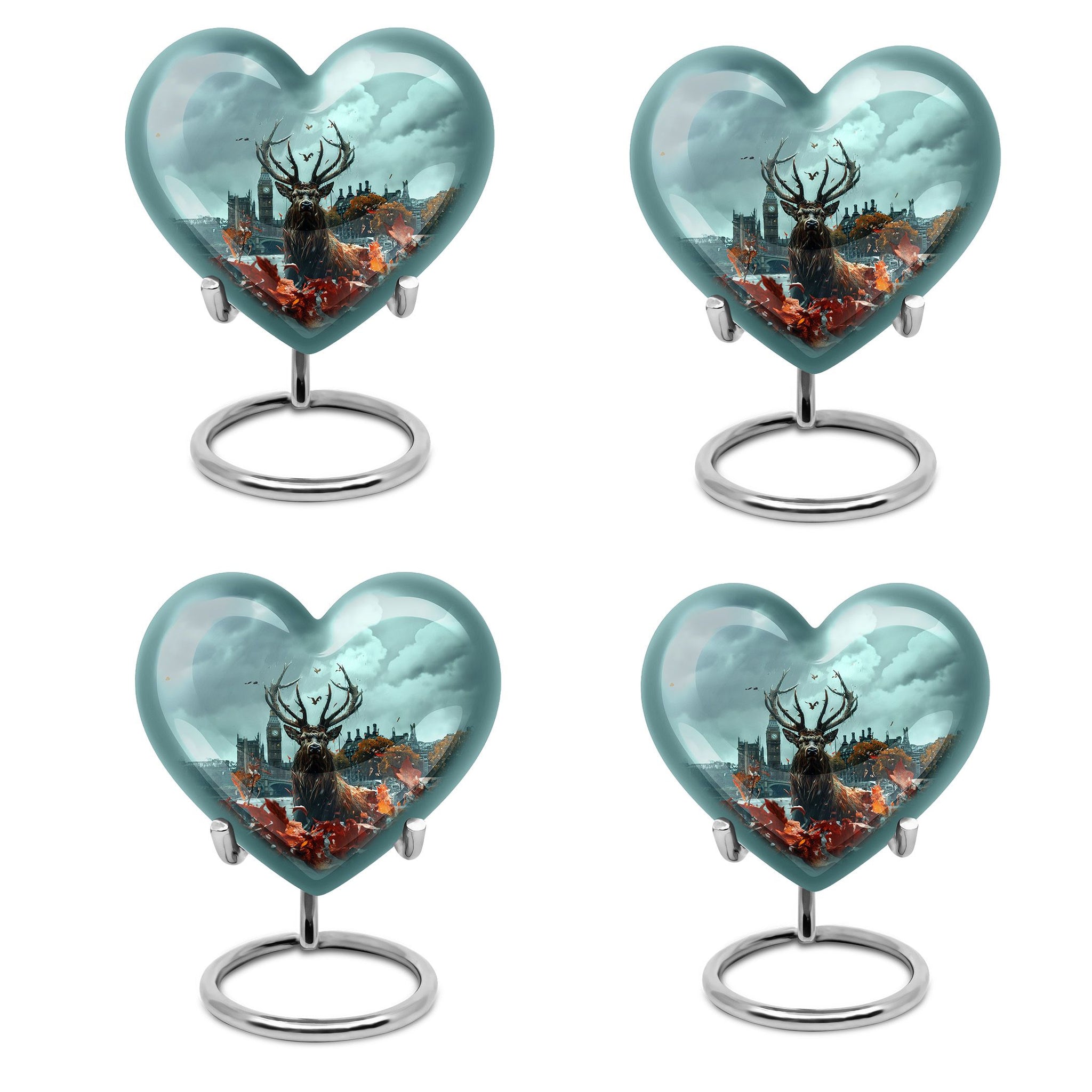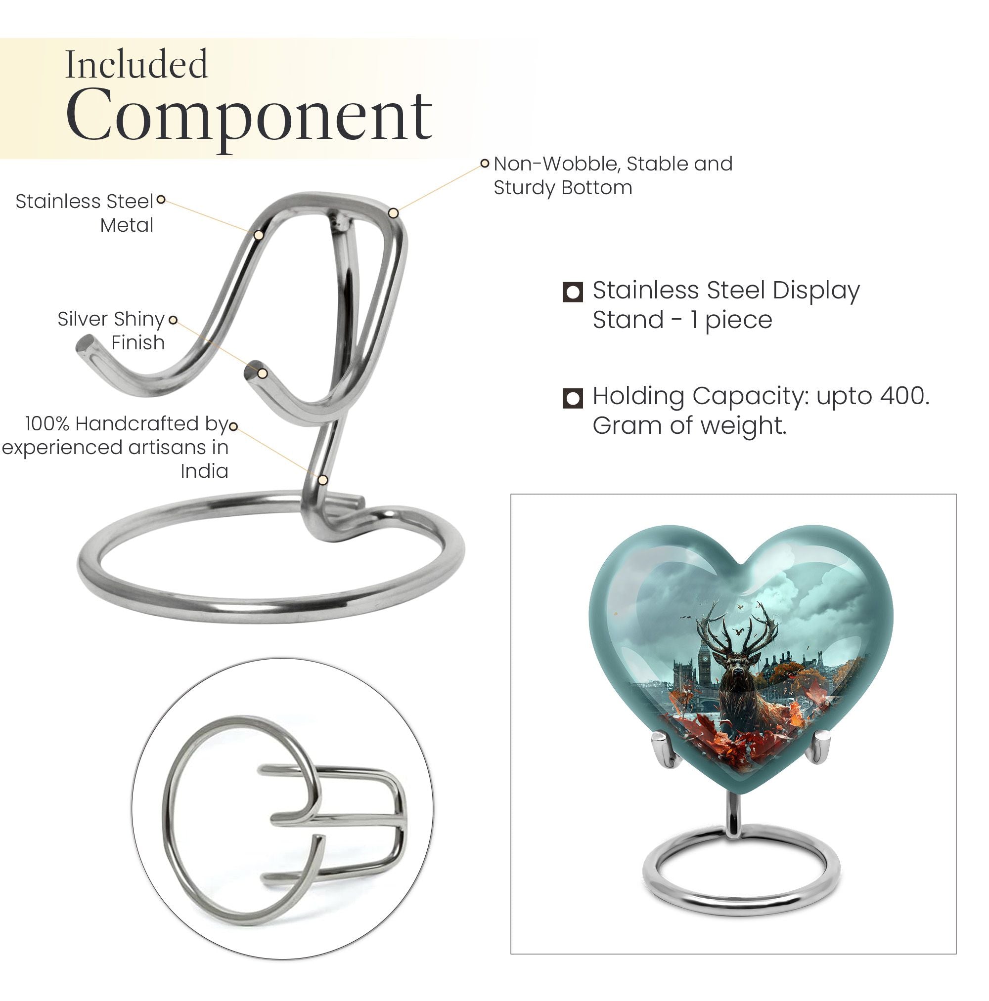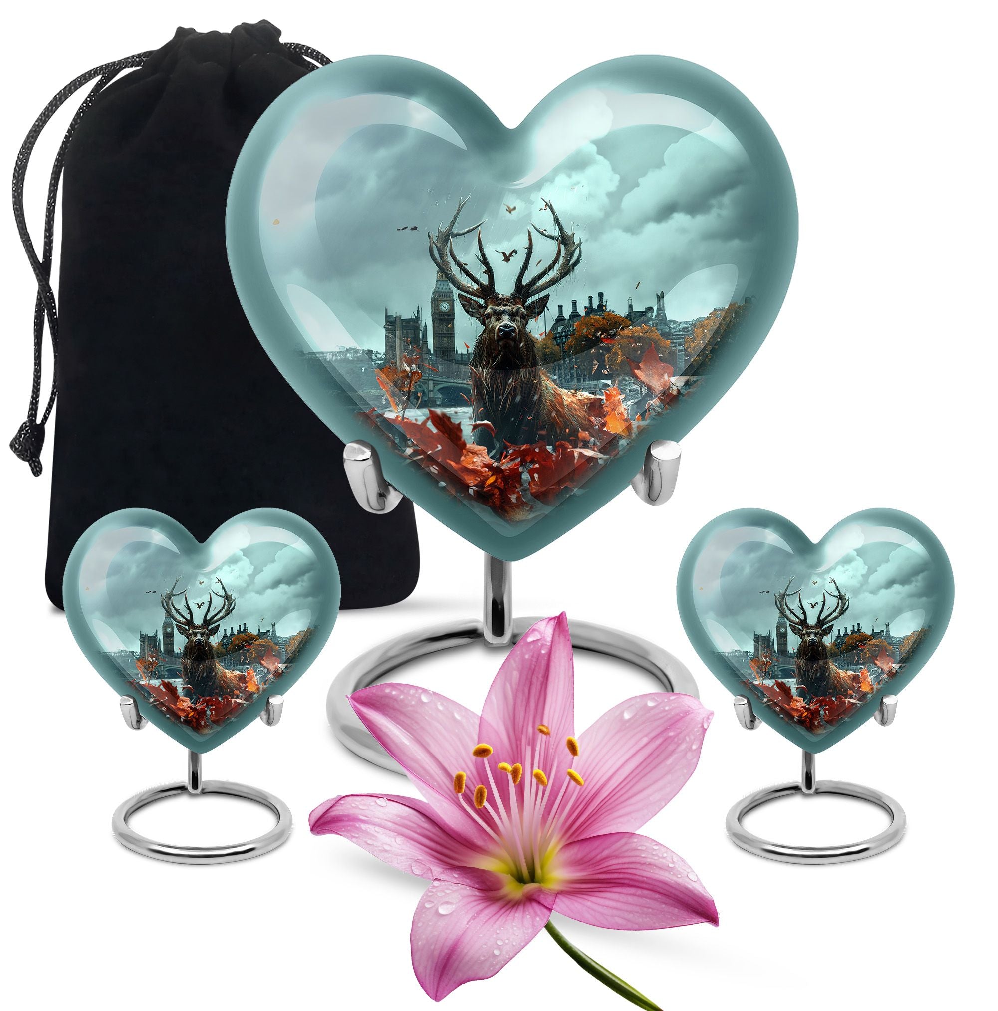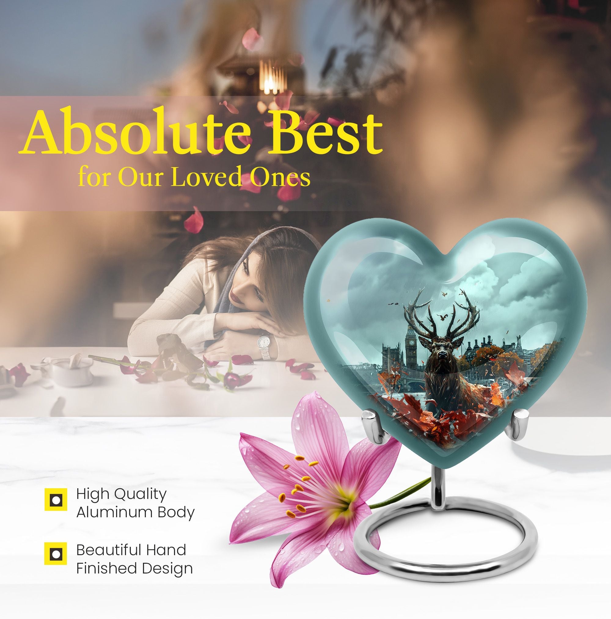 Preserve the remnants of your loved ones with our resplendent aluminium deer urn, specifically crafted for adults and senior citizens who prefer elegant memorial urns. This sophisticated, 10-inch tall urn boasts great capacity, encompassing up to 200 cubic inches of ashes. Despite its grand build, it only weighs a modest 3.3 pounds, making it easy to handle. Each urn comes with a soft, complementary velvet pouch, providing a pleasant containment for ashes. Uniquely styled with a heart shape and a vintage gramophone theme, this urn transcends the blandness of typical funeral urns. Leverage the option to embed personalized engraving, enabling you to tailor the urn with meaningful names or messages. Also, this admirable urn checks all the boxes as a tasteful piece of decor that can seamlessly blend with your home's aesthetics. Whether you're looking for funeral urns for human ashes, or oversized urns for adult female ashes, our large, aluminium deer urn stands as a timeless, dignified choice. Note: Design is not included.