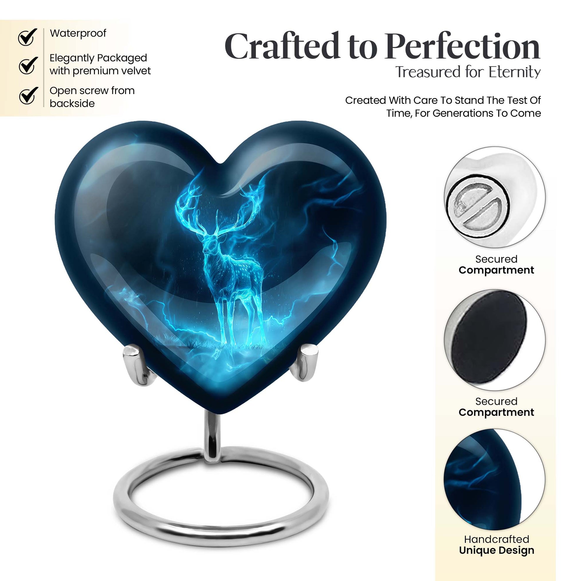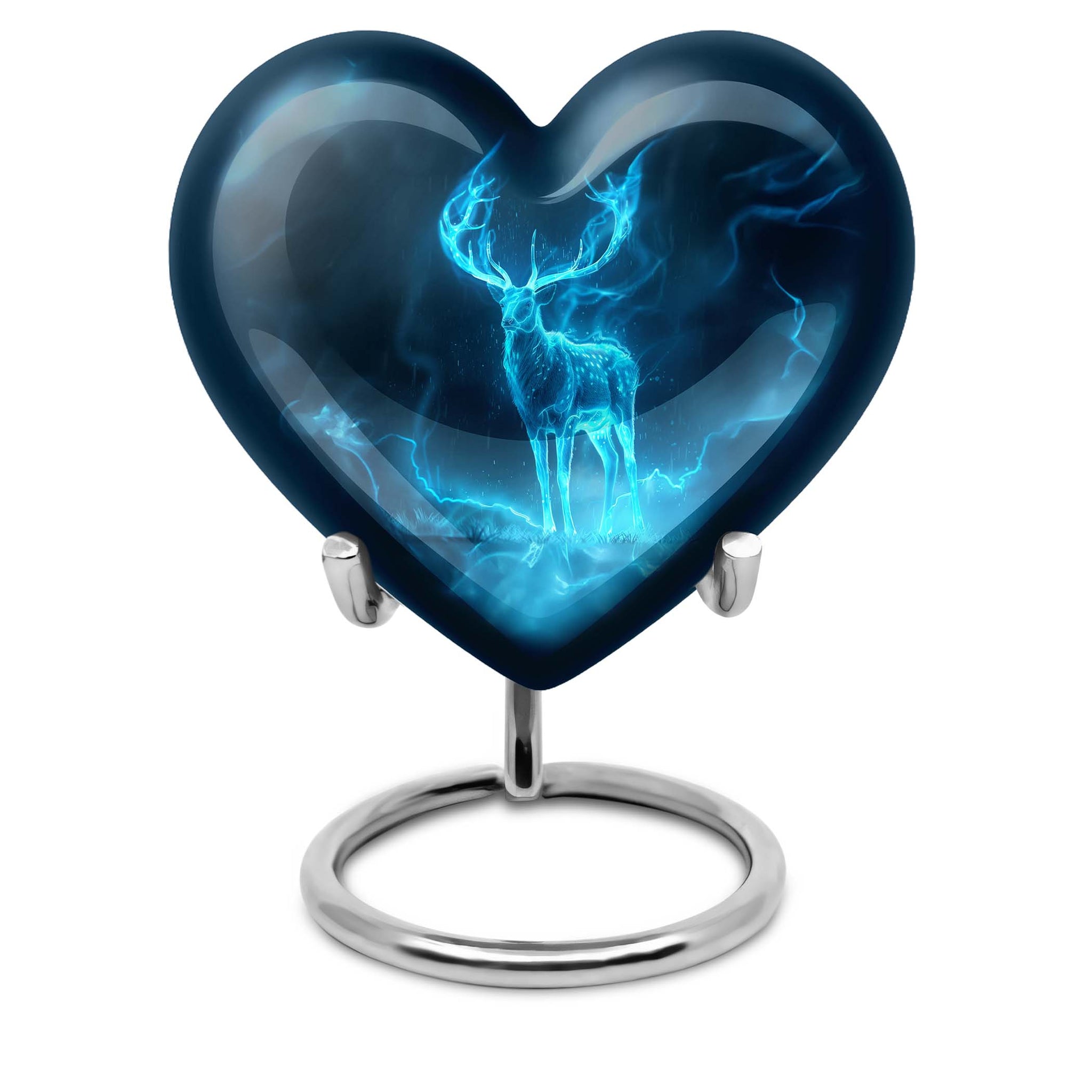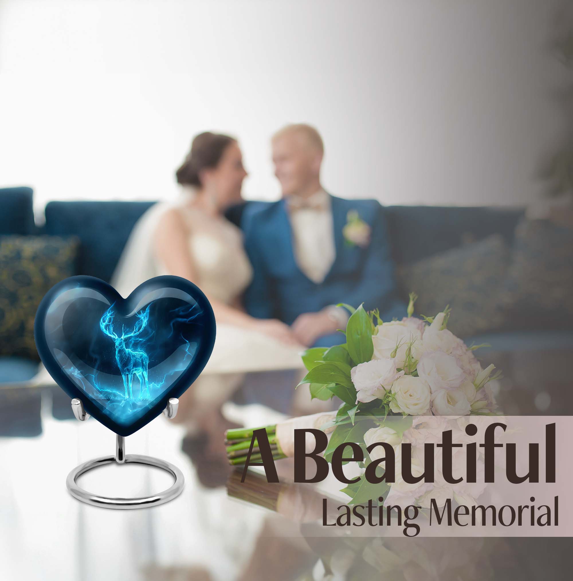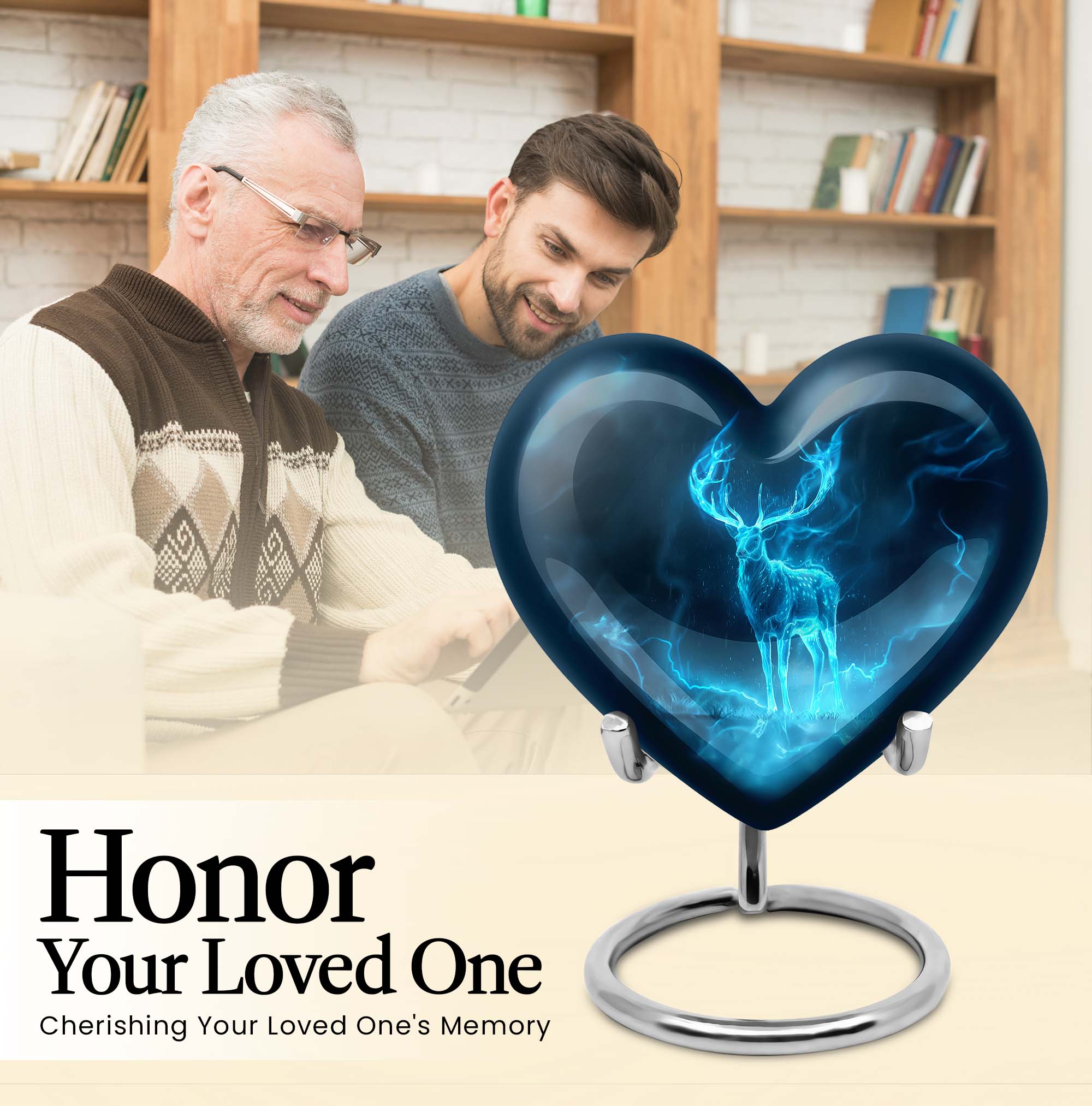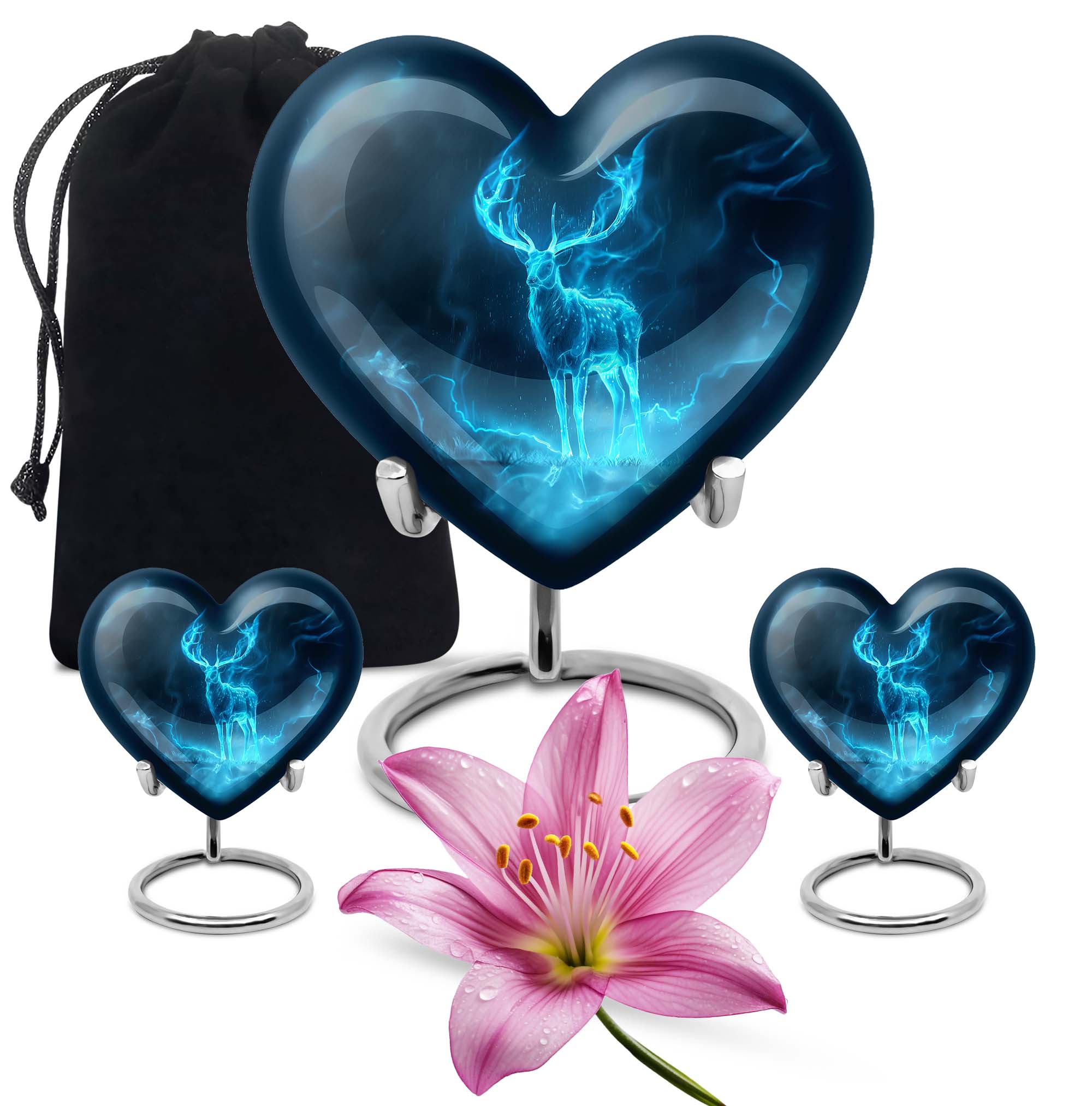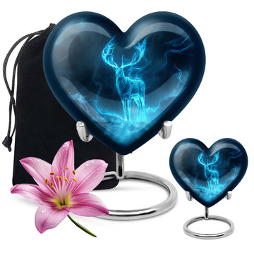 In your solemn moments of remembrance, our large 'Wolf Howling' memorial urn, embossed with a poignant deer theme, provides a touching resting place for your dear loved one's ashes. This robust 10-inch aluminium urn is more than a simple funeral supply; it's a keepsake that encapsulates cherished memories. With its weight of 3.3 pounds, it boasts a capacity of 200 cubic inches, making it a fitting choice for adult ashes storage, a tribute for both men and women. The package includes a velvet pouch complementing the urn, ensuring safe containment of ashes, further expressing your deep devotion. You also have the opportunity to personalize the urn with engraved names, making it more unique and sentimental. Ideal for burial funeral or cremation purposes, this urn is an artistic and noble way to honor your loved one's legacy. Principal search phrases associated with this product are 'deer urn', 'burial funeral urns for adult ashes men', 'cremation large urn for ashes', 'ash adult ashes women', 'urn cremation', and 'metal urns for burial in ground'.