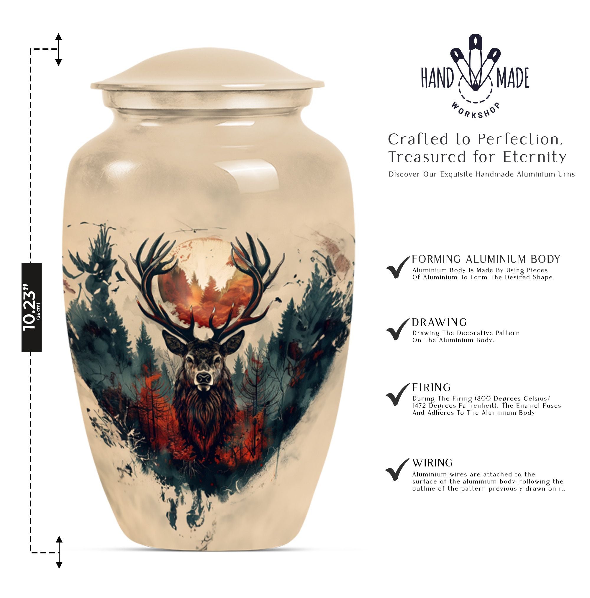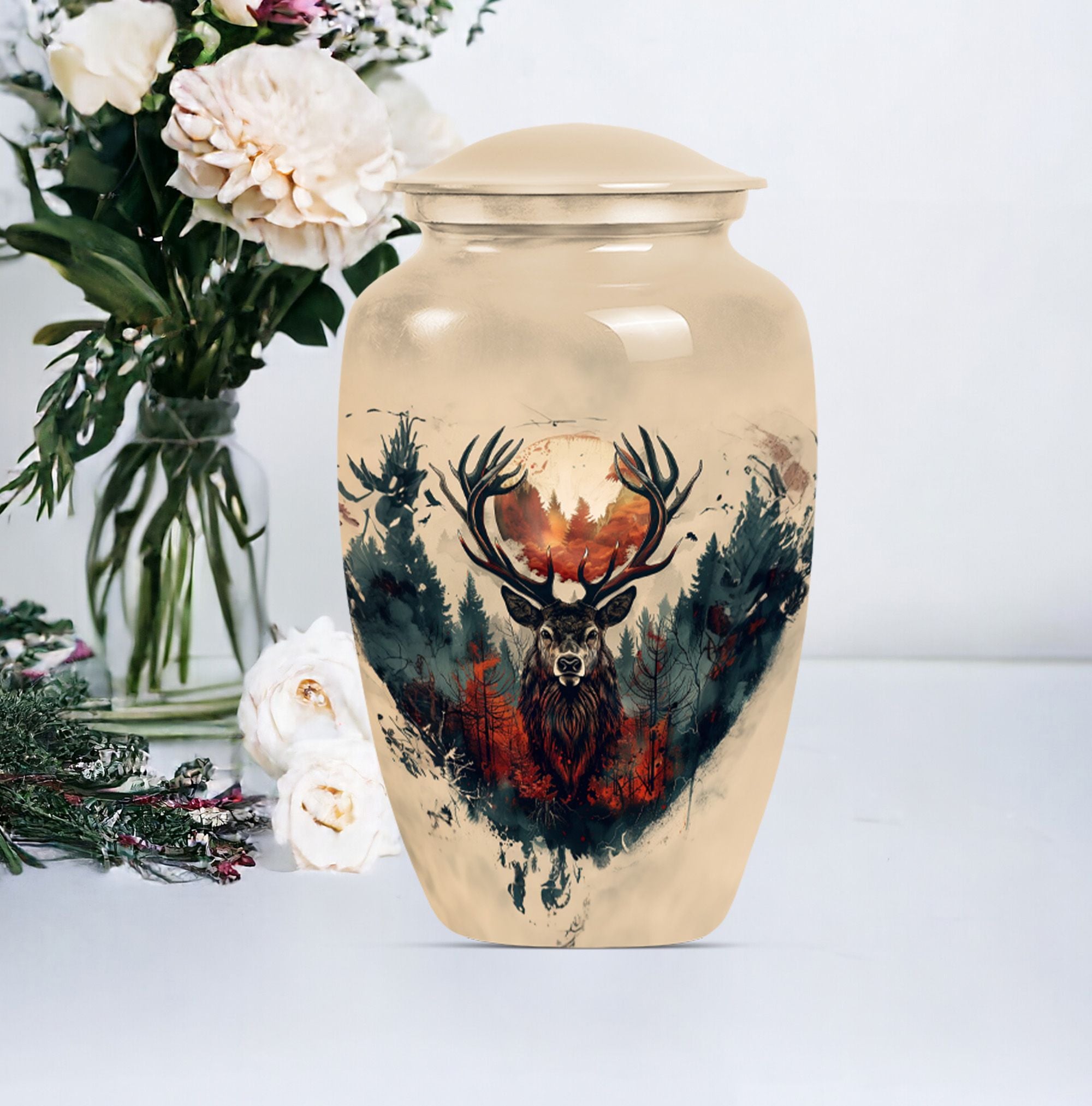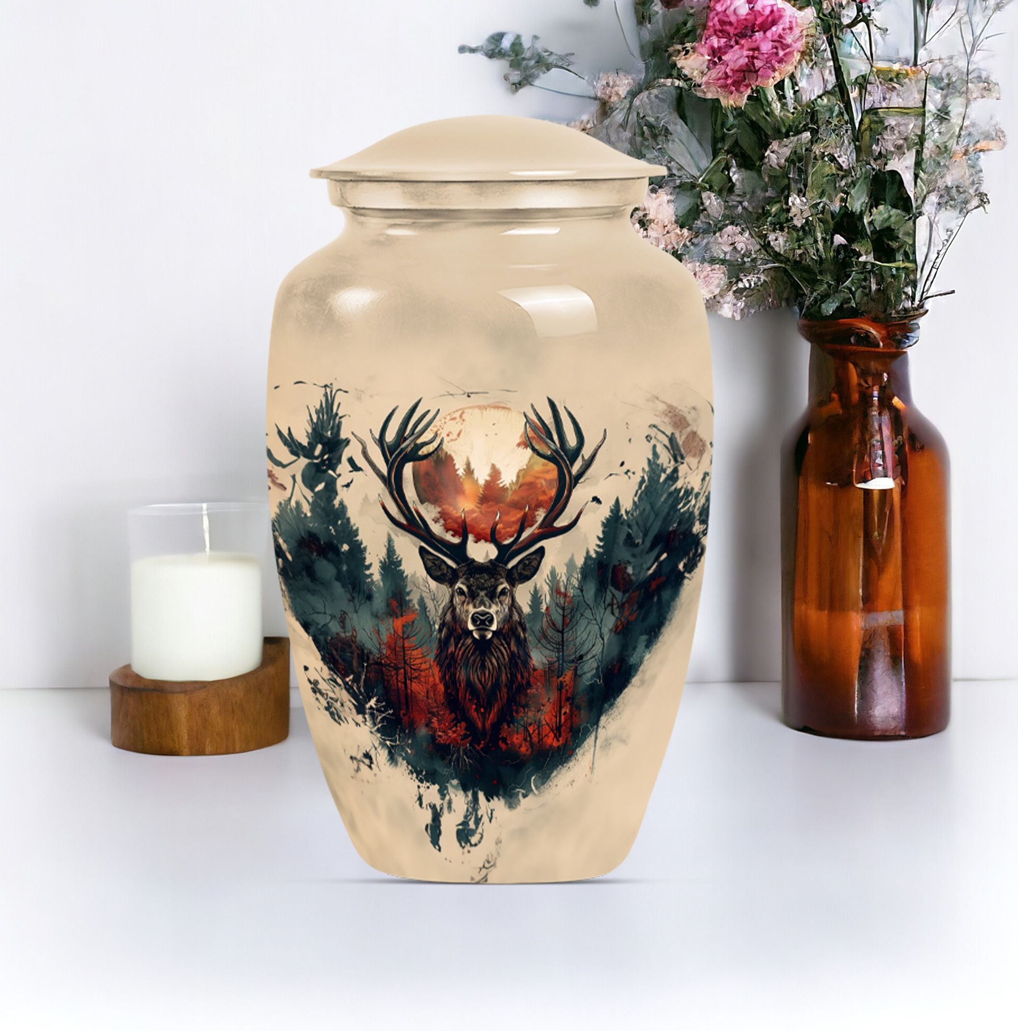Pay your tribute with our exquisite wolf howling-themed, Deer Urn. This large urn model with a striking 10-inch formation, meticulously crafted from high-grade aluminium, is a distinctive selection among funeral urns for burial. It seamlessly blends both durability and aesthetic appeal. Suitable for adults and seniors, the surface of the urn can be adorned with engraved names, personalizing your final goodbye. This urn weighs 3.3 pounds and measures a noble 10 inches in height, capable of holding up to 200 cubic inches of ashes. Packaged with a refined velvet pouch for secure ash containment, it brings an essence of tranquillity during the tough times. Elevate your memorial experience, let our deer urn serve as the final loving resting place. Perfectly aligns with phrases such as 'Cremation urn for dad, urn human adult urns, burial urns for cremation ashes, adult burial cremation urns', the urn is both an epitome of elegance and sincerity.