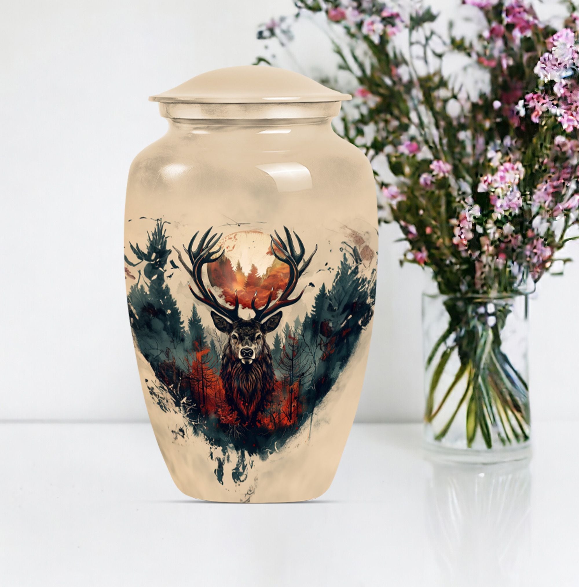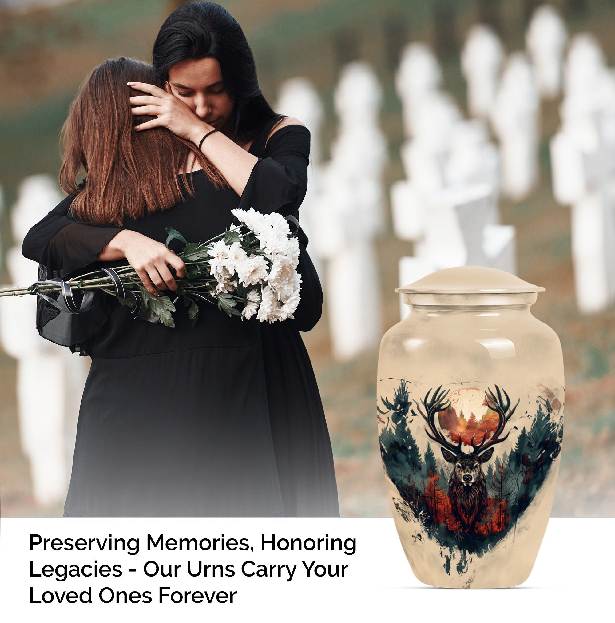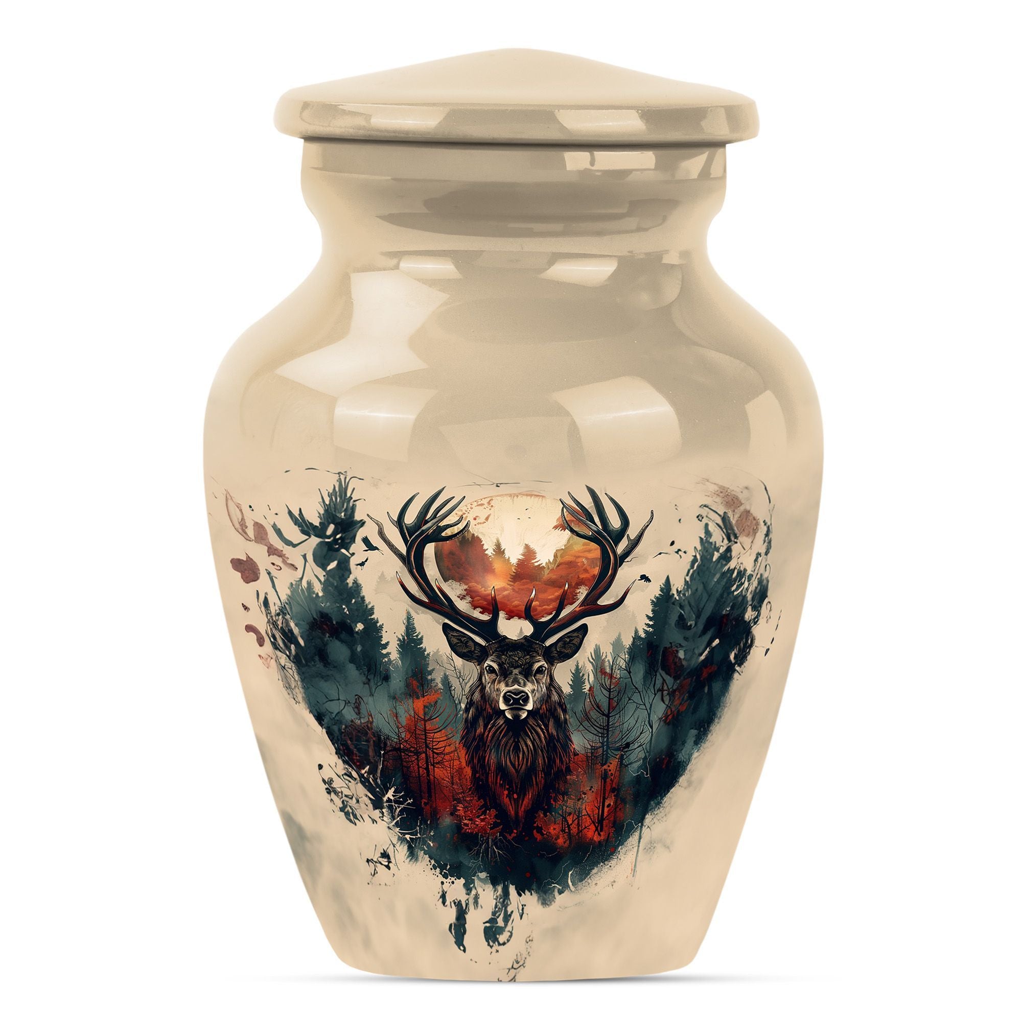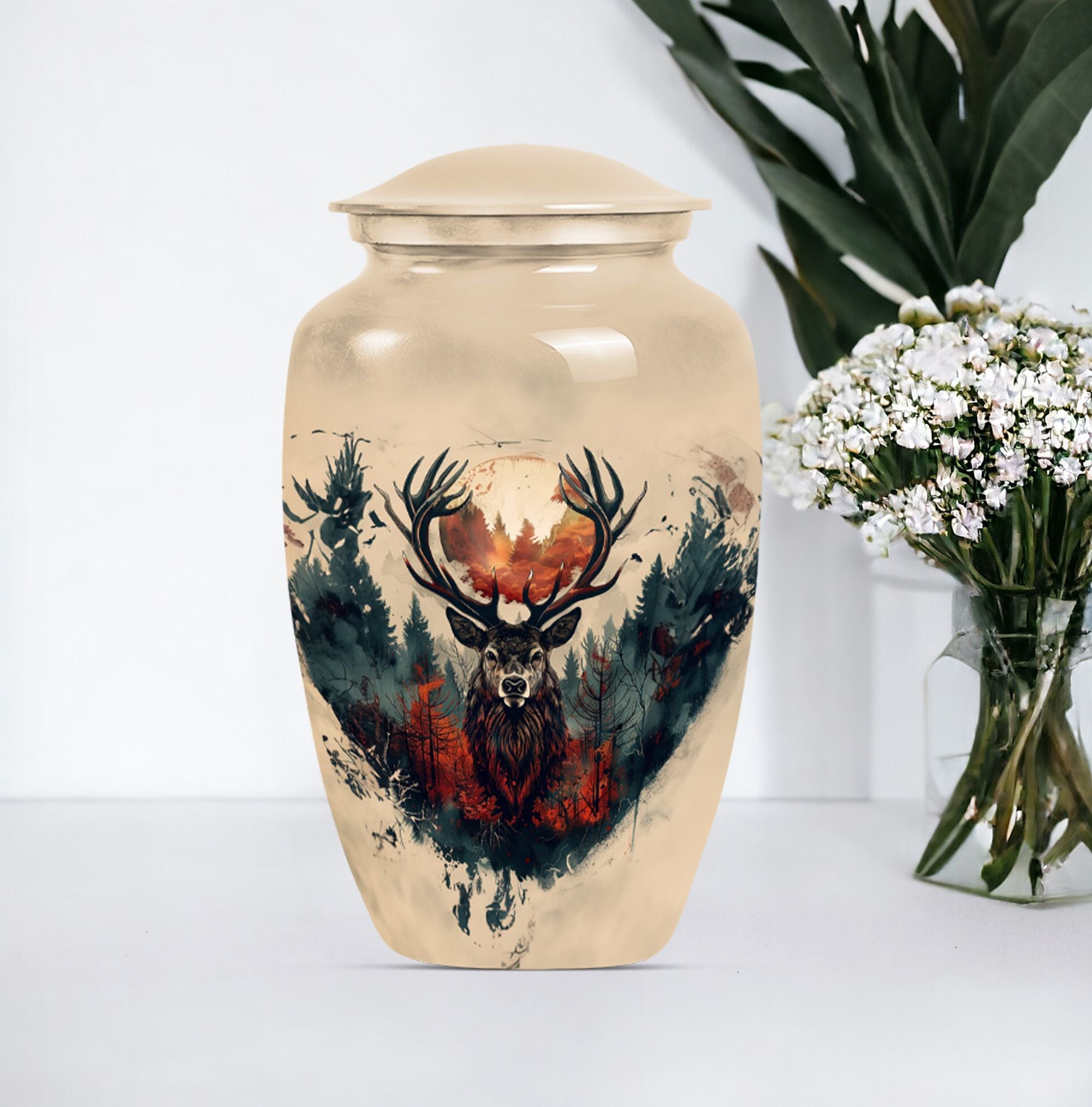 Pay your tribute with our exquisite wolf howling-themed, Deer Urn. This large urn model with a striking 10-inch formation, meticulously crafted from high-grade aluminium, is a distinctive selection among funeral urns for burial. It seamlessly blends both durability and aesthetic appeal. Suitable for adults and seniors, the surface of the urn can be adorned with engraved names, personalizing your final goodbye. This urn weighs 3.3 pounds and measures a noble 10 inches in height, capable of holding up to 200 cubic inches of ashes. Packaged with a refined velvet pouch for secure ash containment, it brings an essence of tranquillity during the tough times. Elevate your memorial experience, let our deer urn serve as the final loving resting place. Perfectly aligns with phrases such as 'Cremation urn for dad, urn human adult urns, burial urns for cremation ashes, adult burial cremation urns', the urn is both an epitome of elegance and sincerity.