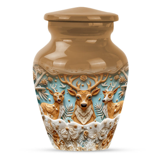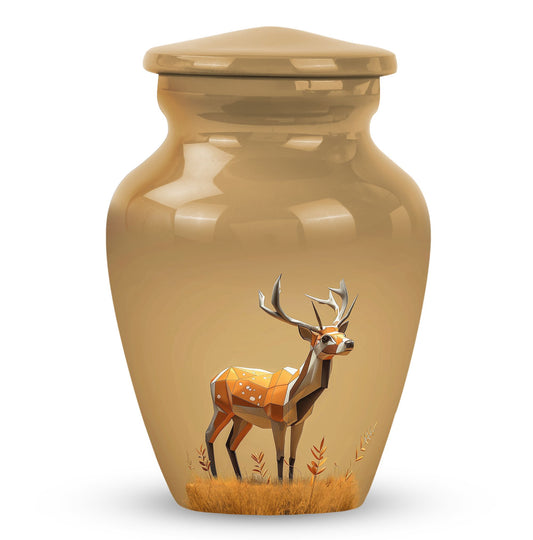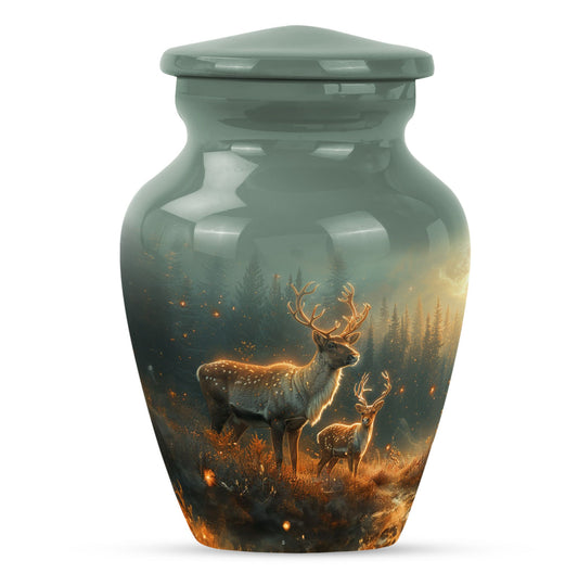 Each urn is meticulously crafted from durable aluminum, ensuring long-lasting protection for your loved one's remains. Adorned with deer artwork—featuring bucks with antlers, forest backgrounds, or sunrise landscapes—these cremation urns symbolize tranquility, renewal, and the timeless cycle of life. Whether your loved one was a hunter, nature enthusiast, or someone drawn to the quiet power of animals, this collection offers a meaningful farewell.