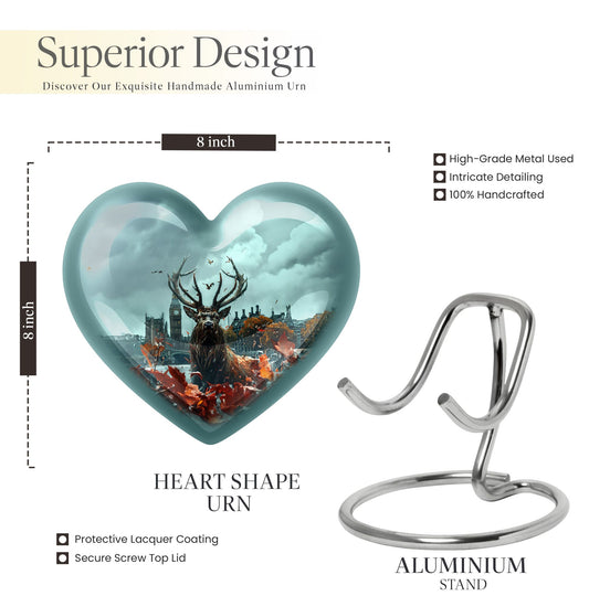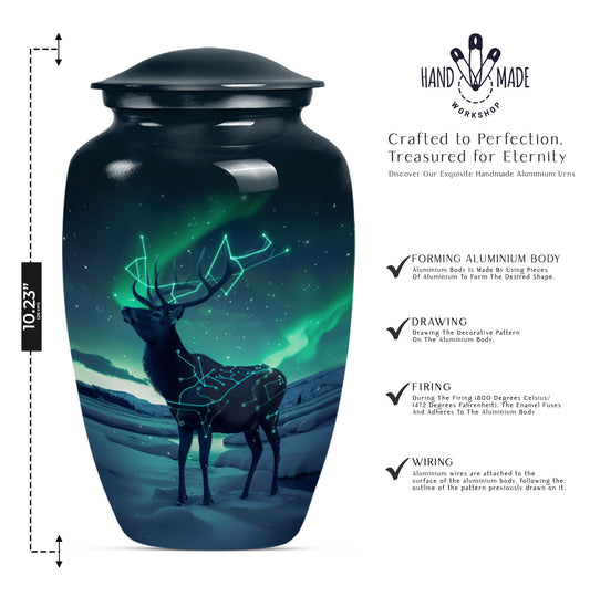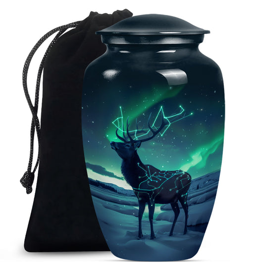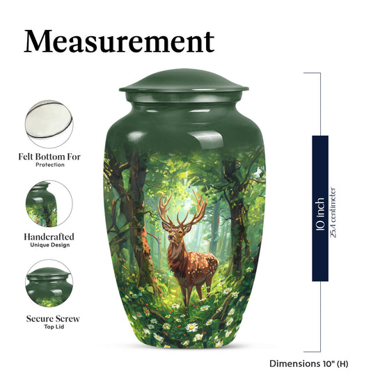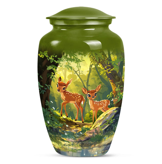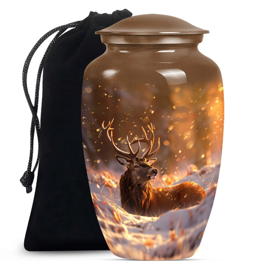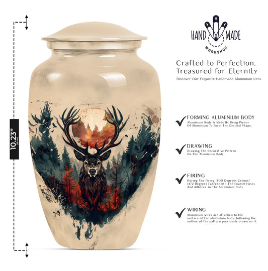 Each urn is meticulously crafted from durable aluminum, ensuring long-lasting protection for your loved one's remains. Adorned with deer artwork—featuring bucks with antlers, forest backgrounds, or sunrise landscapes—these cremation urns symbolize tranquility, renewal, and the timeless cycle of life. Whether your loved one was a hunter, nature enthusiast, or someone drawn to the quiet power of animals, this collection offers a meaningful farewell.