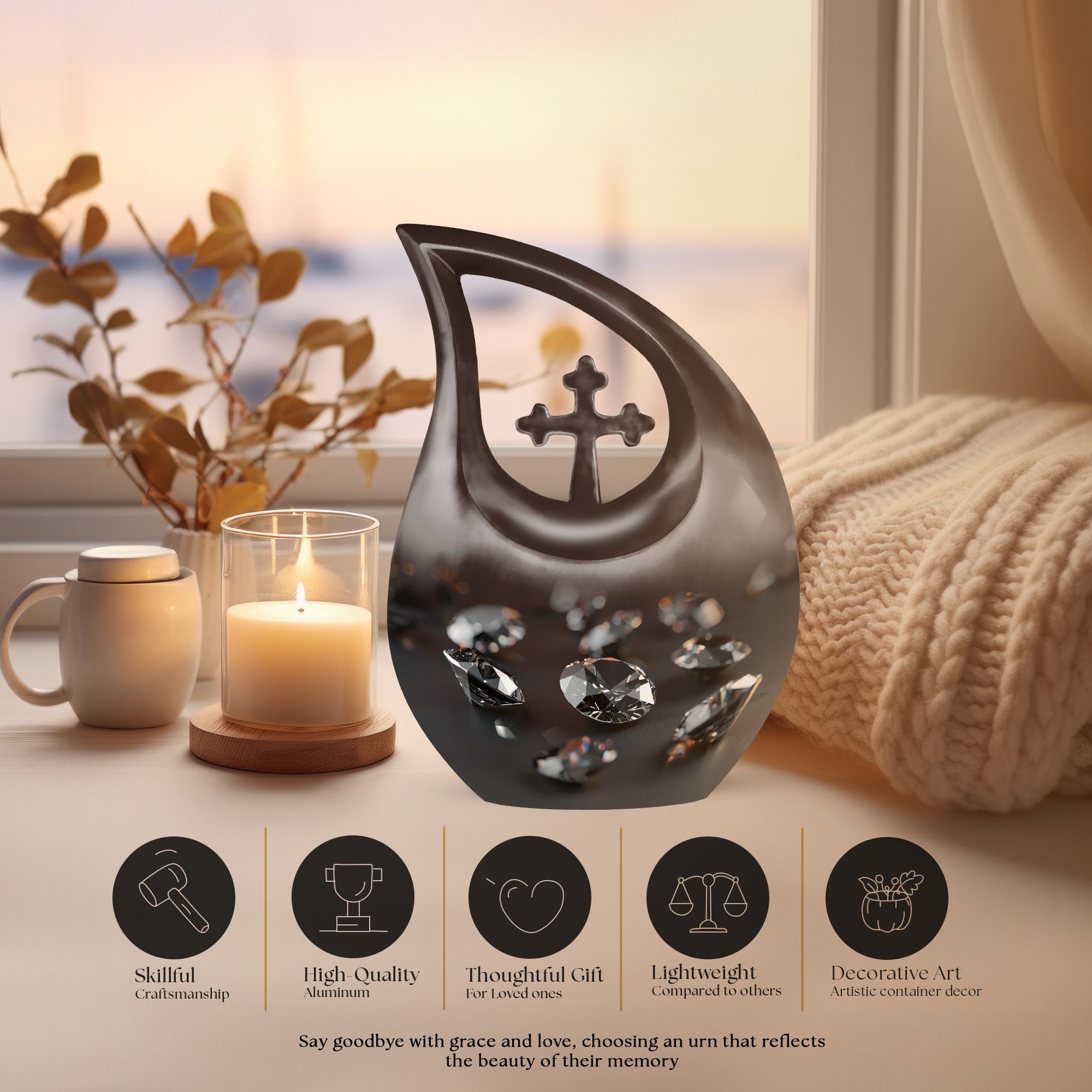 Handmade with care and exceptional craftsmanship, this urn brings together strength, elegance, and functionality. Designed to serve as a mini urn for human ashes adult male, an urn female adult, or a dignified urn human ash adult female, it offers a refined silhouette and secure protection for what matters most. The durable aluminum body, paired with a polished diamond texture, makes it suitable for families seeking large urns for female & male or a cherished keepsake-sized option. Whether chosen as an urn human ash adult male or an urn adult female ashes, it offers timeless beauty and dependable quality.