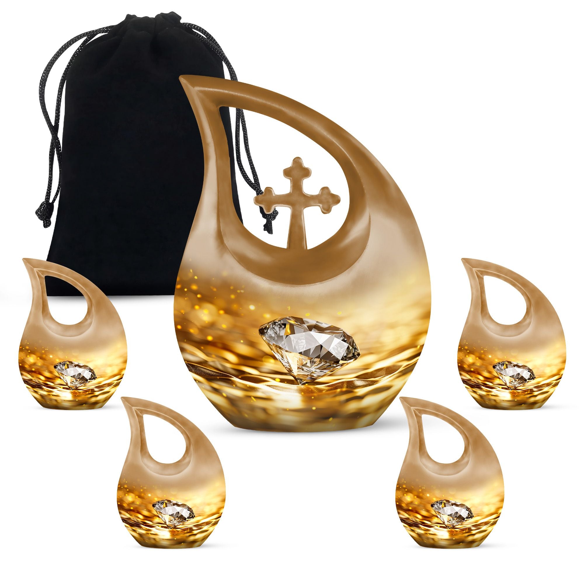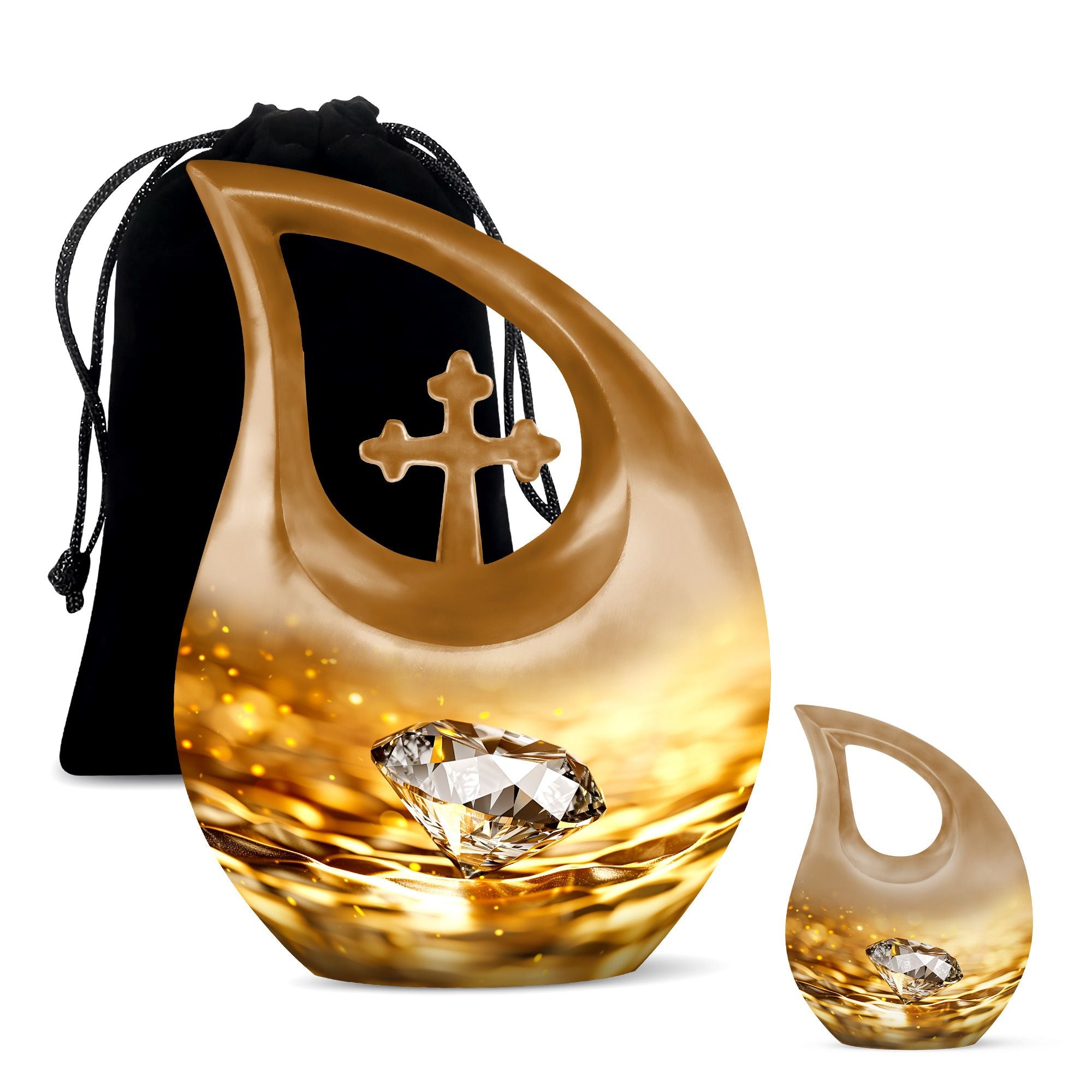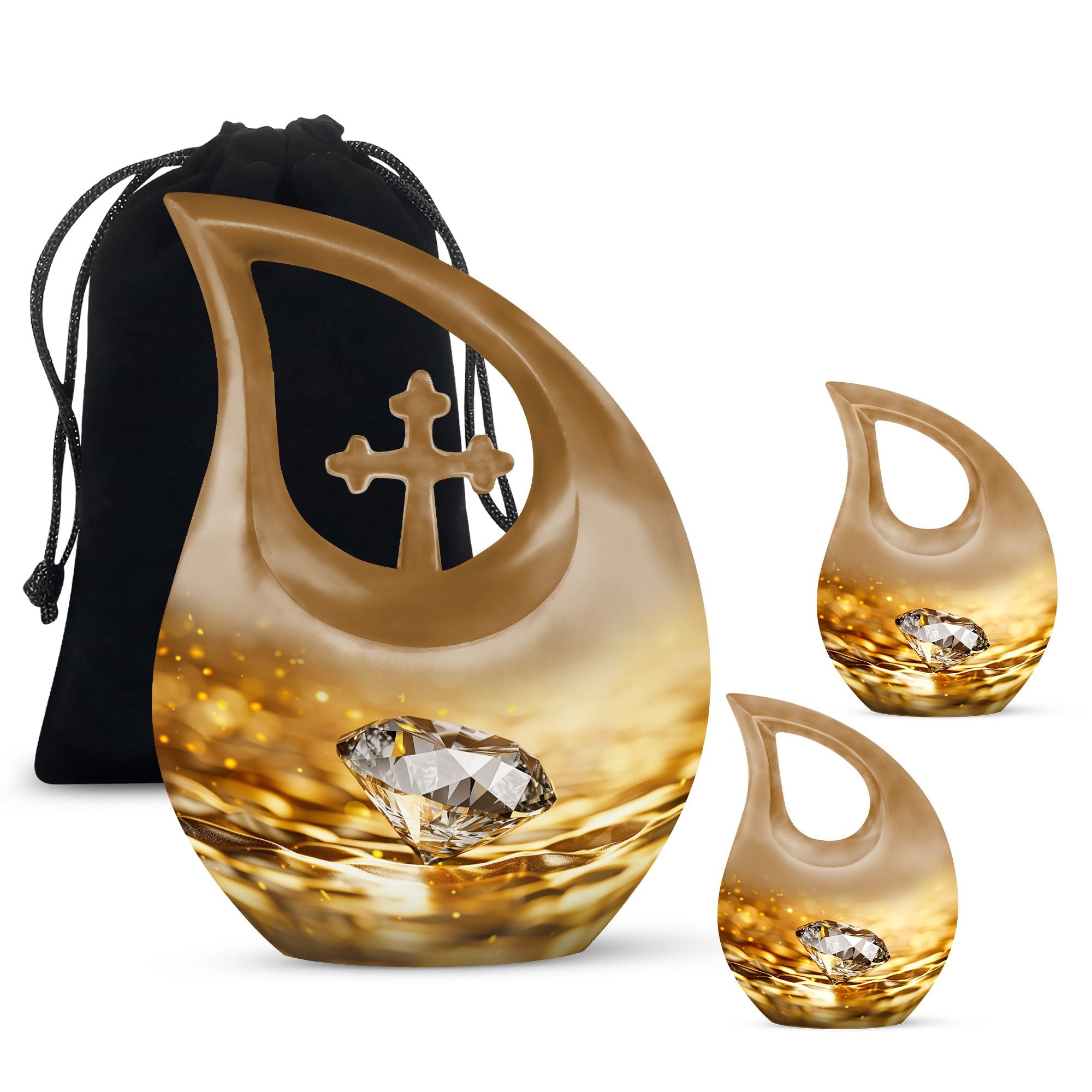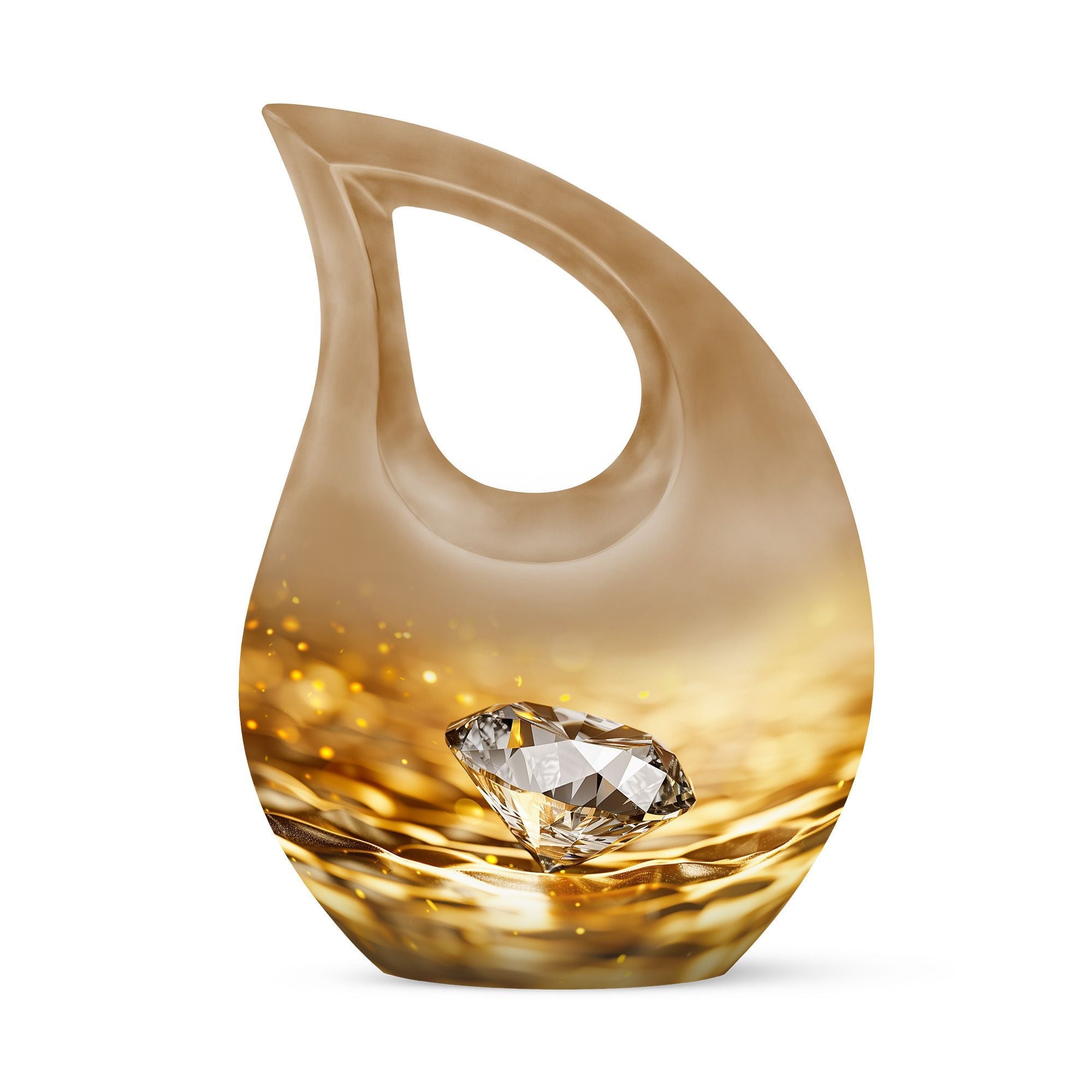 Whether chosen as an urn for women ashes, funeral urn for men, or a cherished family memorial, this golden diamond urn stands as a symbol of everlasting love and remembrance.