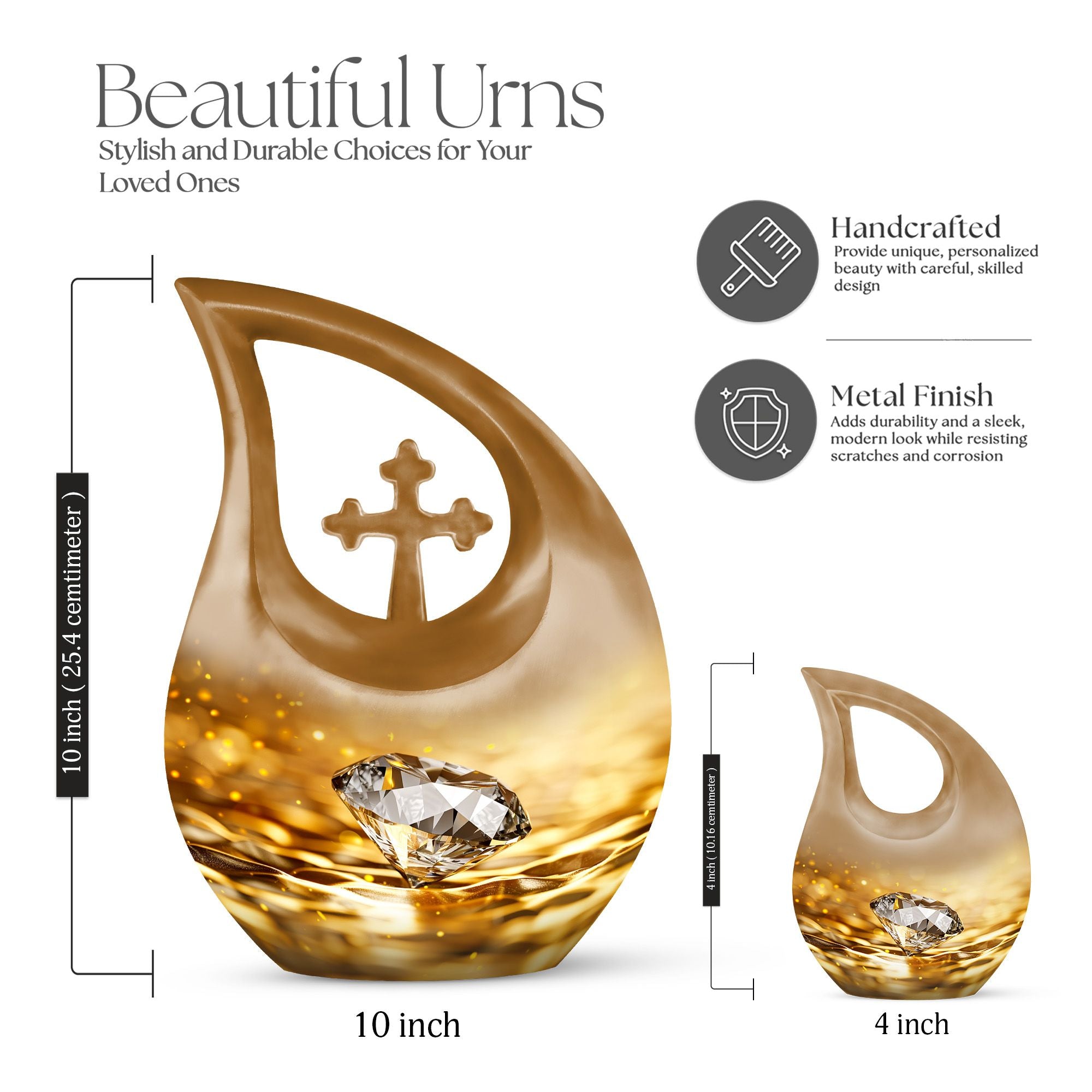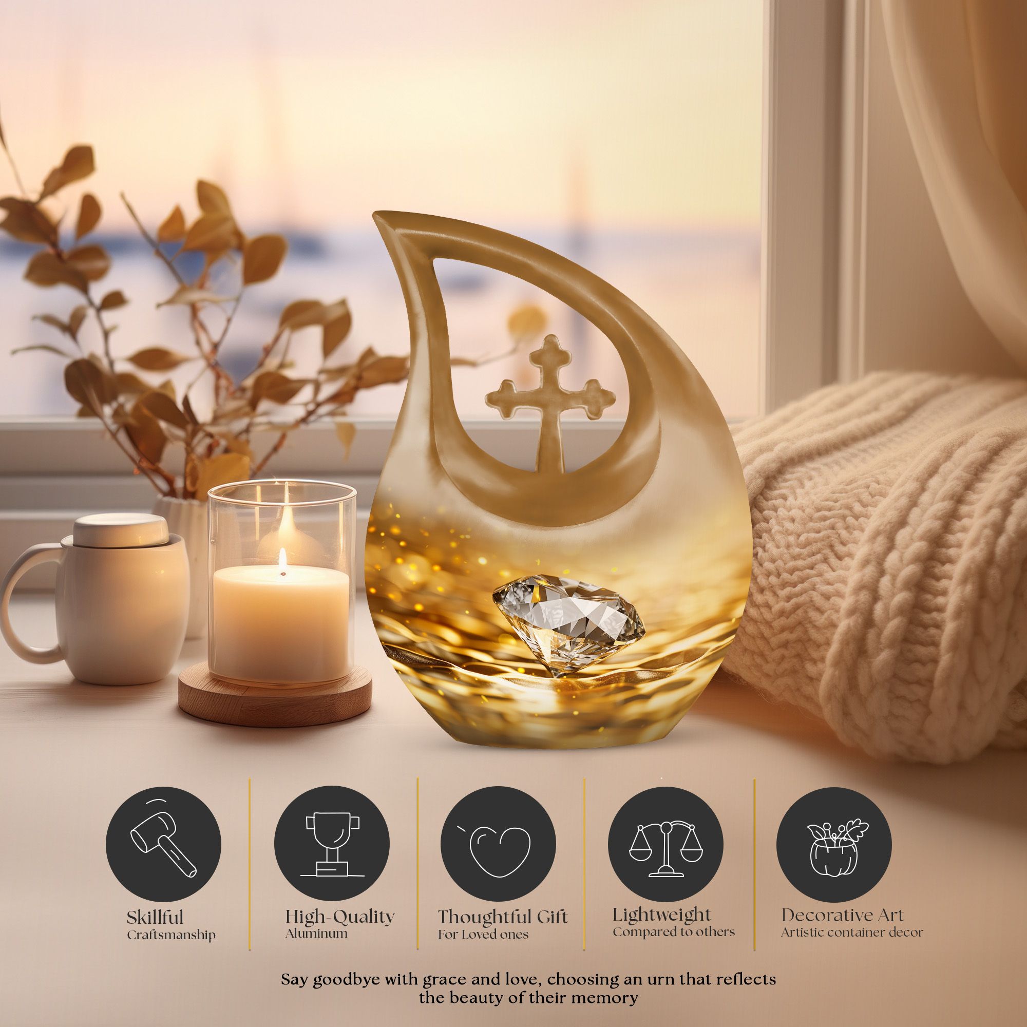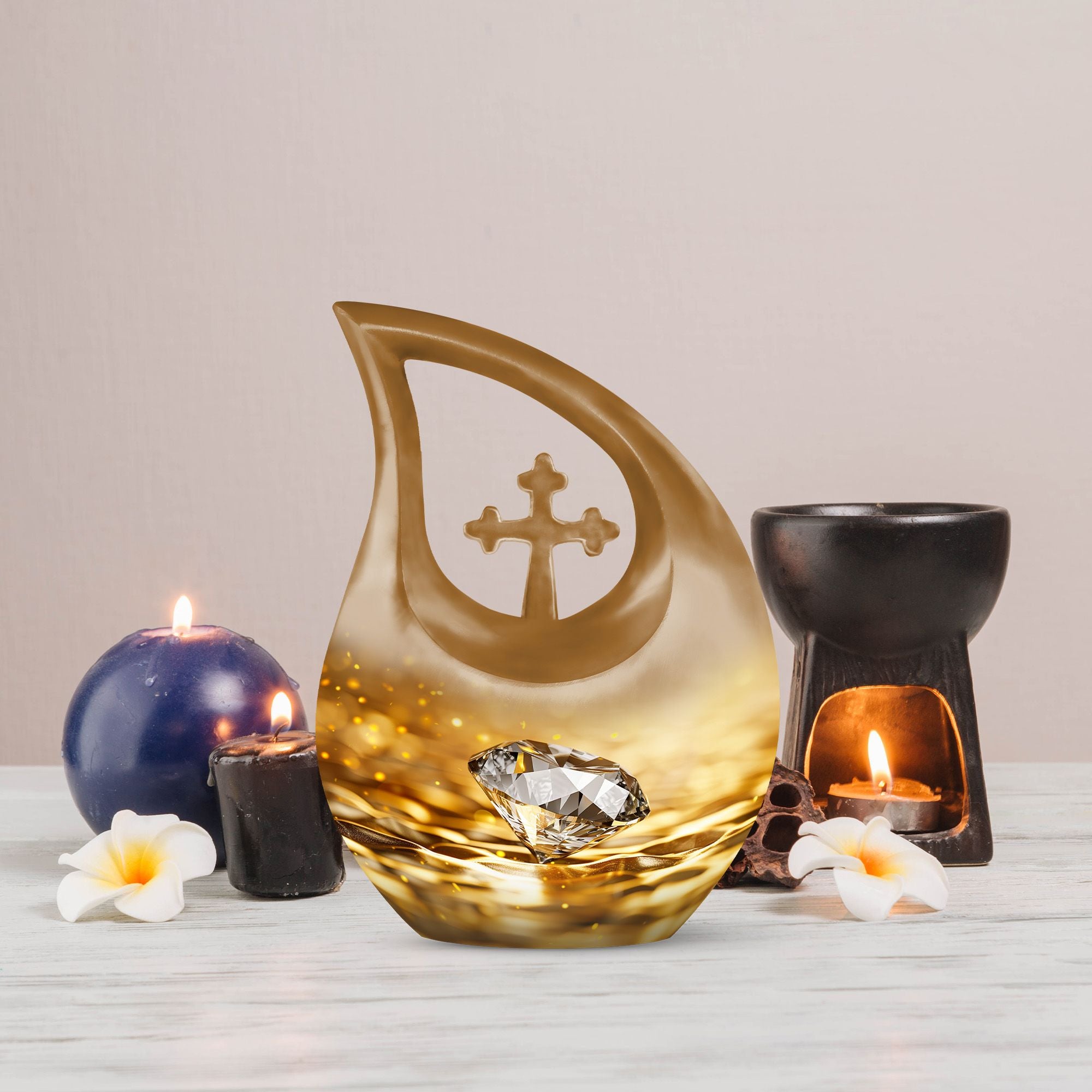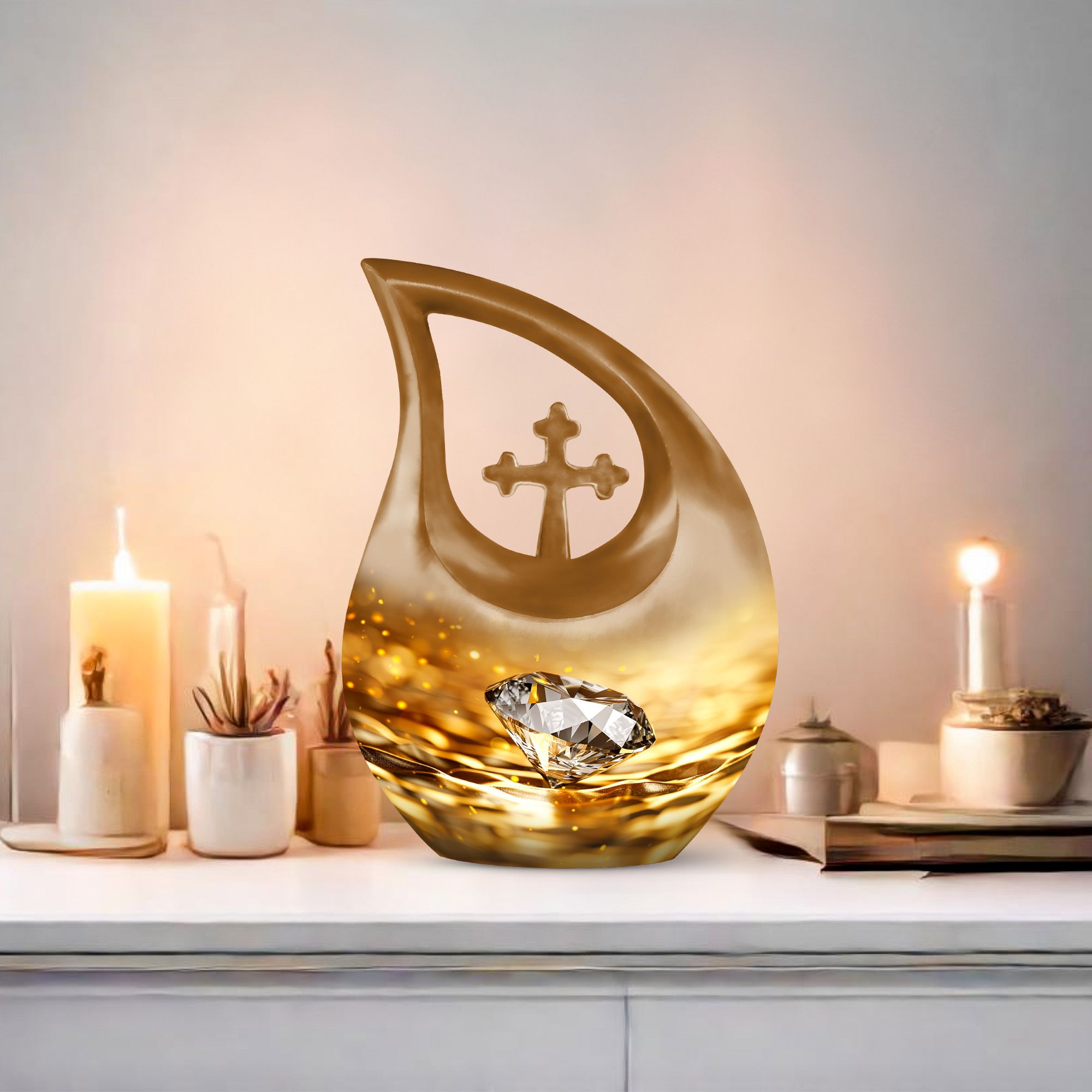 Whether chosen as an urn for women ashes, funeral urn for men, or a cherished family memorial, this golden diamond urn stands as a symbol of everlasting love and remembrance.
