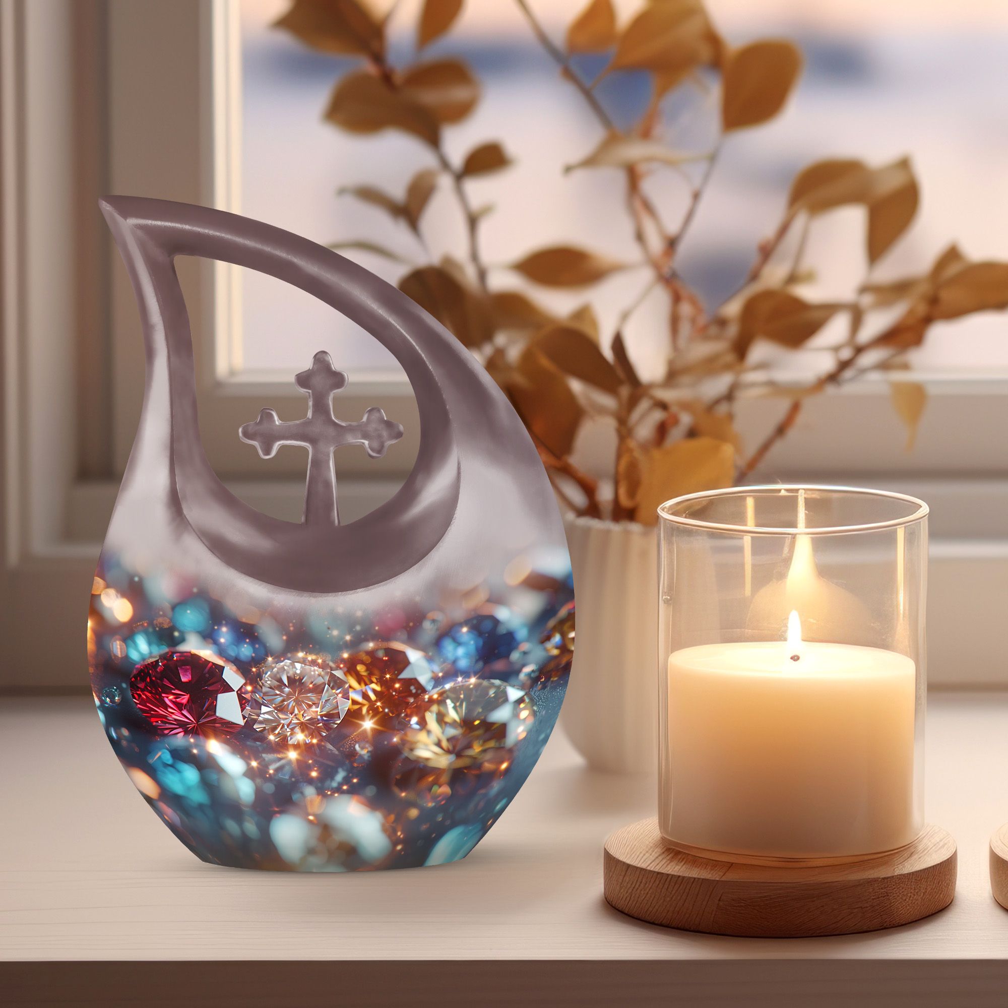 This Diamond Funeral Urn provides a timeless and meaningful way to honor a loved one, offering comfort and dignity for families seeking keepsake urns for human ashes for male and female. Its brilliant diamond-inspired design symbolizes strength, purity, and everlasting love, making it a beautiful tribute for a cherished family member.