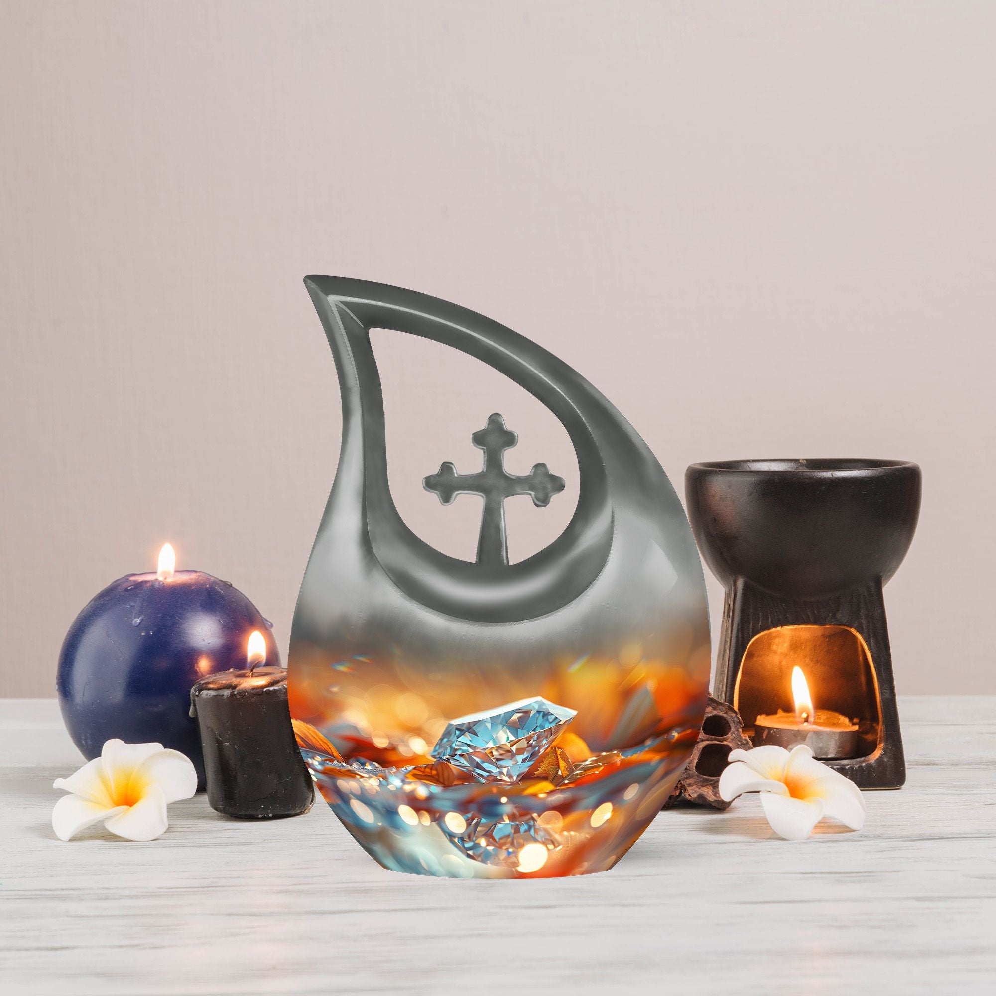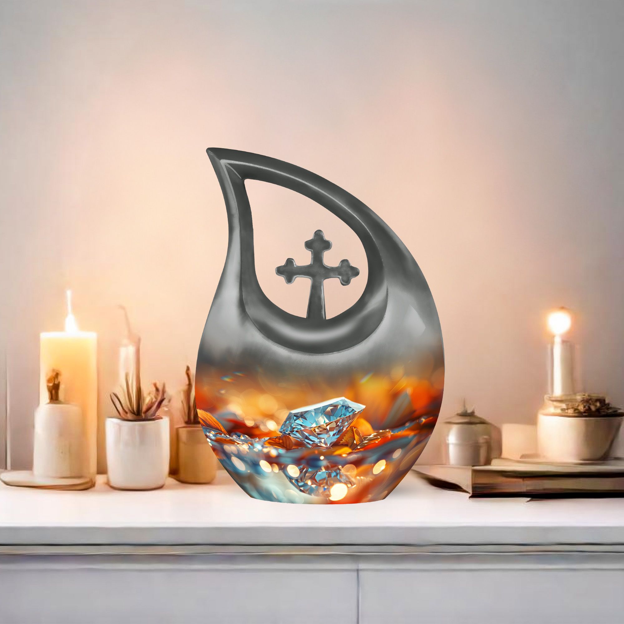 Crafted to honor memories with grace and love, this Diamond Memorial Urn offers a heartfelt resting place for those seeking small burial urns for adult human ashes or meaningful cremation keepsakes for ashes. Its shimmering diamond pattern symbolizes everlasting connection, making it a comforting choice for families remembering someone dear.