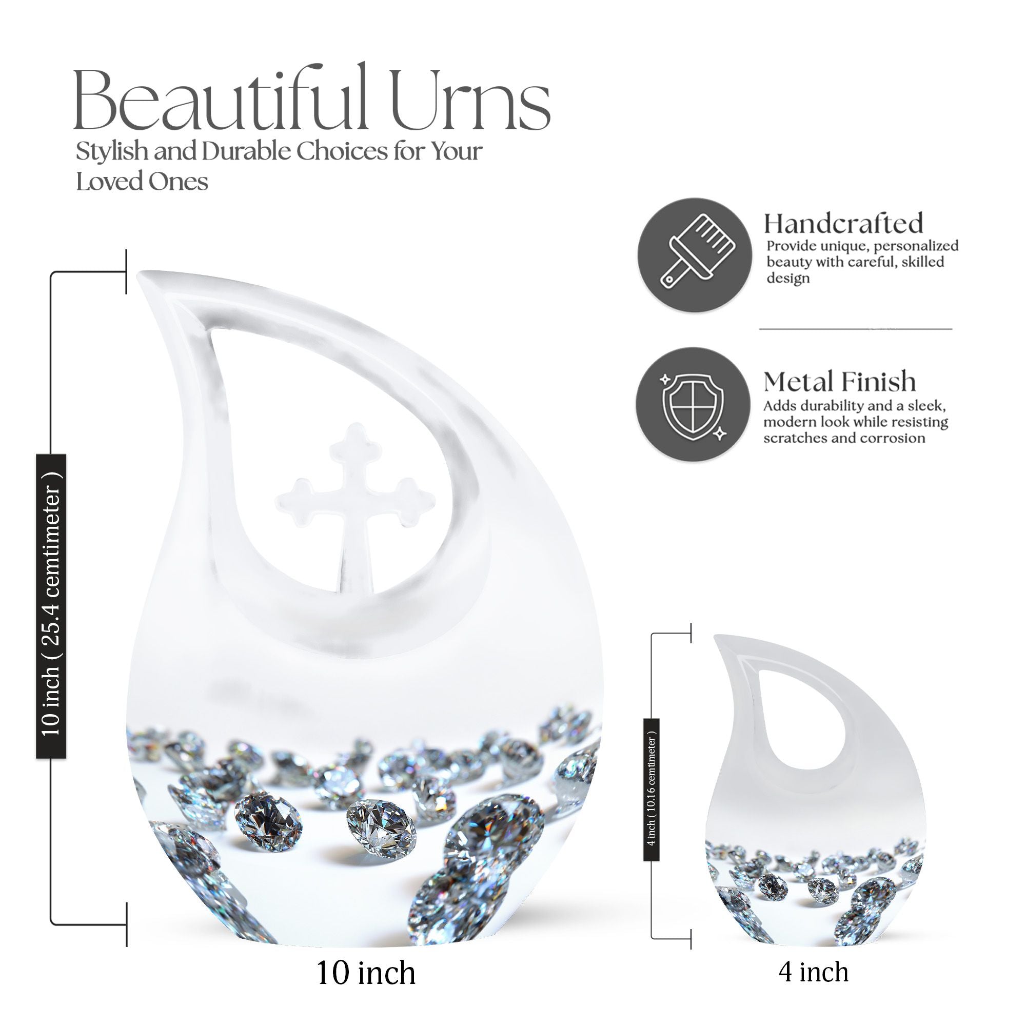 Crafted from durable aluminium, this urn features a smooth white finish and secure construction, making it an ideal choice for an adult funeral urn or families needing dependable adult funeral urns for display or burial. It pairs beautifully with mini keepsake funeral urn options for sharing ashes and supports traditions involving funeral keepsake urns. For those seeking unique urns for human ashes or unique urns for ashes with distinctive design and elegance, this piece offers meaningful artistry. Its strength and weather-resistant build make it suitable for an urn for burial in ground, burial urns for ground, urns for burial in ground, or cremation urns for burial.