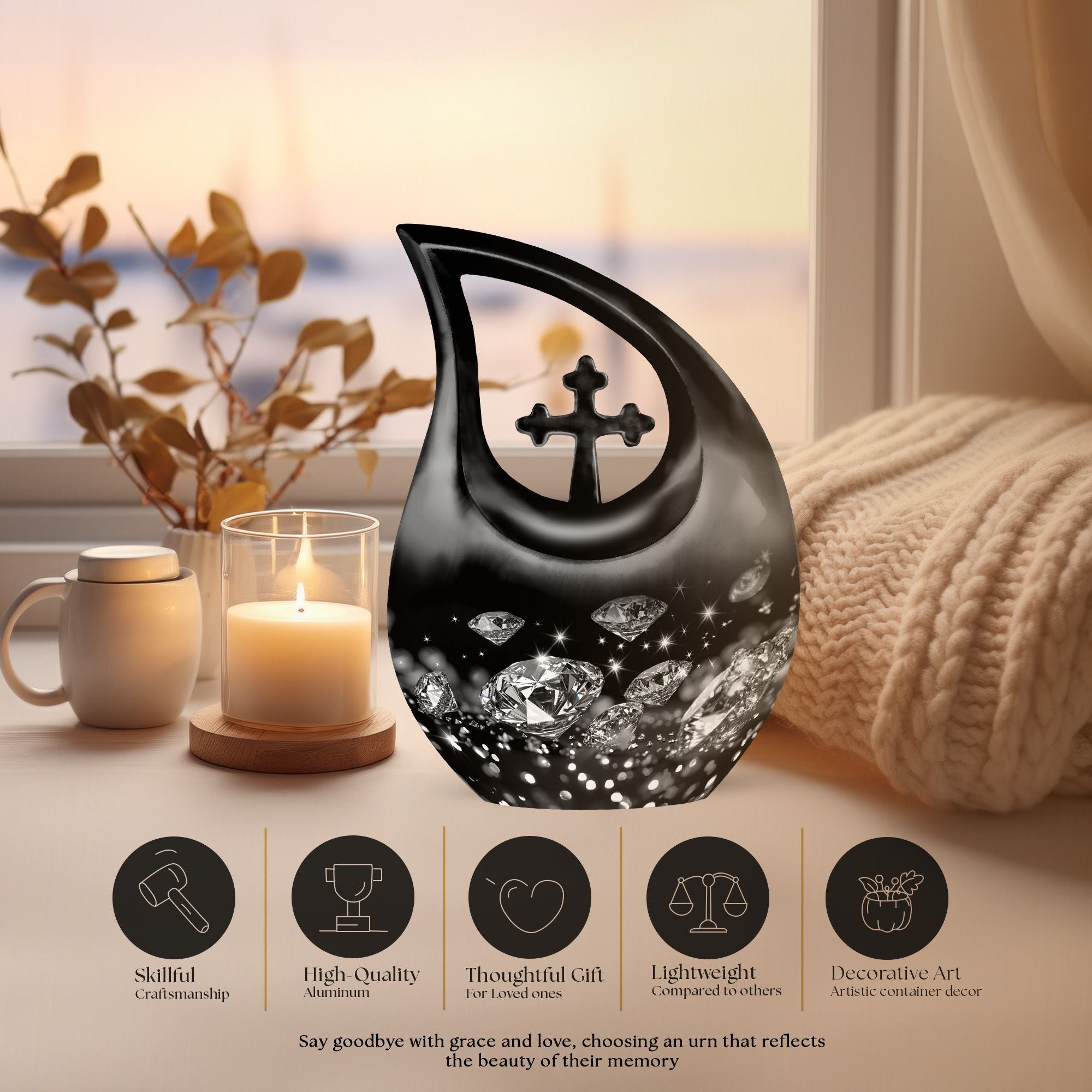 This Diamond Memorial Urn offers a heartfelt and elegant way to honor a loved one’s memory. Designed as a personalized keepsake urn for human ashes, it brings comfort and meaning to families who wish to keep a small, symbolic portion of their loved one close. Perfect for keepsake urns, mini urns for human ashes, or sharing ashes among family members, it blends emotional warmth with refined beauty.