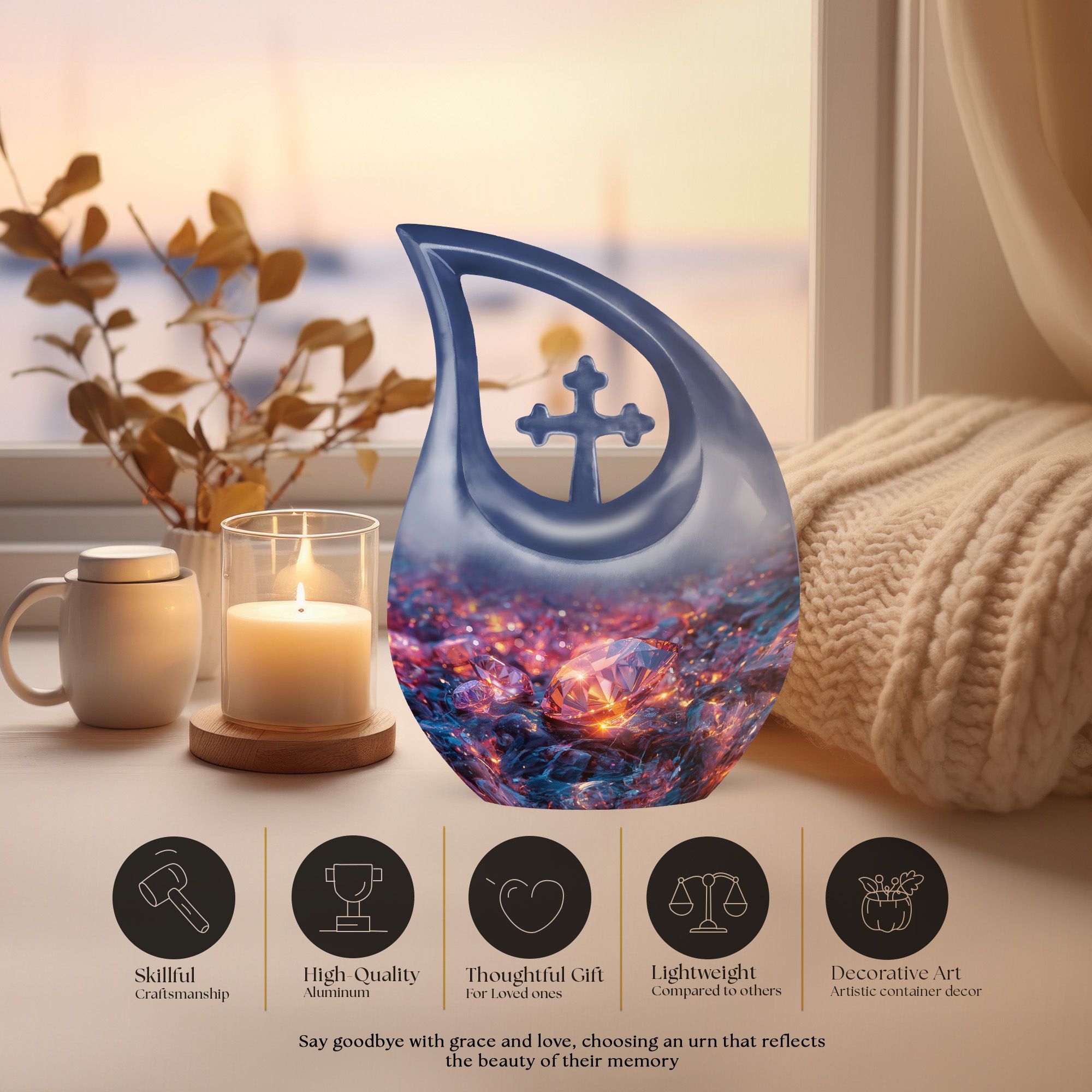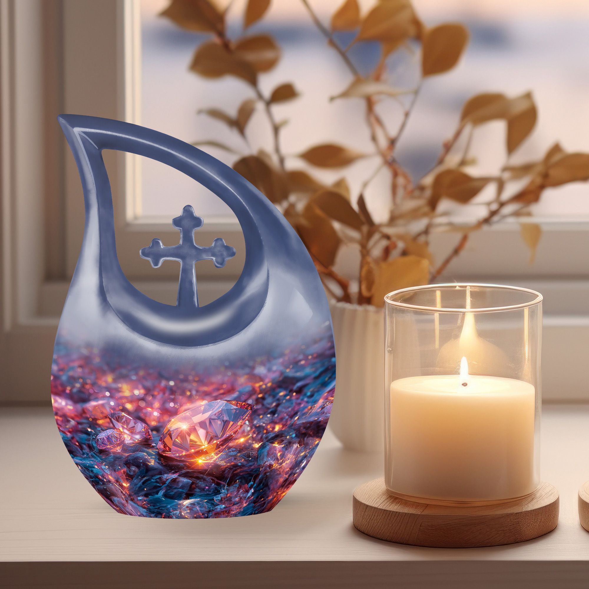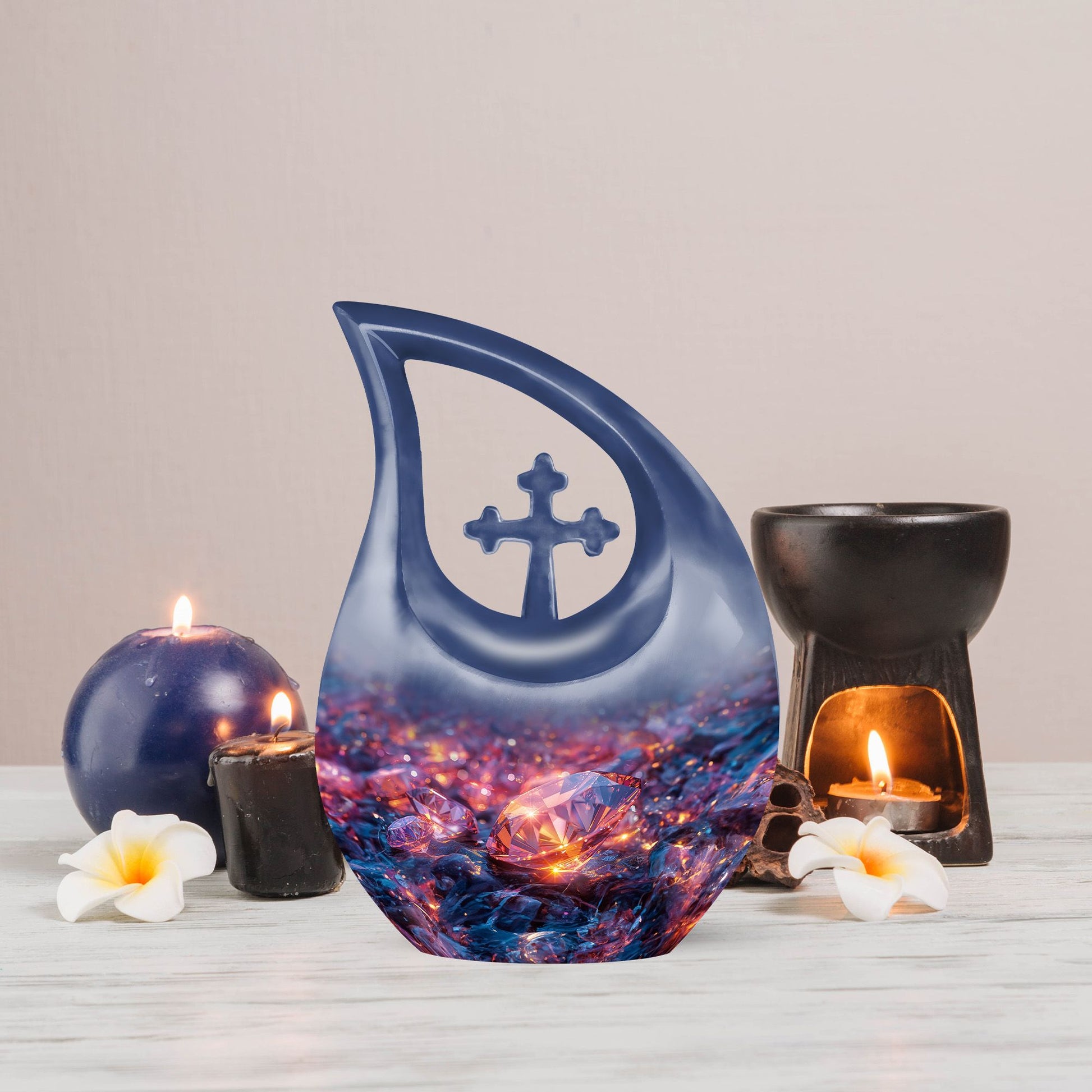 This versatile piece serves as a comforting memorial for families needing urns for human ashes large adult, adult large urns, or a unisex style that honors any cherished soul. Its diamond motif symbolizes enduring love, strength, and eternal remembrance.