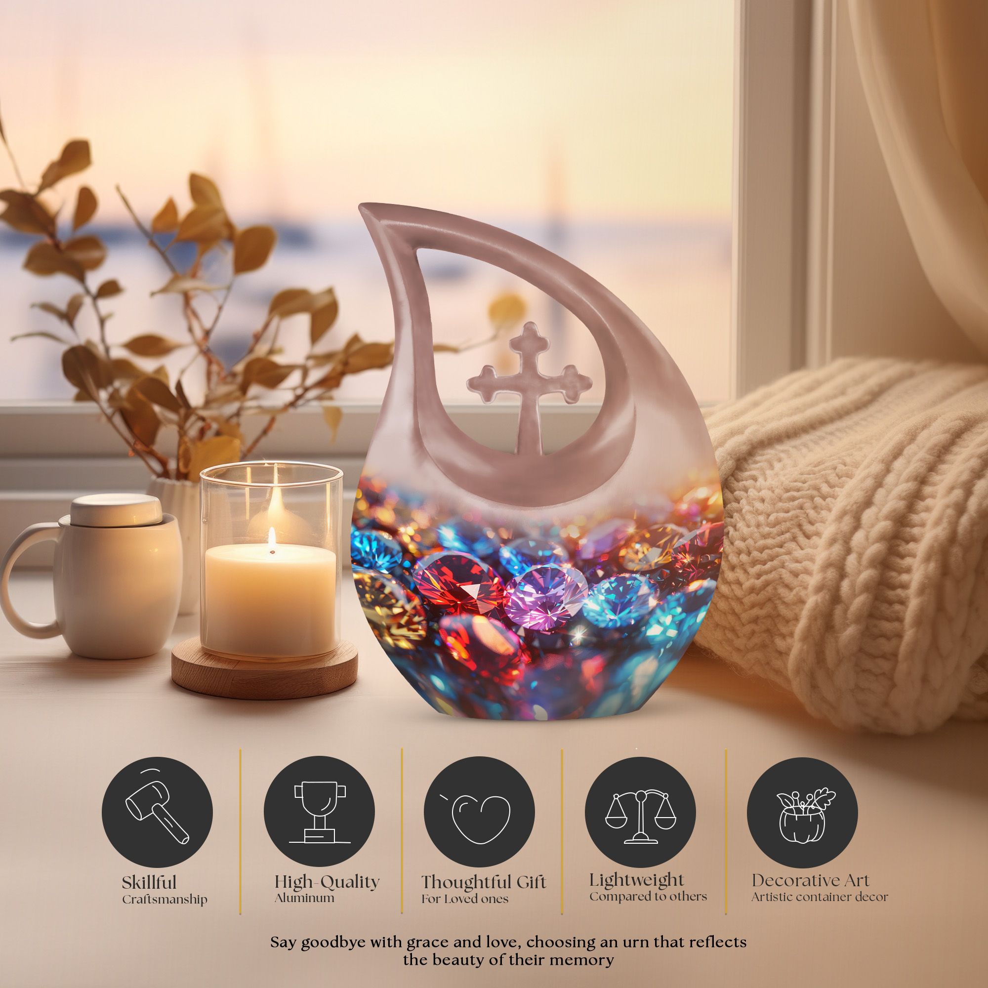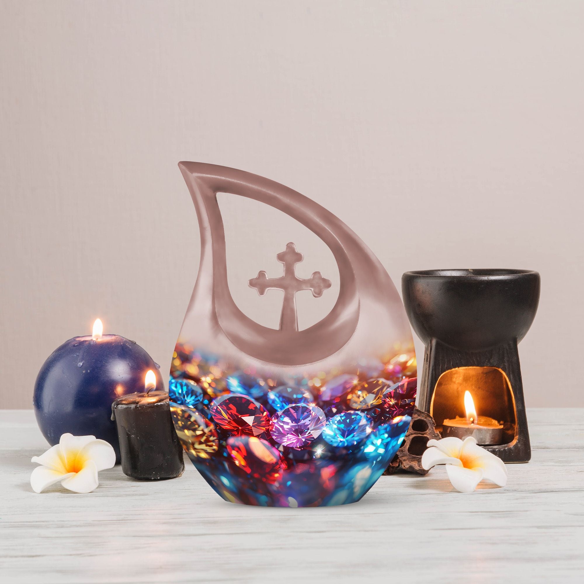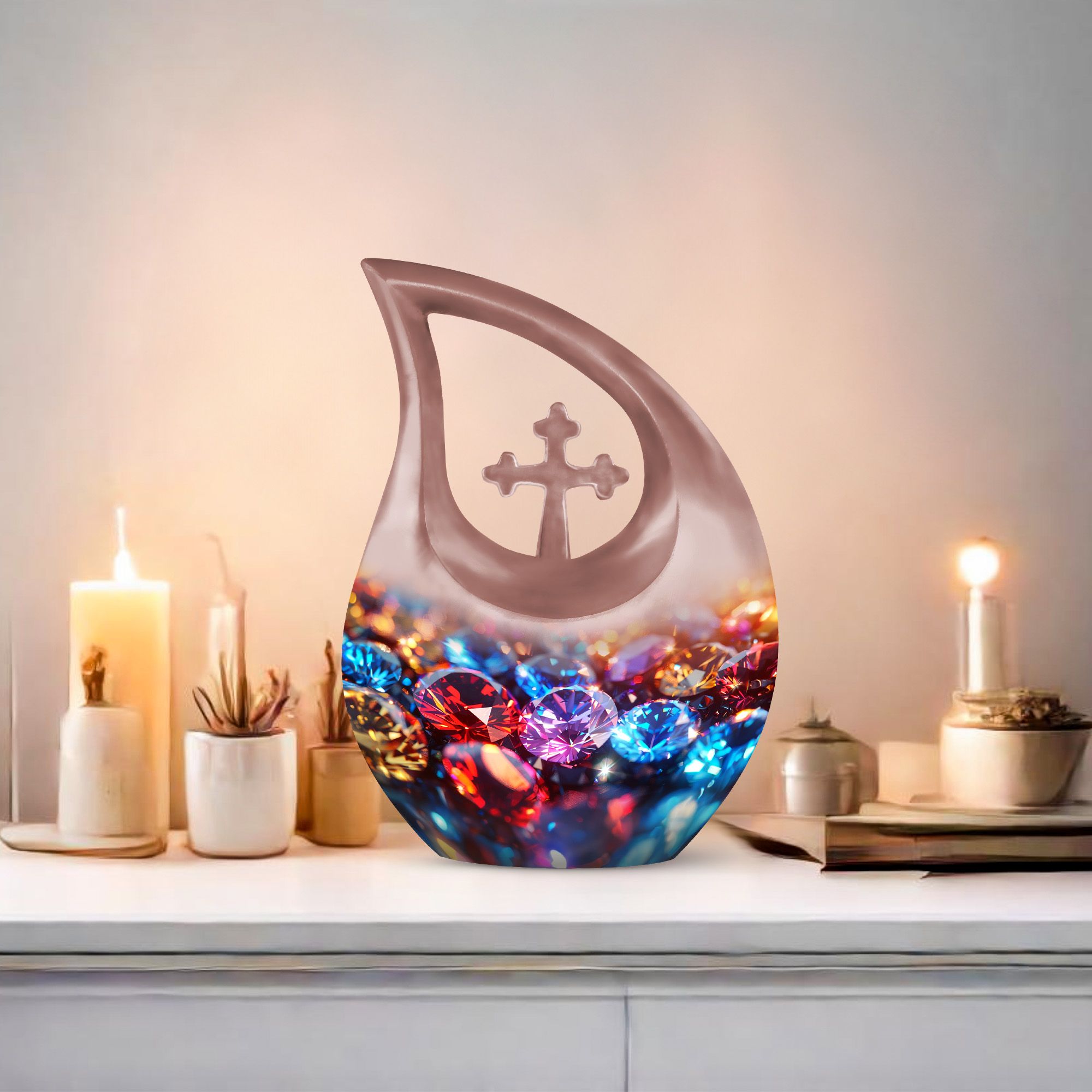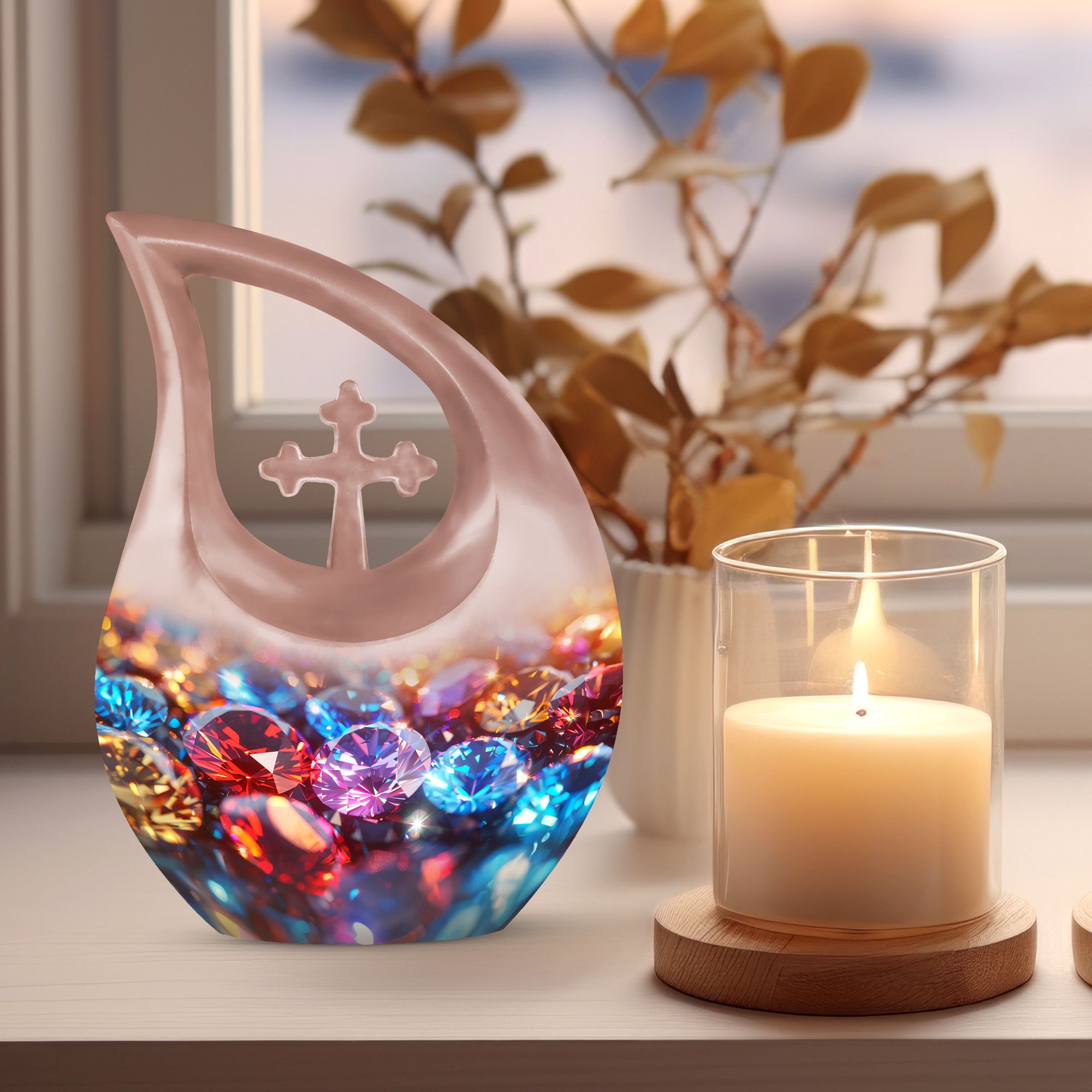 This Colorful Diamond Memorial Urn offers a vibrant and heartfelt way to honor a cherished life, making it a meaningful choice for families seeking large urns for human ashes adult. Designed with a brilliant diamond-pattern finish, it symbolizes strength, love, and the bright spirit of the one remembered—ideal for a large urn for ashes adult male or a large urn for ashes for women.