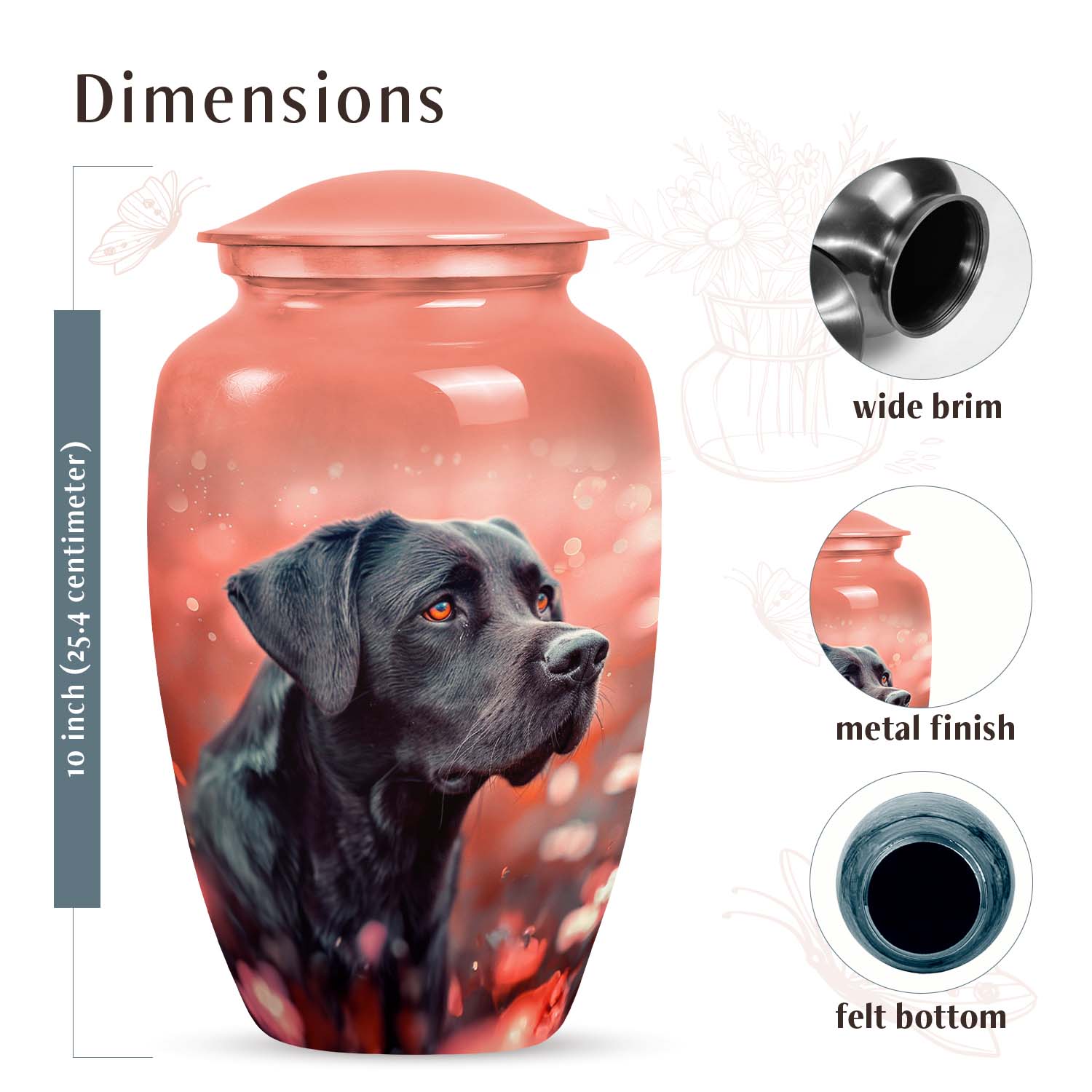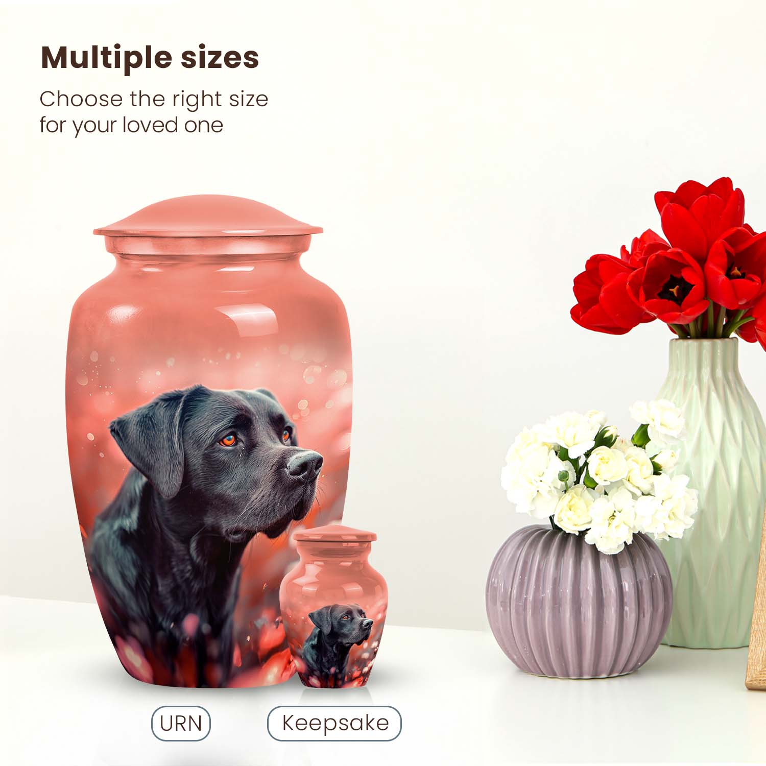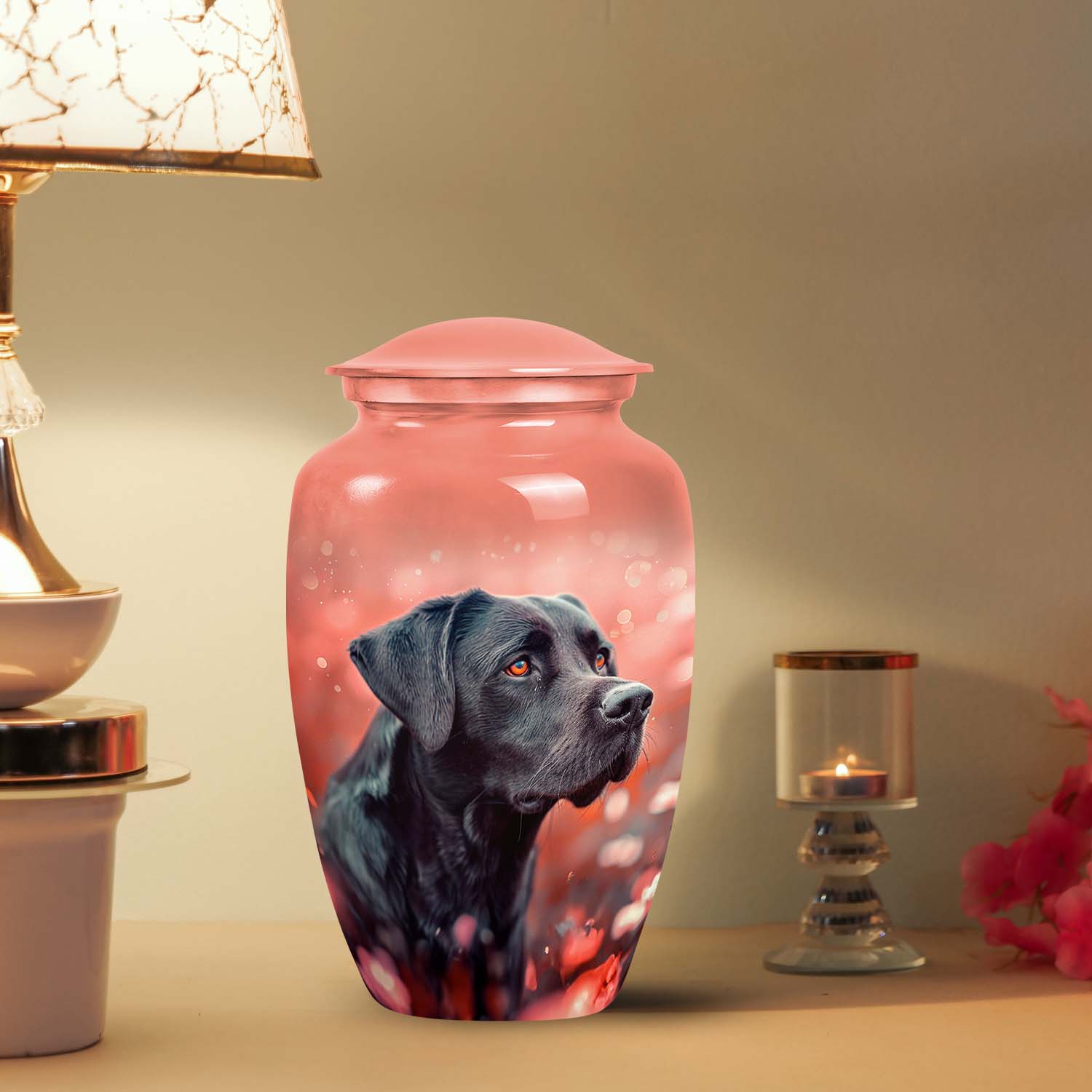 The love of a Labrador is unconditional — gentle, loyal, and everlasting. The Black Labrador Cremation Urn – Coral Pink Pet Memorial Urn is crafted to celebrate that unbreakable bond with elegance and warmth. Designed as a custom pet urn, it serves as a lasting symbol of affection and devotion, offering comfort and serenity during remembrance.