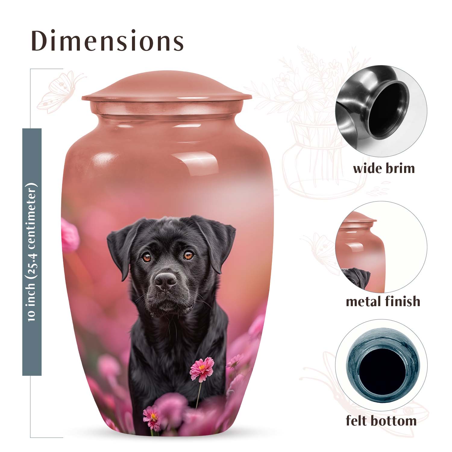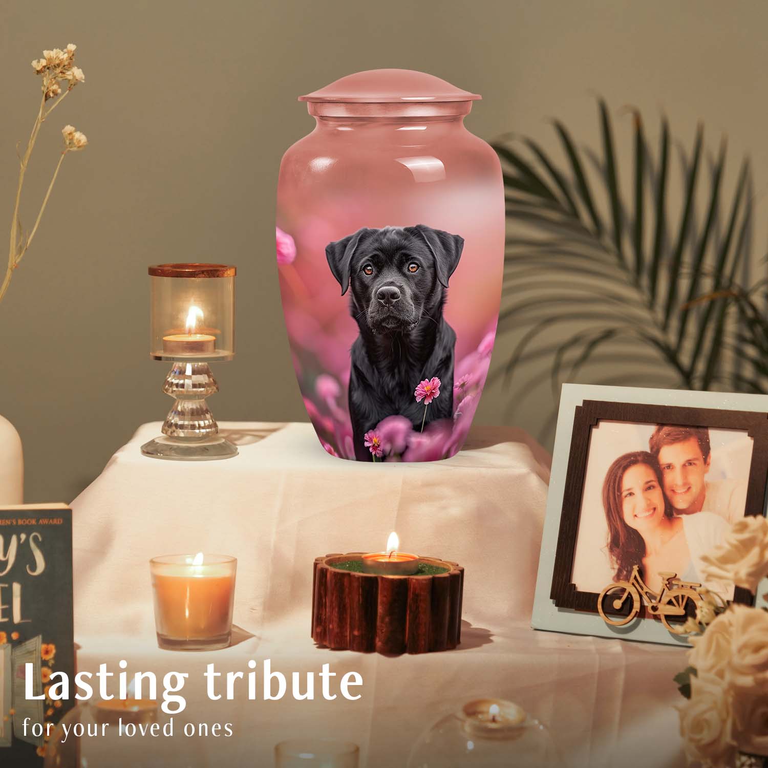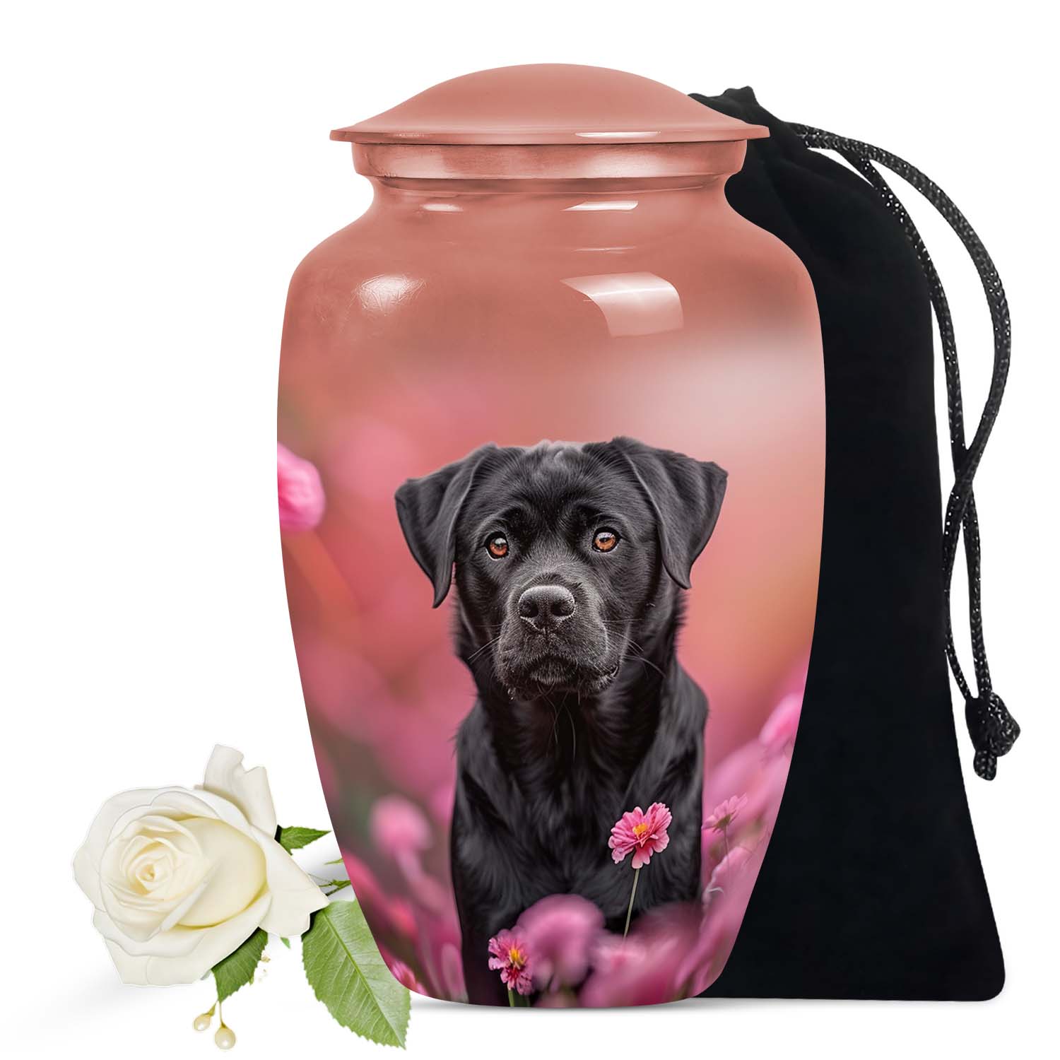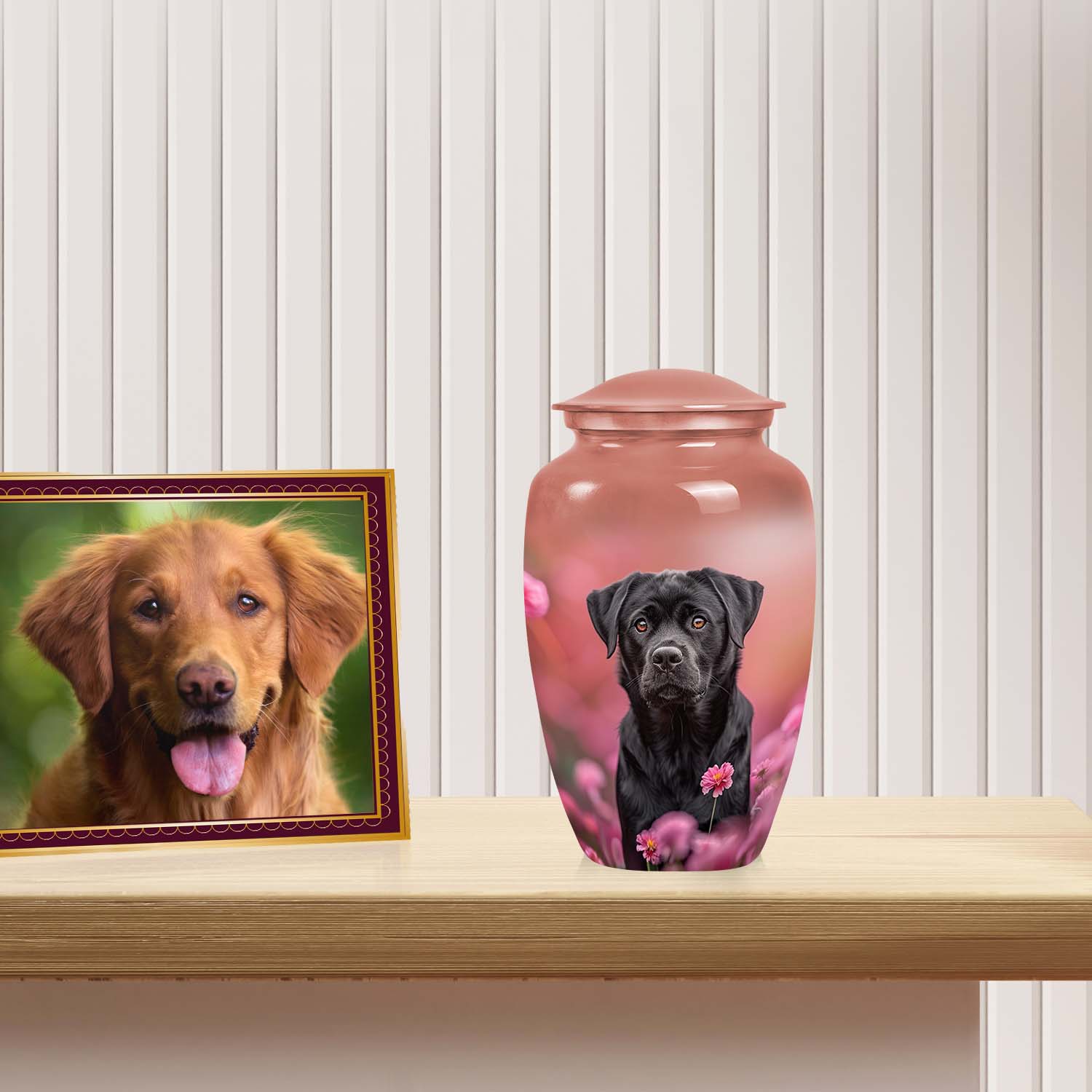 Black Labrador Dog Urn for Ashes – Pink Floral Pet Memorial Keepsake Urn