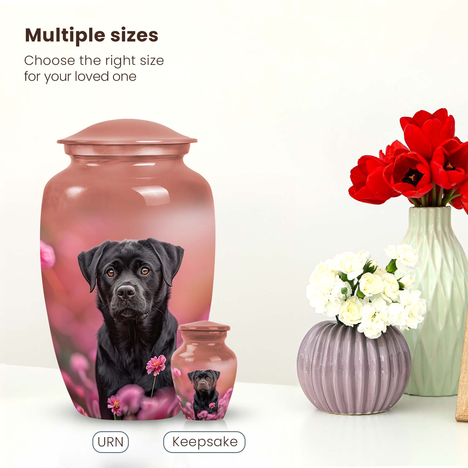 Your Labrador’s love lives on in every memory you hold close. This Black Labrador Dog Urn for Ashes – Pink Floral Pet Memorial Keepsake Urn was created to honor that enduring bond. With its graceful design and heartfelt details, it stands among the best pet urns for expressing love, remembrance, and peace.
