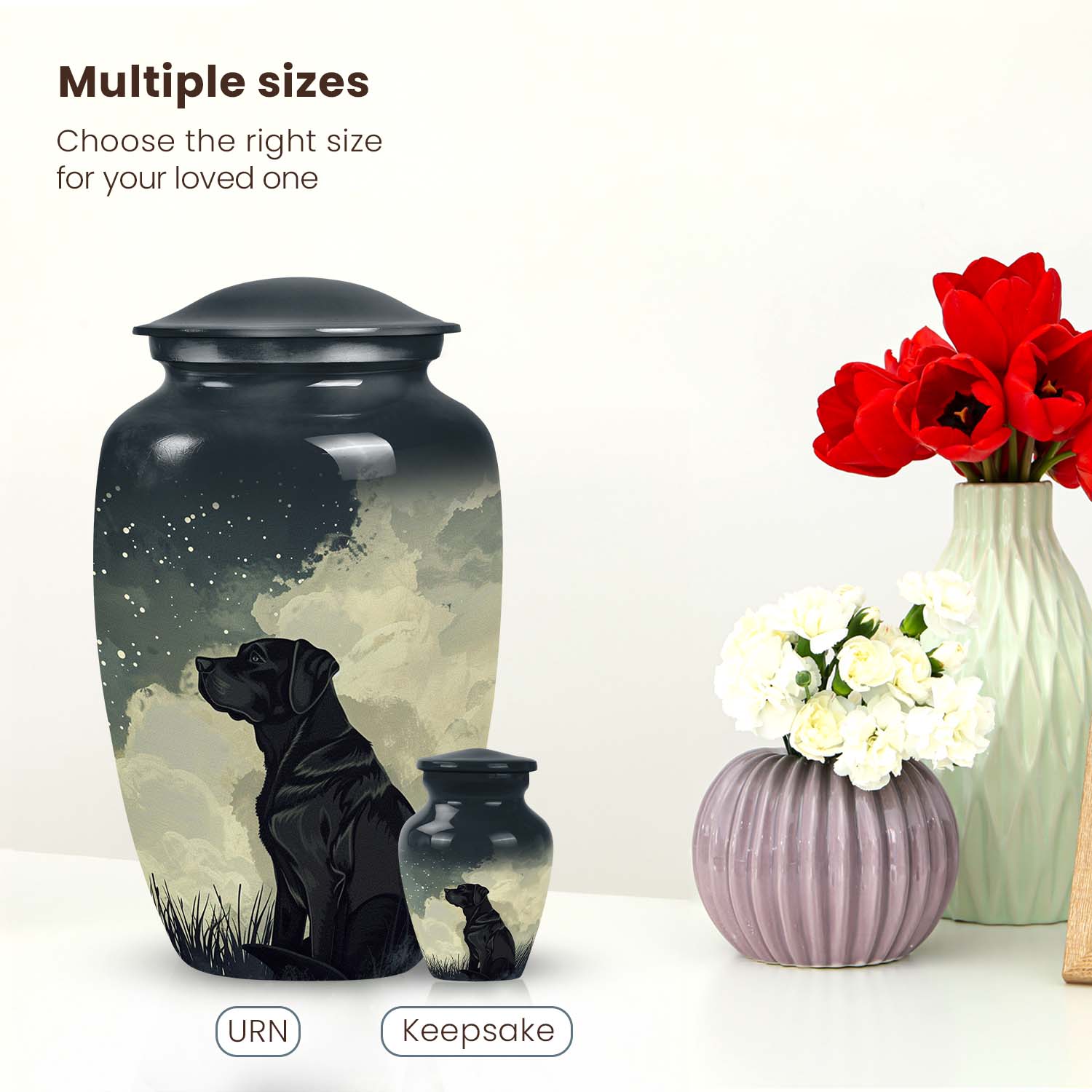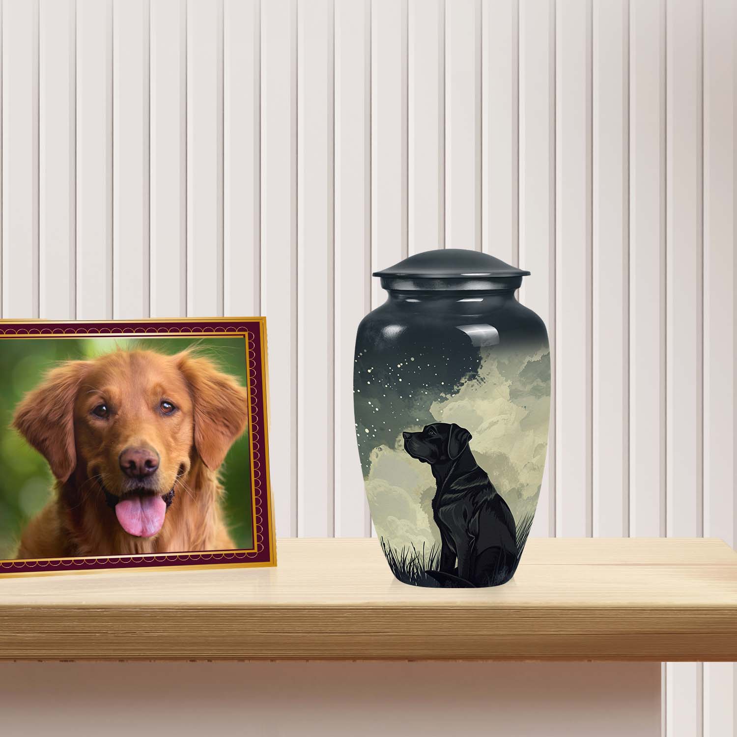 Perfect for families searching for pet urns near me, this handcrafted piece brings artistry and comfort together. Whether chosen for a Labrador or any beloved breed, it stands among the most unique pet urns — a refined resting place that reflects devotion, loyalty, and love everlasting.