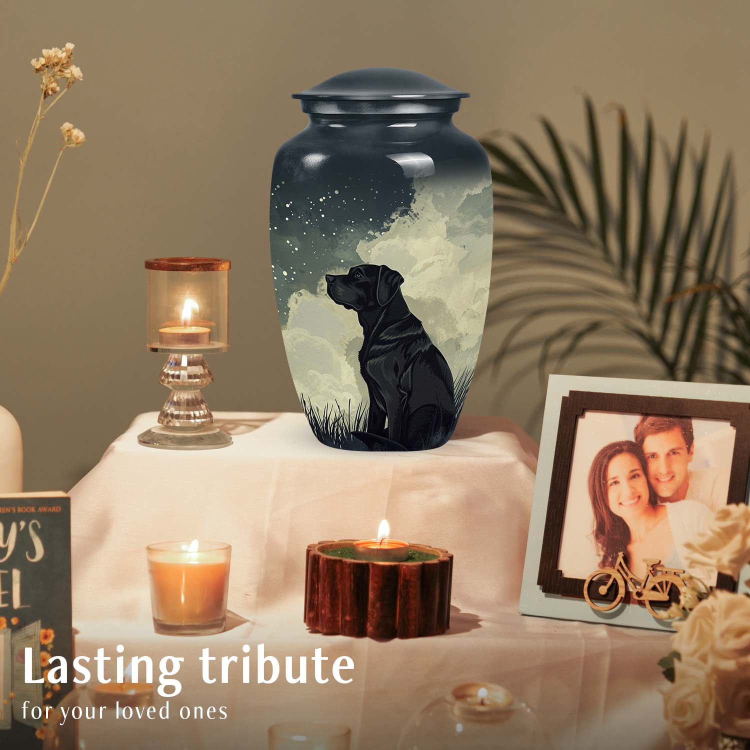 A symbol of peace beneath the stars, this urn offers not just remembrance, but a connection that time can never break — a forever home for the heart that loved you unconditionally.