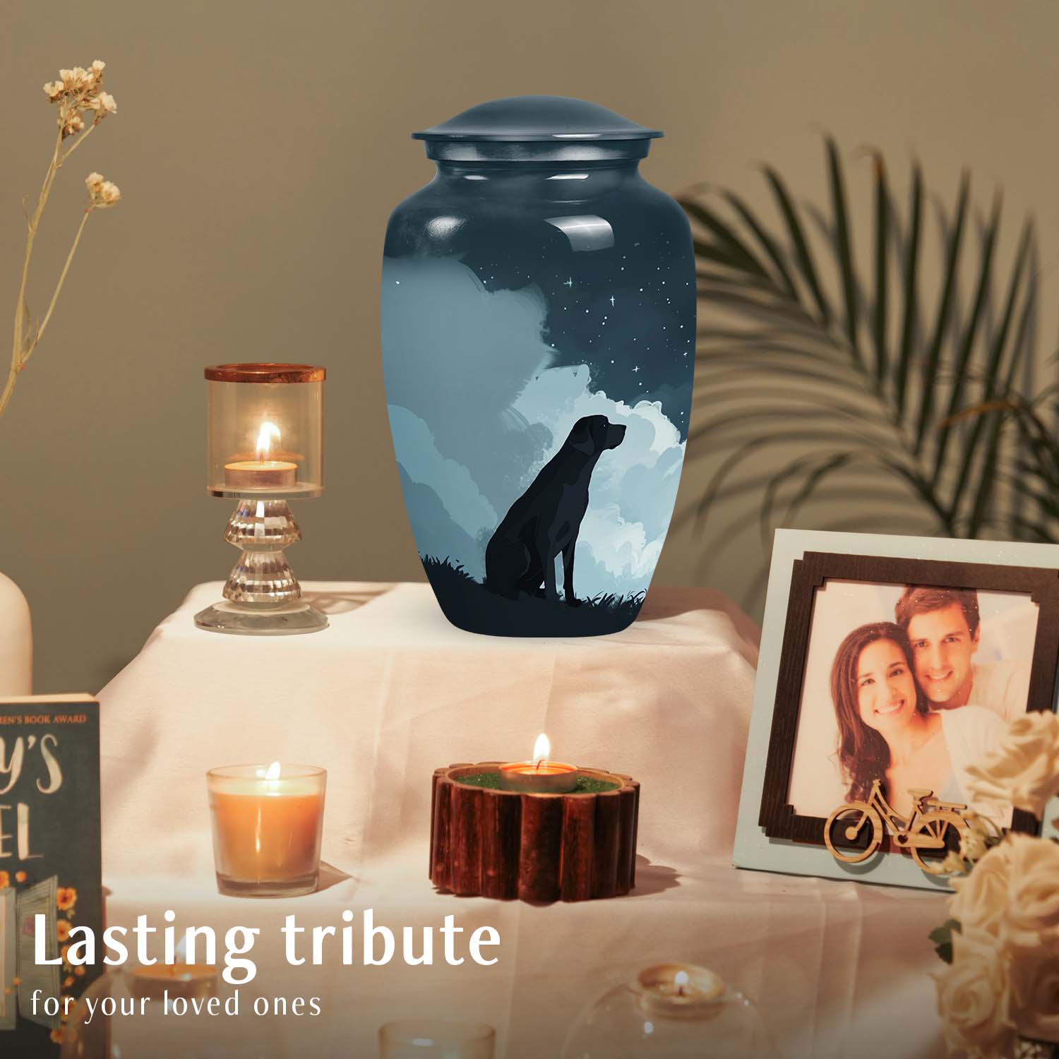 Every pet leaves behind a universe of love — and the Black Dog Pet Cremation Urn – Blue Cloud and Starry Night Memorial Urn captures that love in a timeless tribute. Designed to transform pet ashes into keepsakes, this urn embodies serenity, strength, and devotion, reflecting the everlasting bond shared between you and your beloved dog.
