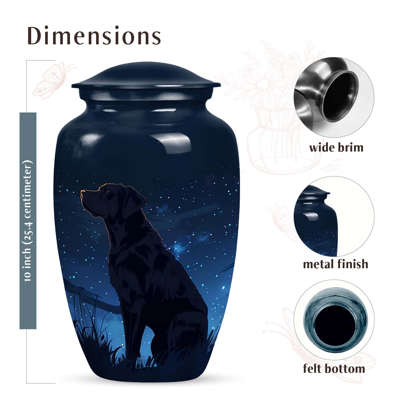A Labrador’s loyalty shines like the stars — unwavering and eternal. The Black Labrador Cremation Urn for Ashes – Dark Blue Starry Night Memorial captures that devotion with a design inspired by the night sky. Crafted to bring peace and beauty to remembrance, this elegant custom pet urn offers a dignified way to keep your beloved companion close forever.
