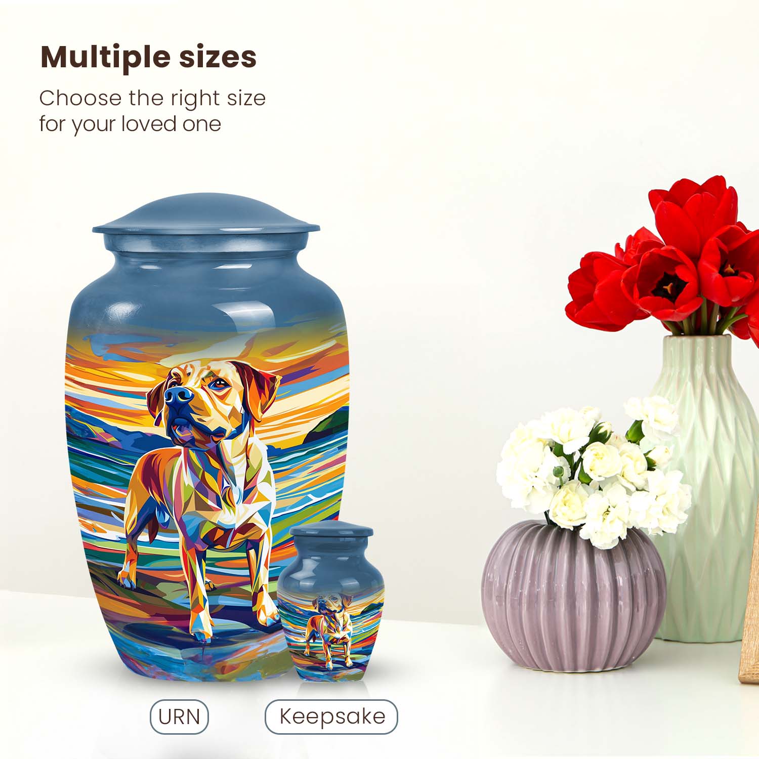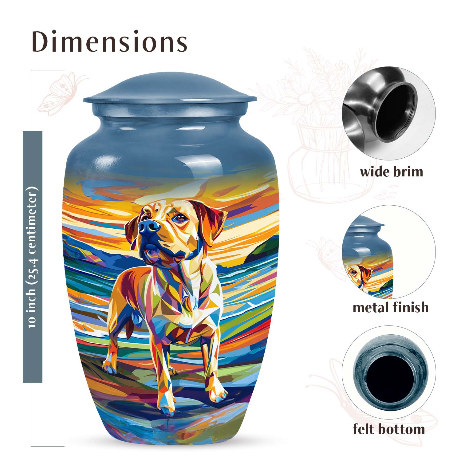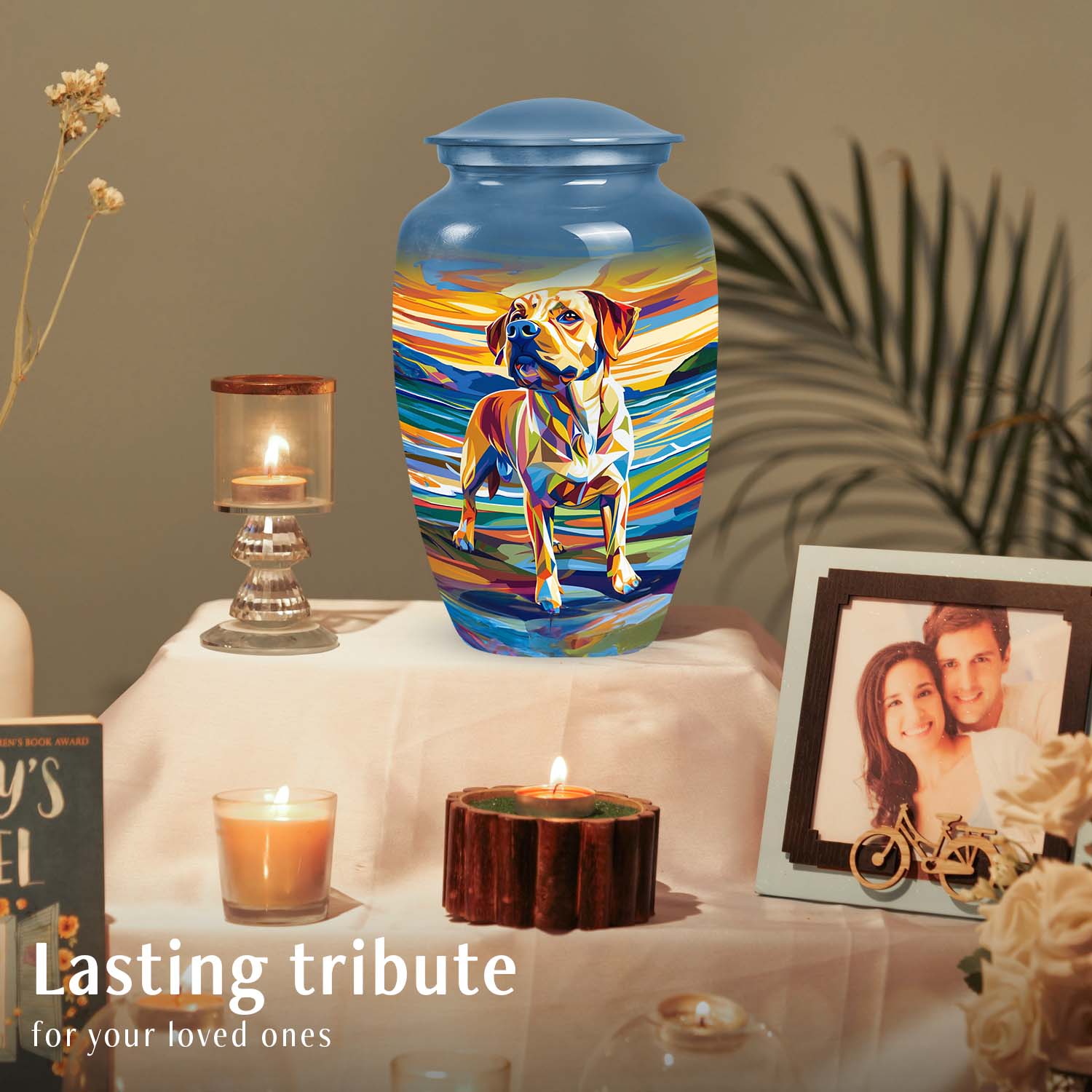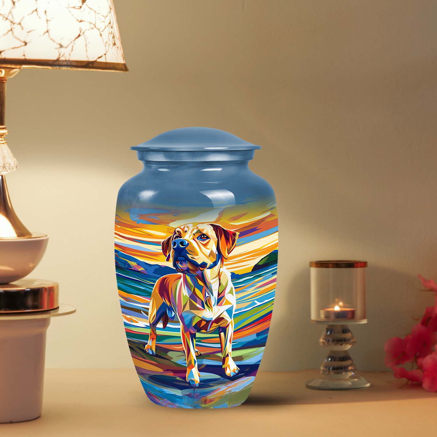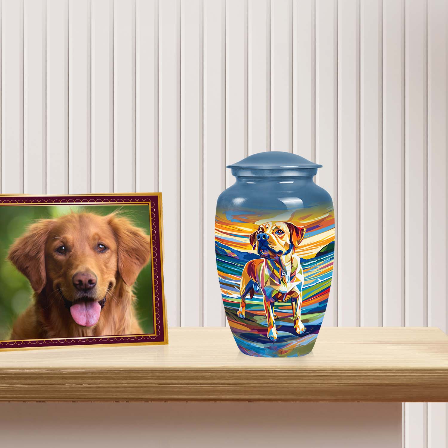 Every dog leaves behind a masterpiece of love, loyalty, and joy—and this Colorful Dog Art Cremation Urn – Blue Memorial Urn for Pet Ashes honors that spirit through artful design and heartfelt craftsmanship. Hand-finished in a vivid blue palette, it stands among the most Unique Pet Urns, offering a beautiful way to cherish memories while bringing color and comfort to remembrance.