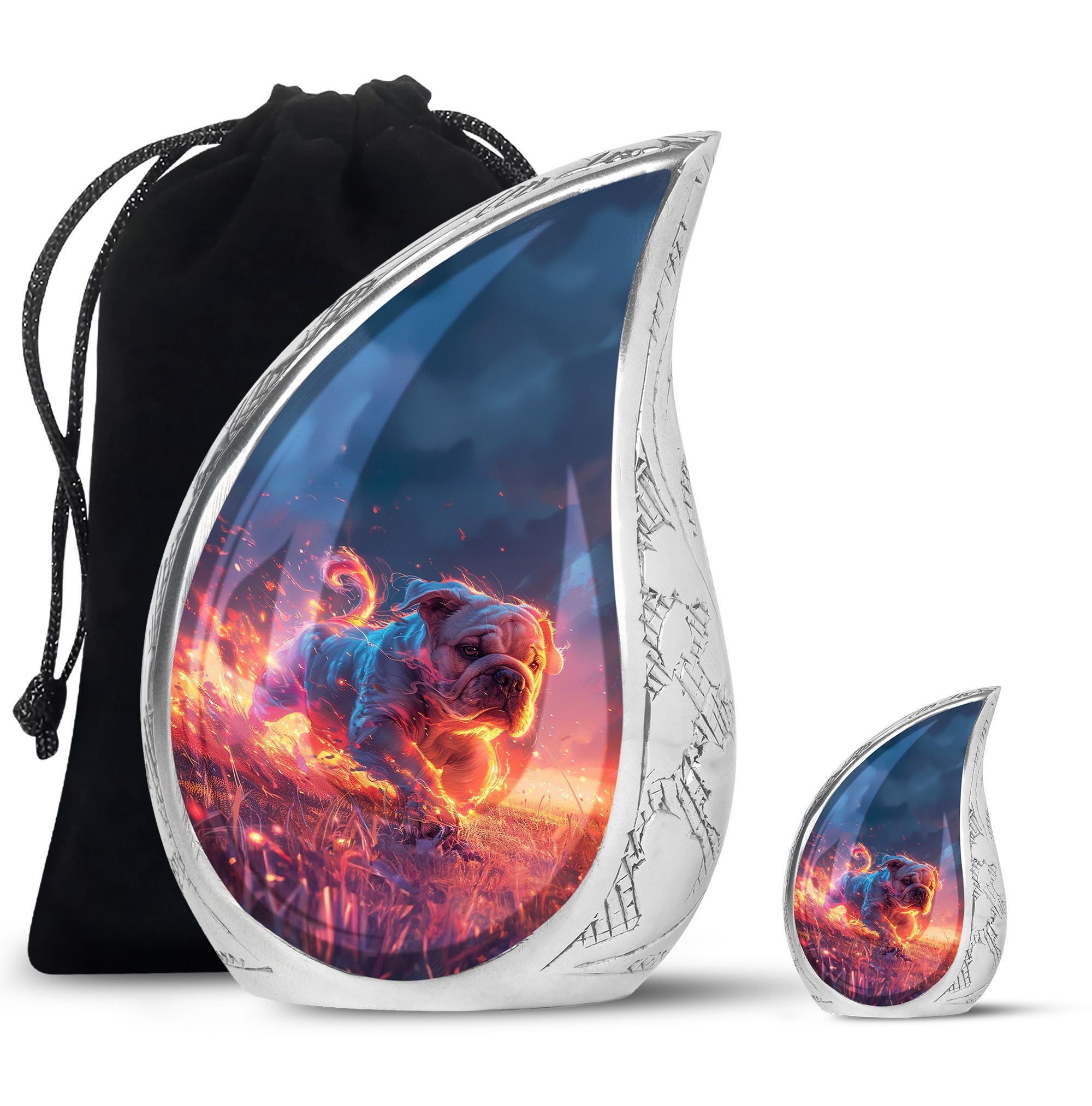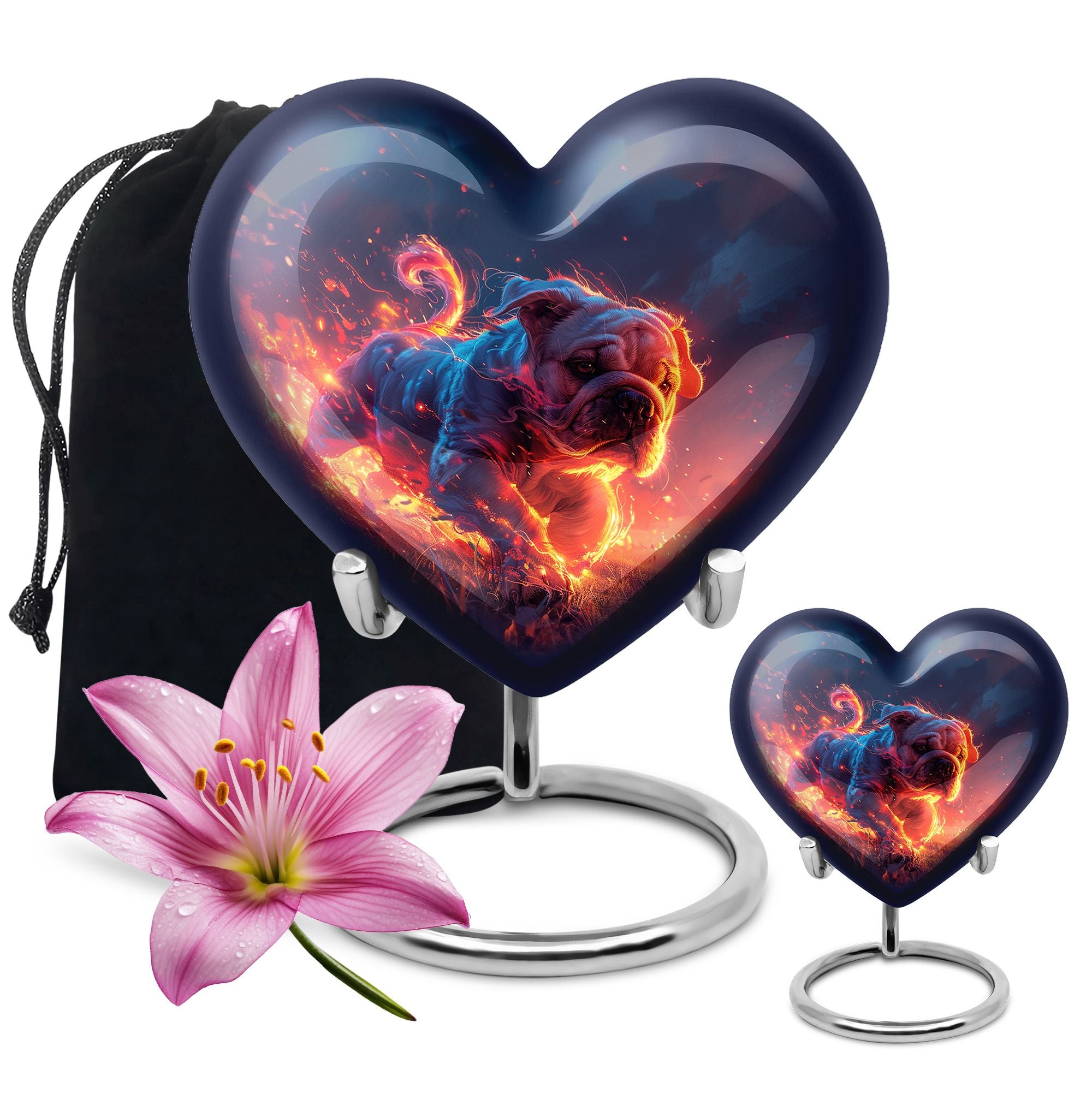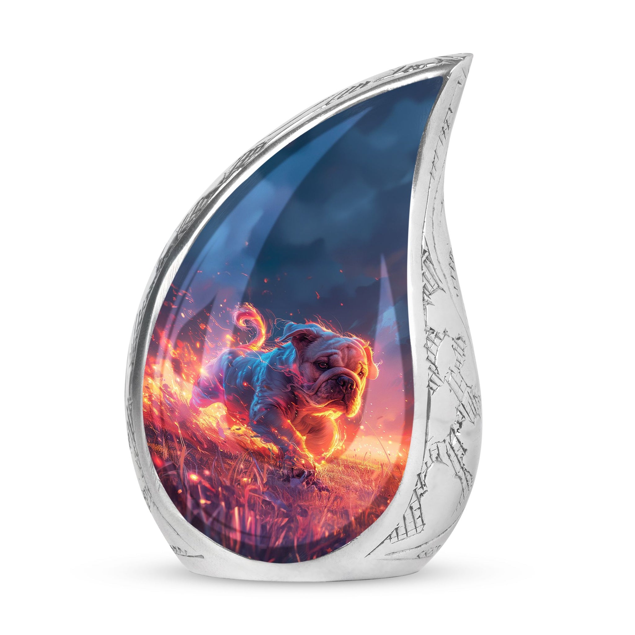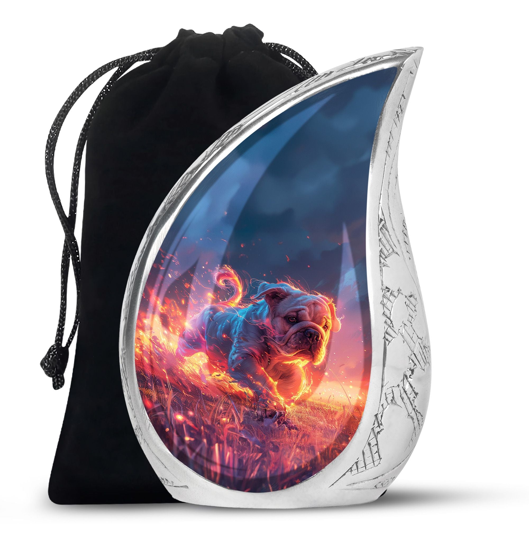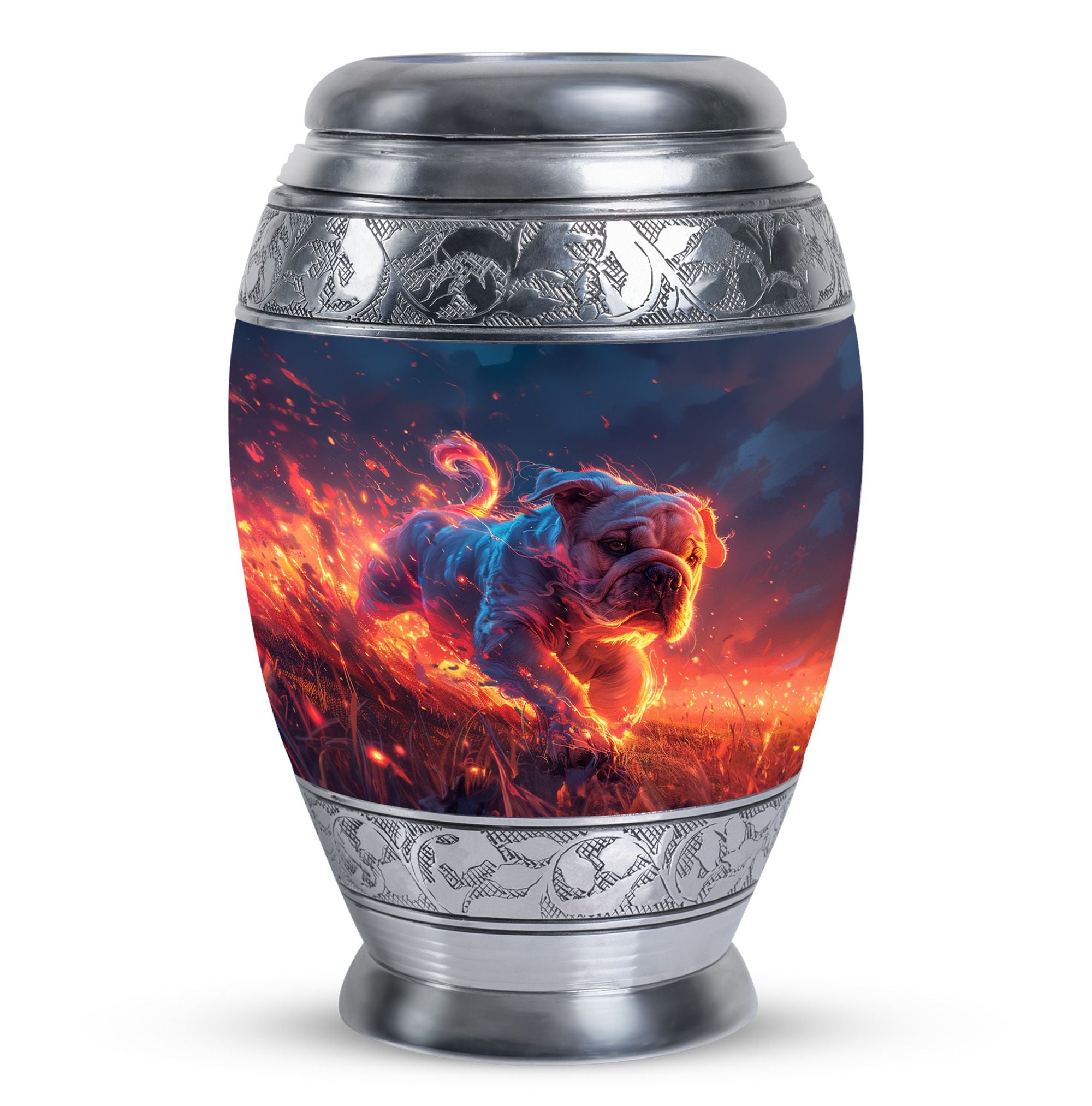 With its bold, fiery design, this urn celebrates the loyalty, love, and cherished memories of your bulldog, making it a fitting tribute for pet cremation urns for dogs, bulldog urns, and unique pet urns for dogs alike.