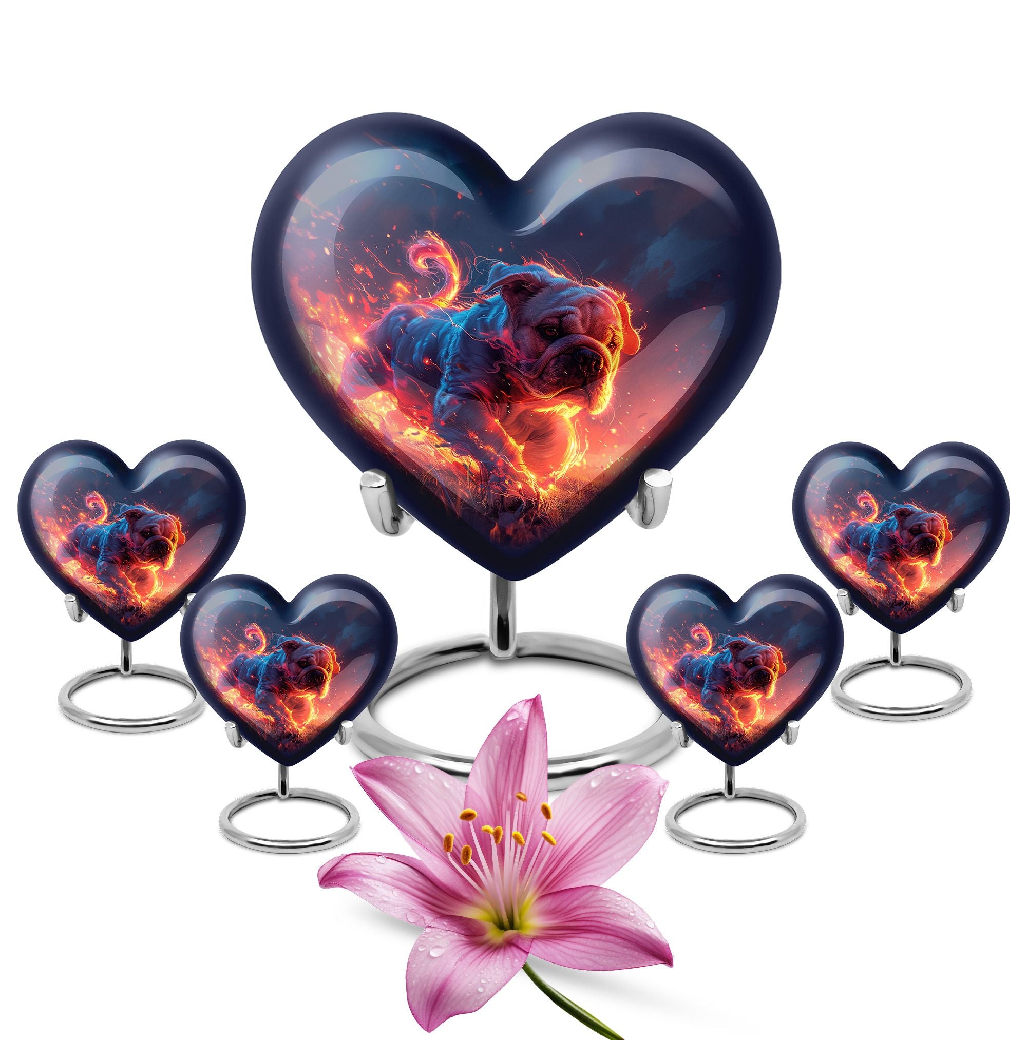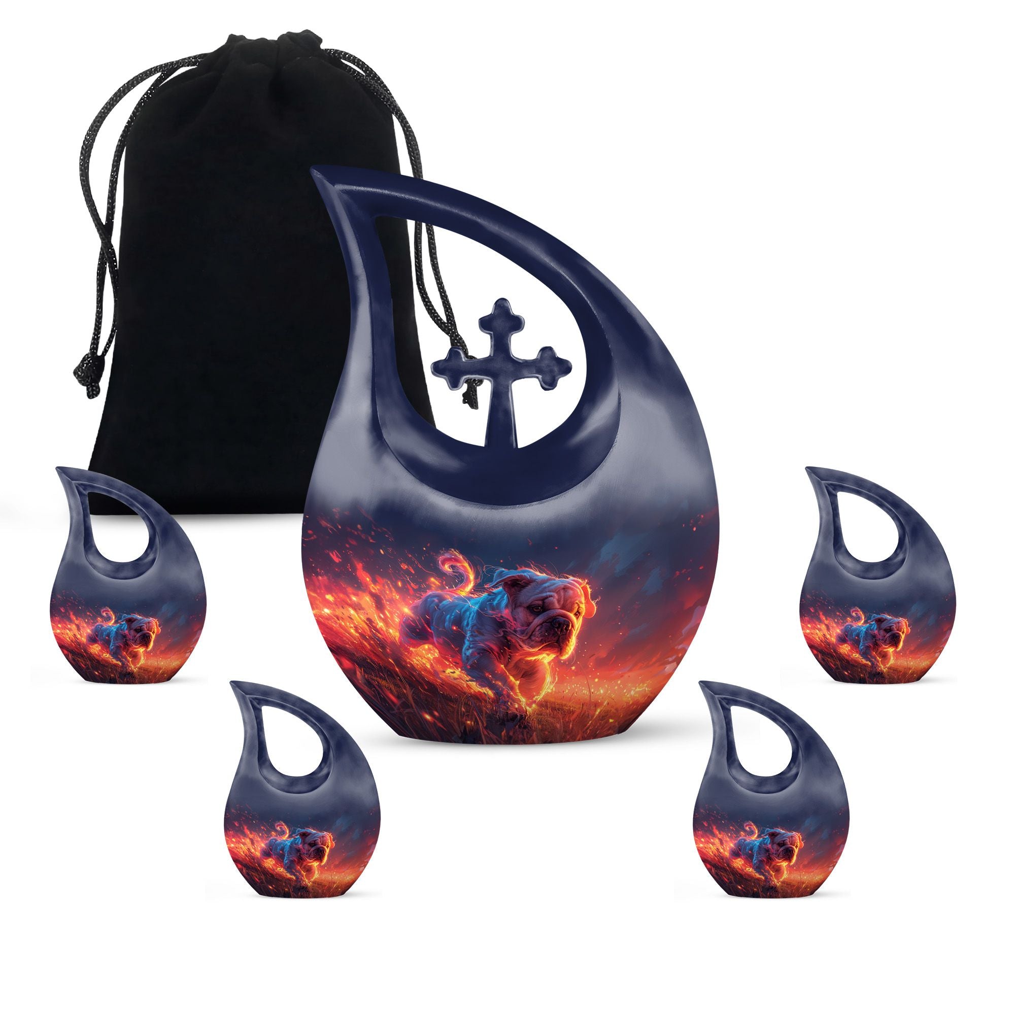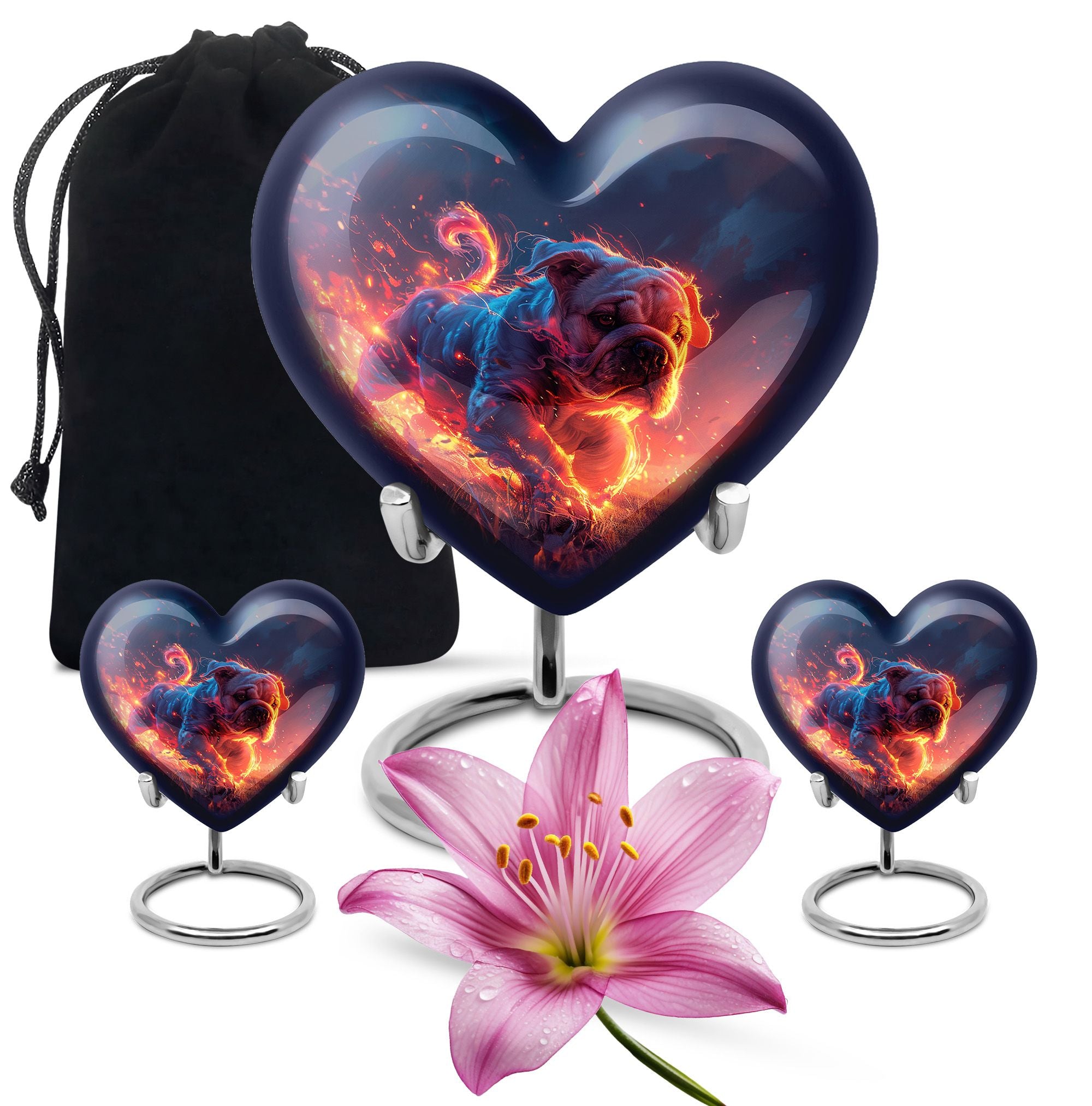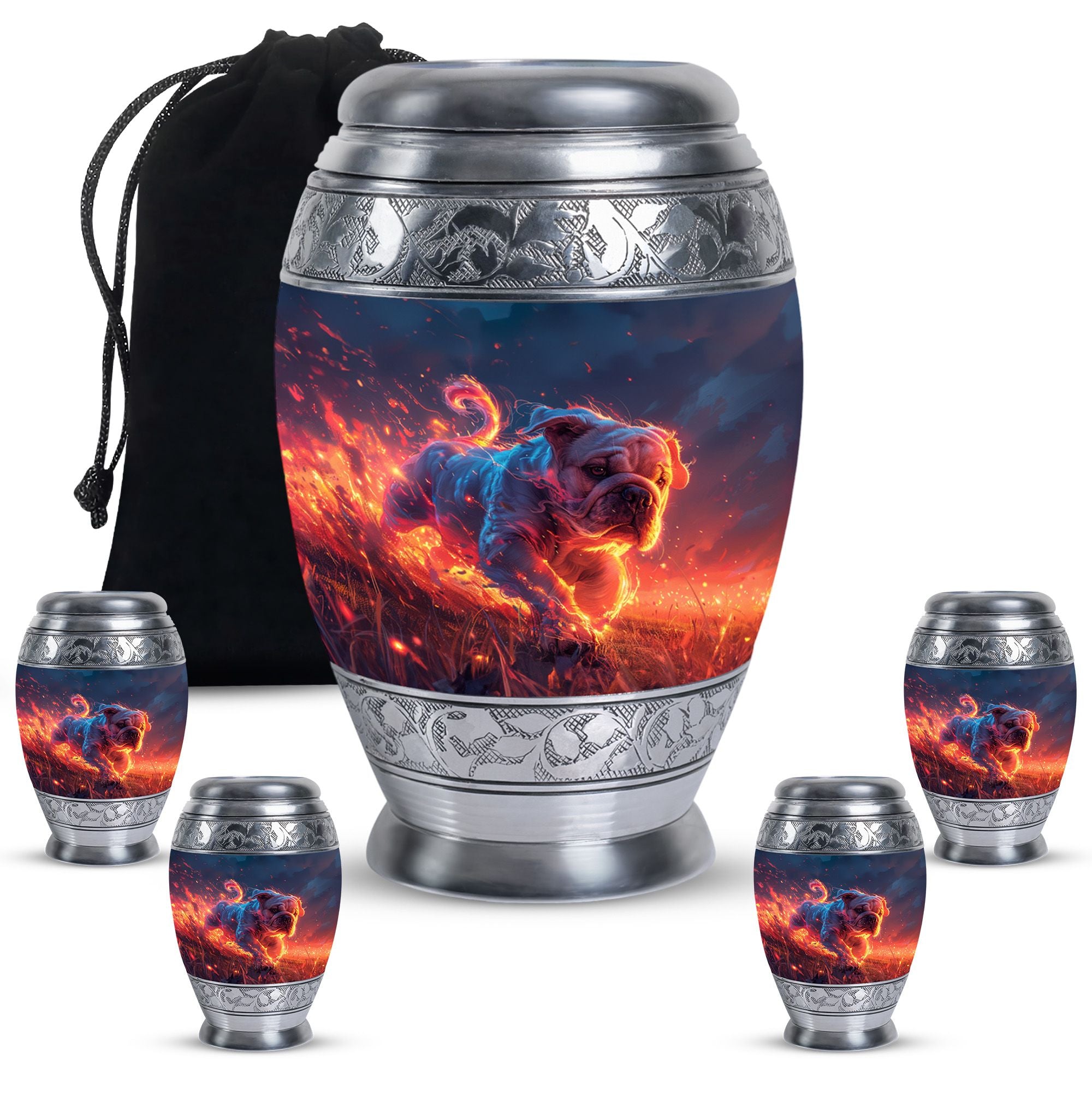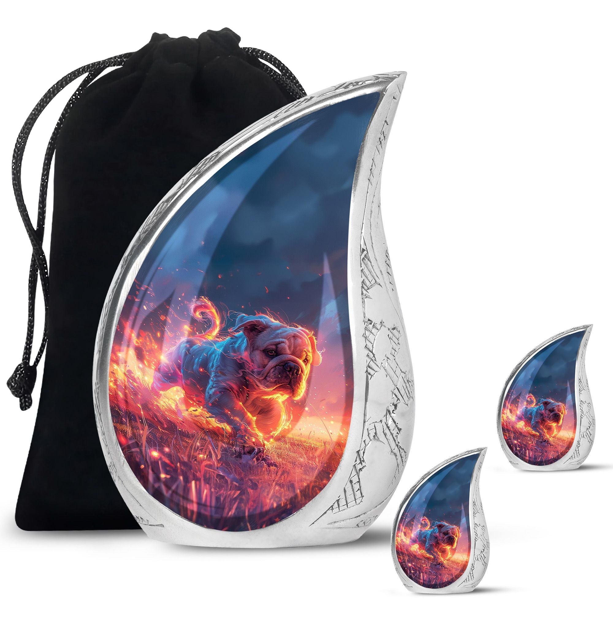 With its bold, fiery design, this urn celebrates the loyalty, love, and cherished memories of your bulldog, making it a fitting tribute for pet cremation urns for dogs, bulldog urns, and unique pet urns for dogs alike.