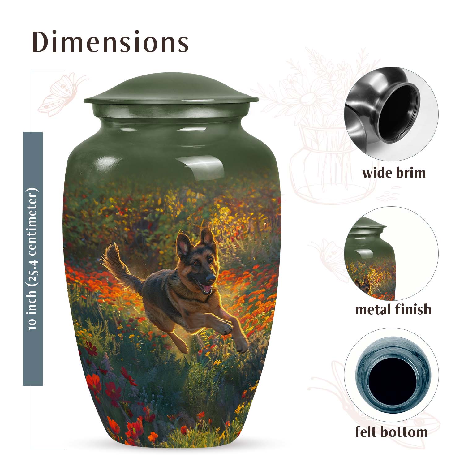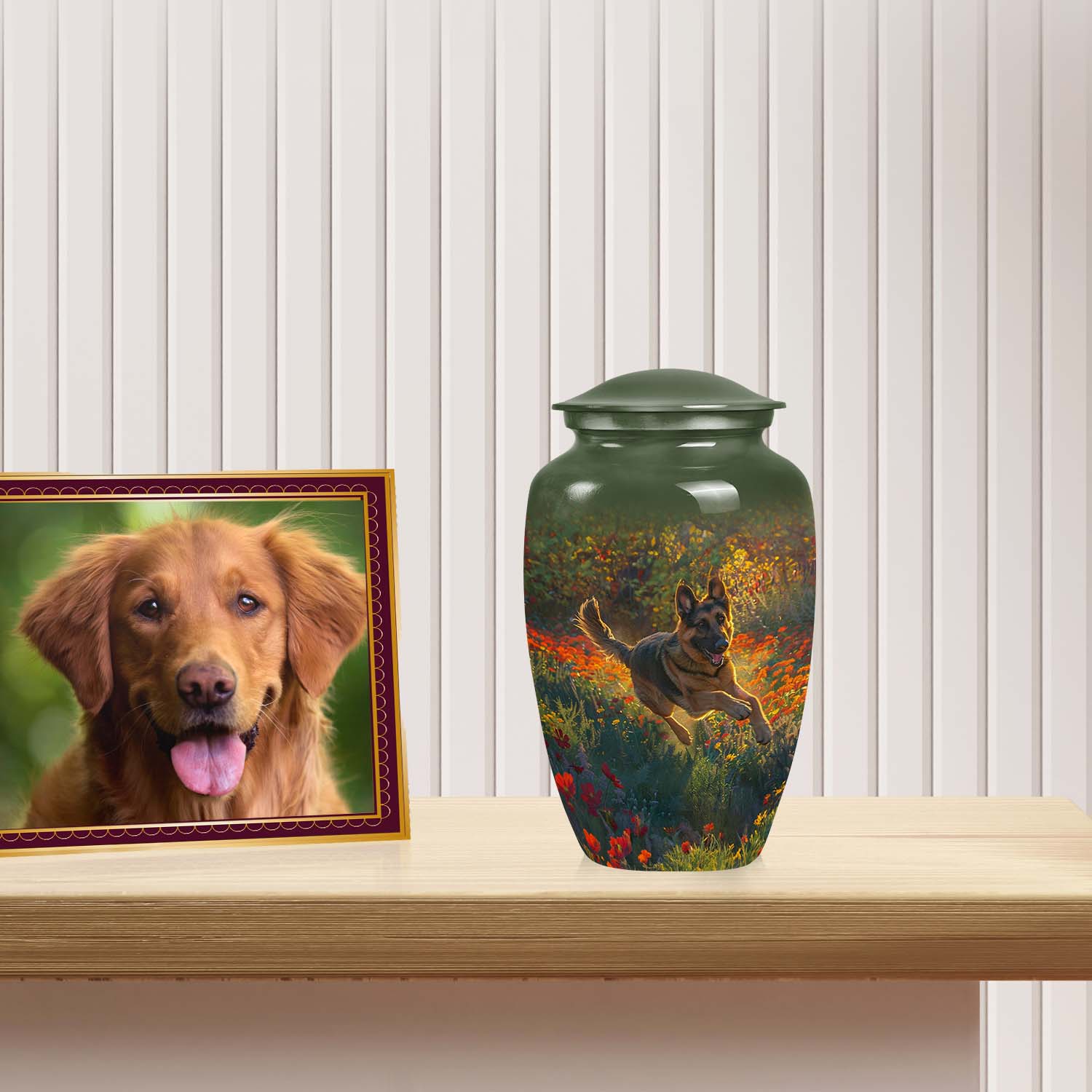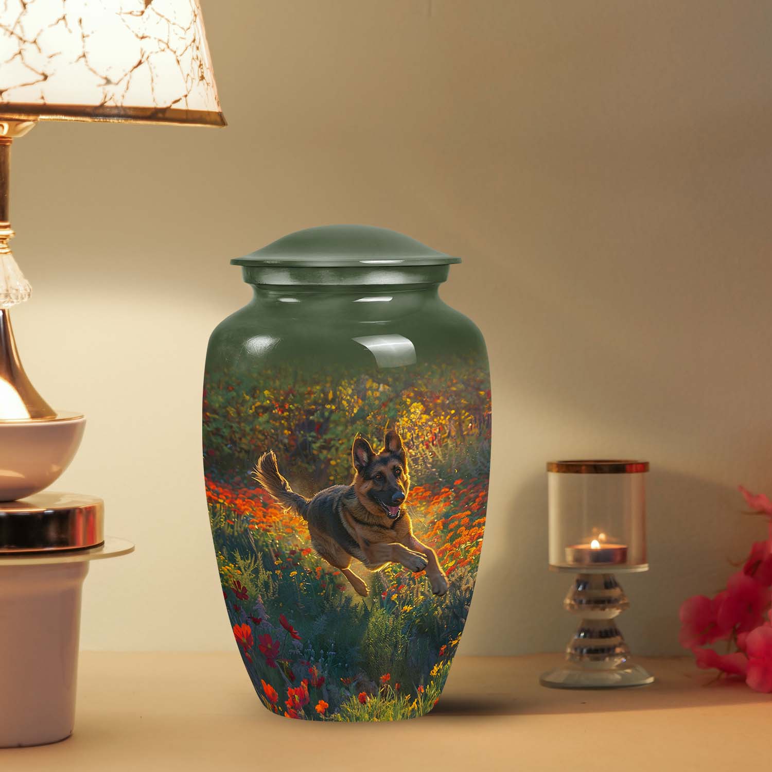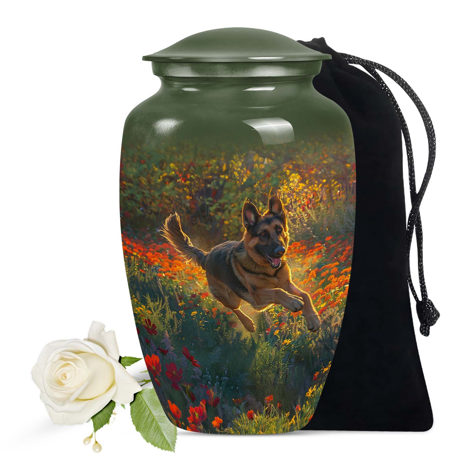 Flower Fields Joy German Shepherd Small Urn - Dog Memorial Urn