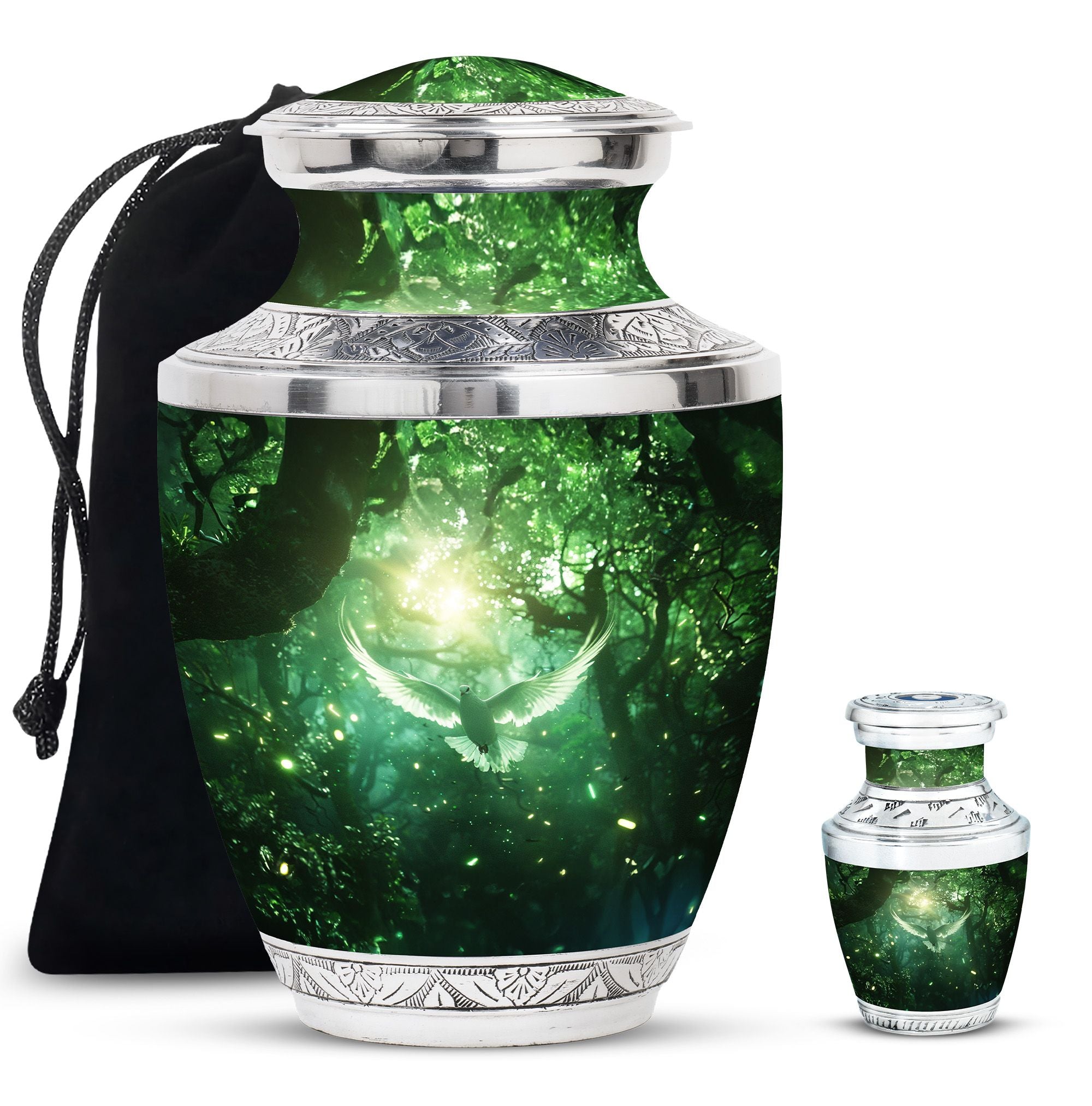 With its serene green forest design and symbolic dove motif, the Dove Large Urn offers a lasting tribute for cremation urn small, urns for cremation ashes, or any adult cremation remembrance, keeping loved ones close in spirit.