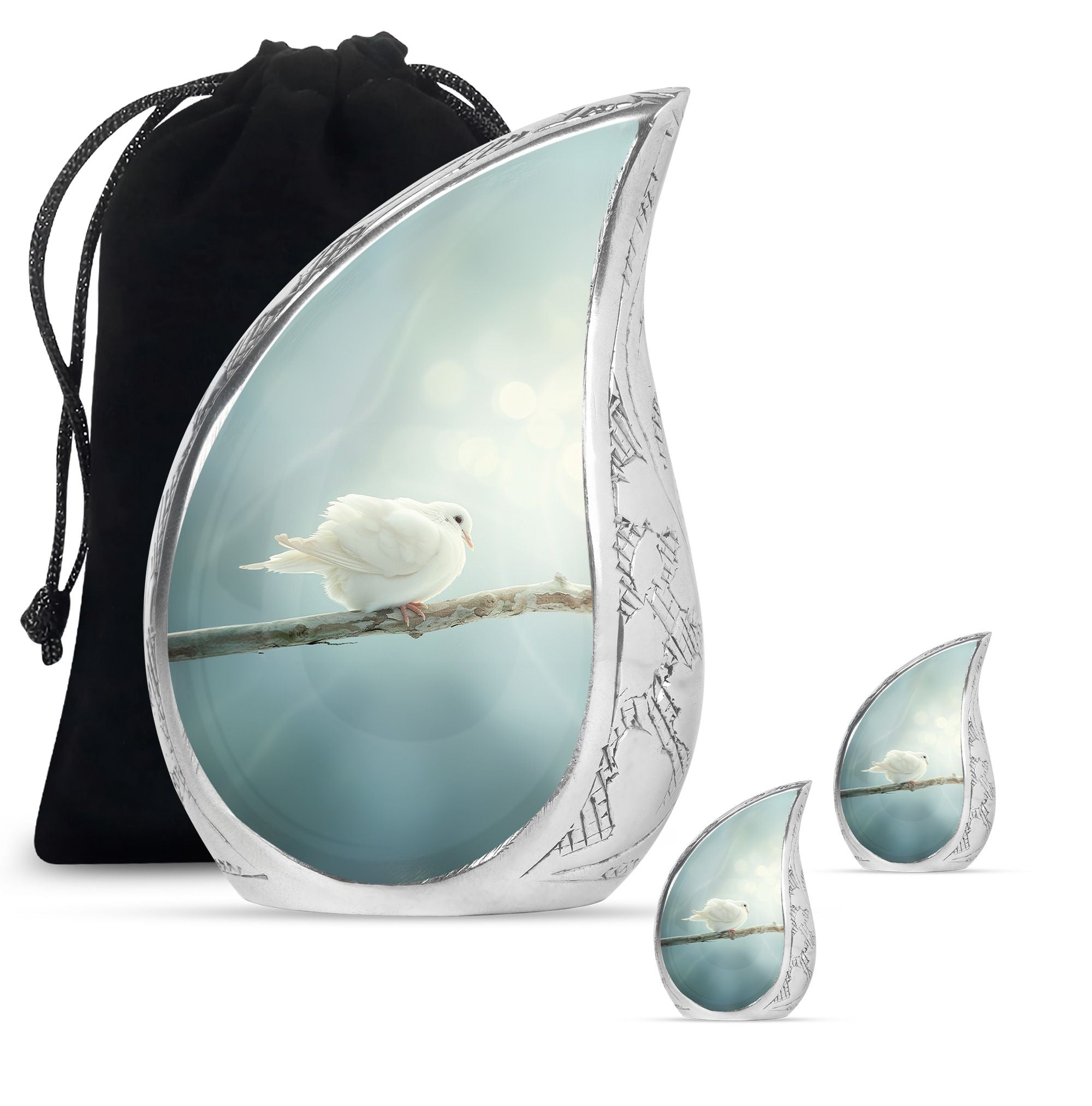 The **Dove Personalized Urn** **represents tranquility, purity, and eternal love, offering a meaningful and personalized tribute**.