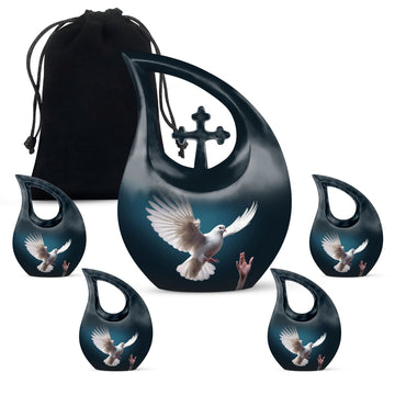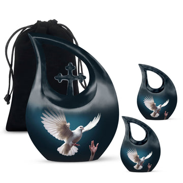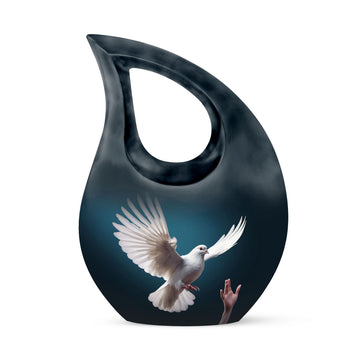 Celebrate the eternal spirit of your loved one with our Black Urn for Loved Ones, a serene and meaningful tribute that represents love, purity, and everlasting peace. Featuring a graceful white dove — a universal symbol of hope and eternal rest — this urn is perfect for families seeking large adult urns for human ashes that bring both elegance and comfort.