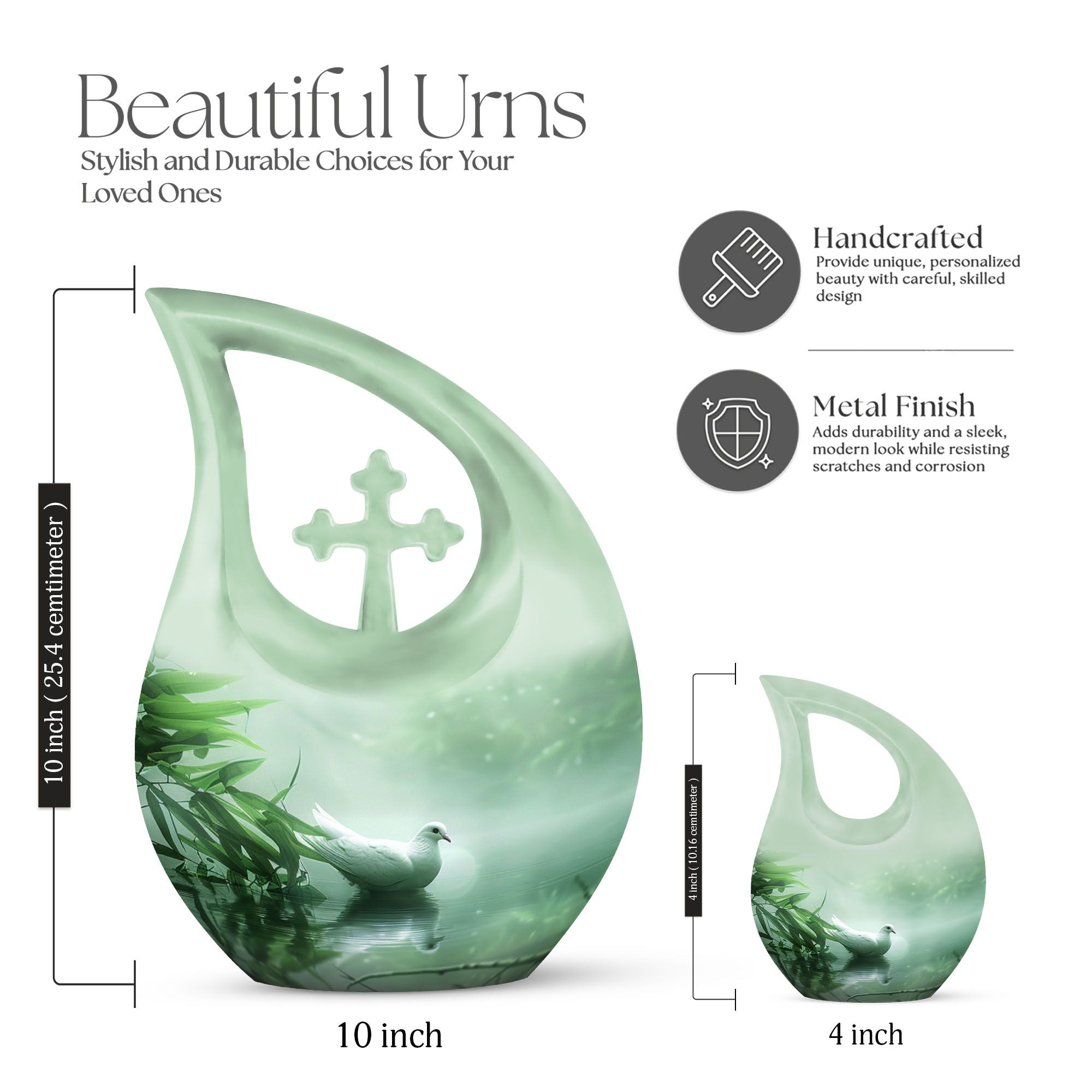 Meticulously handcrafted from premium aluminum, this aesthetic urn for home decor features a smooth matte finish adorned with an elegant dove motif — a timeless symbol of purity and hope. Its refined craftsmanship makes it a beautiful urn women love to display, while also serving as a dignified men urn for human ashes or small urn for ashes adult male in the matching keepsake sizes.