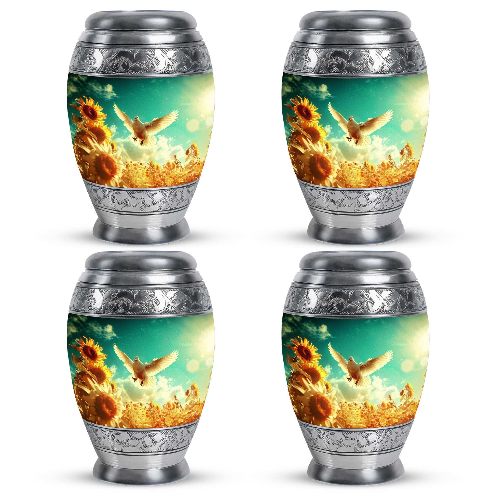 Expertly crafted with attention to detail, this urn combines elegance and durability. Made from high-quality aluminium, it is both lightweight and resilient, suitable for long-term remembrance. Its graceful design and serene dove motif make it a meaningful choice among large urns for human ashes, including large adult urns for human ashes and adult urns for human ashes large, reflecting love and care.