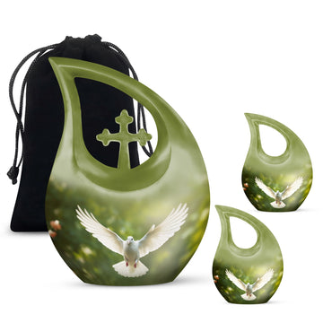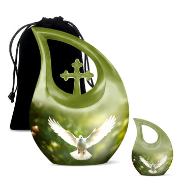 Celebrate a life of love and kindness with this Dove Cremation Urn for Ashes, a touching symbol of peace and eternal rest. The soft sage green hue and elegant dove motif reflect renewal and hope, making it a comforting choice for honoring a beloved parent or family member. This urn serves as a meaningful tribute among large adult urns for human ashes and large human urns collections, offering both beauty and comfort to those who remember.